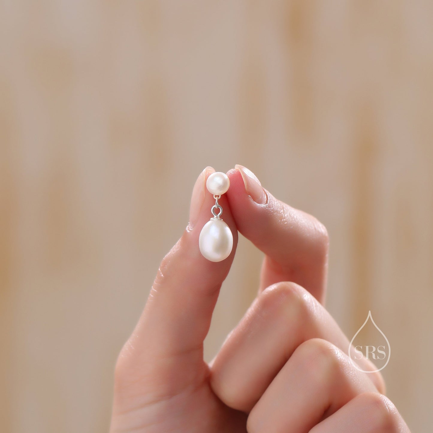 Natural Freshwater Pearl Drop Earrings in Sterling Silver, Silver or Gold, Delicate Double Pearl Earrings, Double Pearl Stud Dangle Earrings