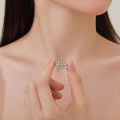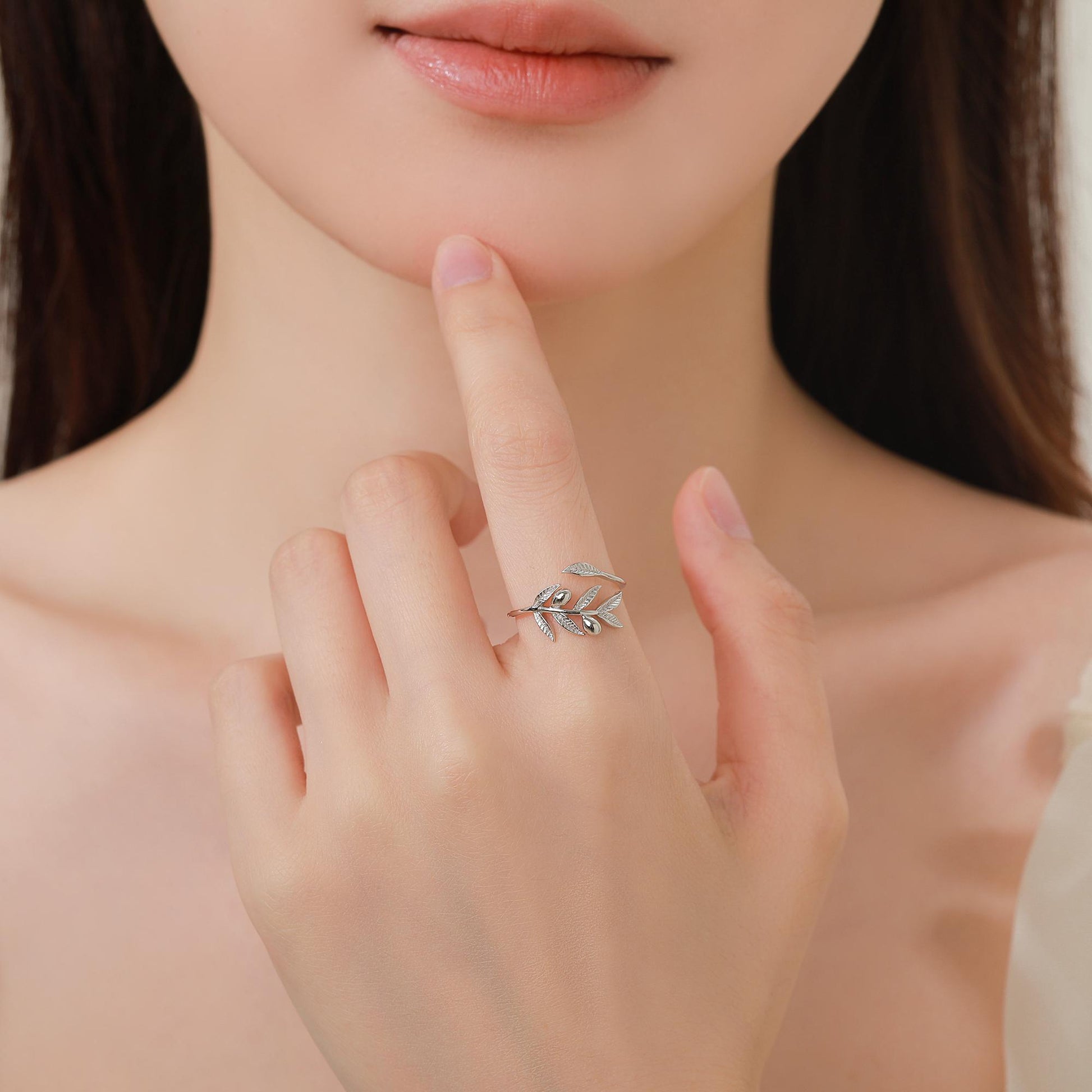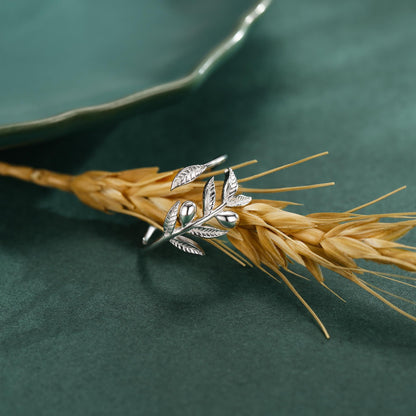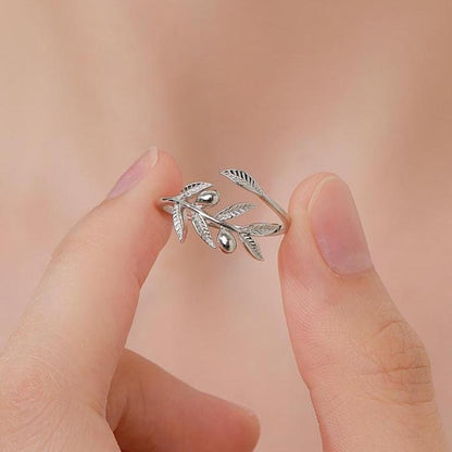 A delicate ring inspired by the peaceful elegance of the olive branch, complete with a tiny olive fruit detail.