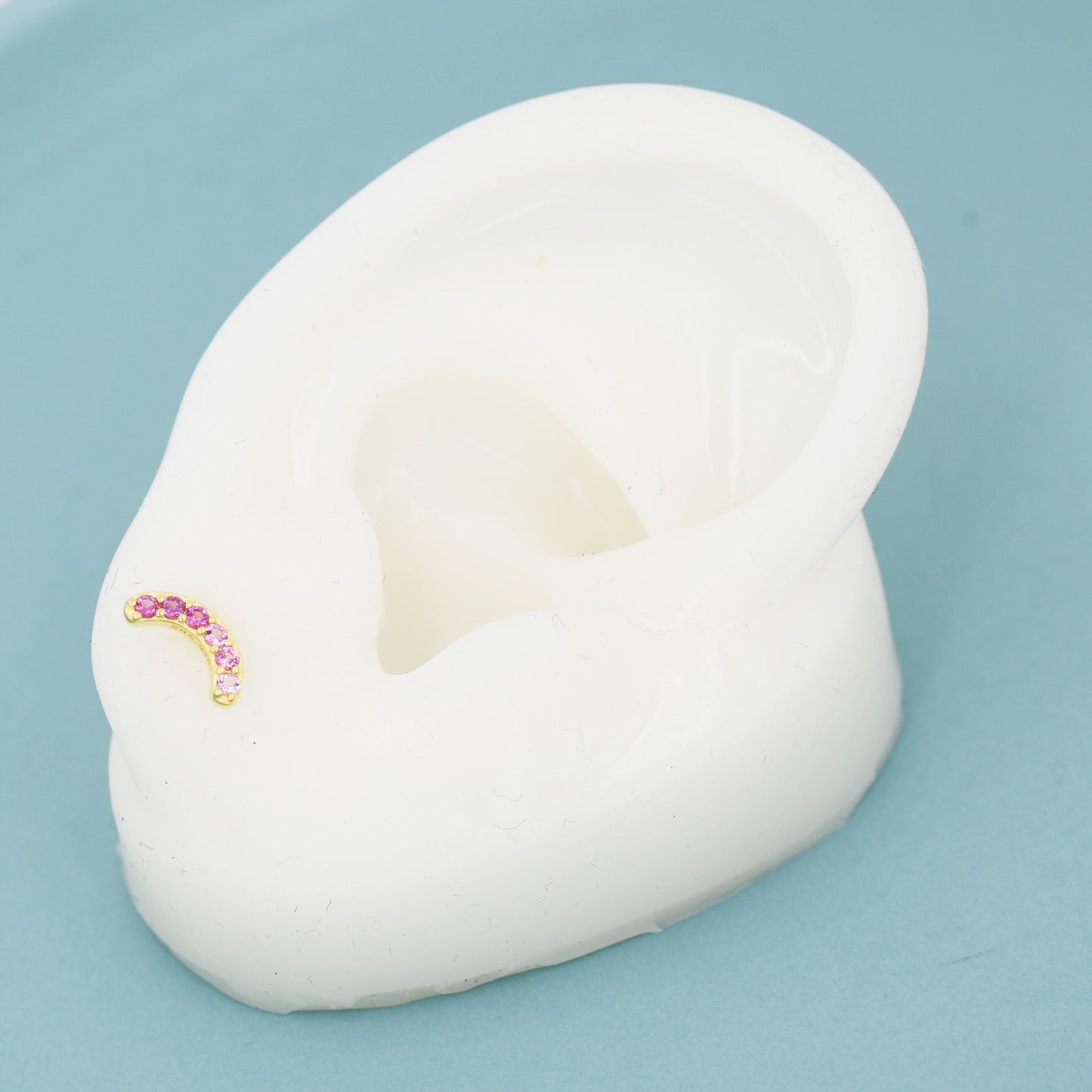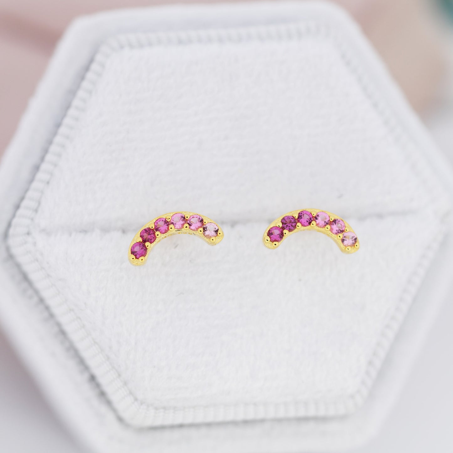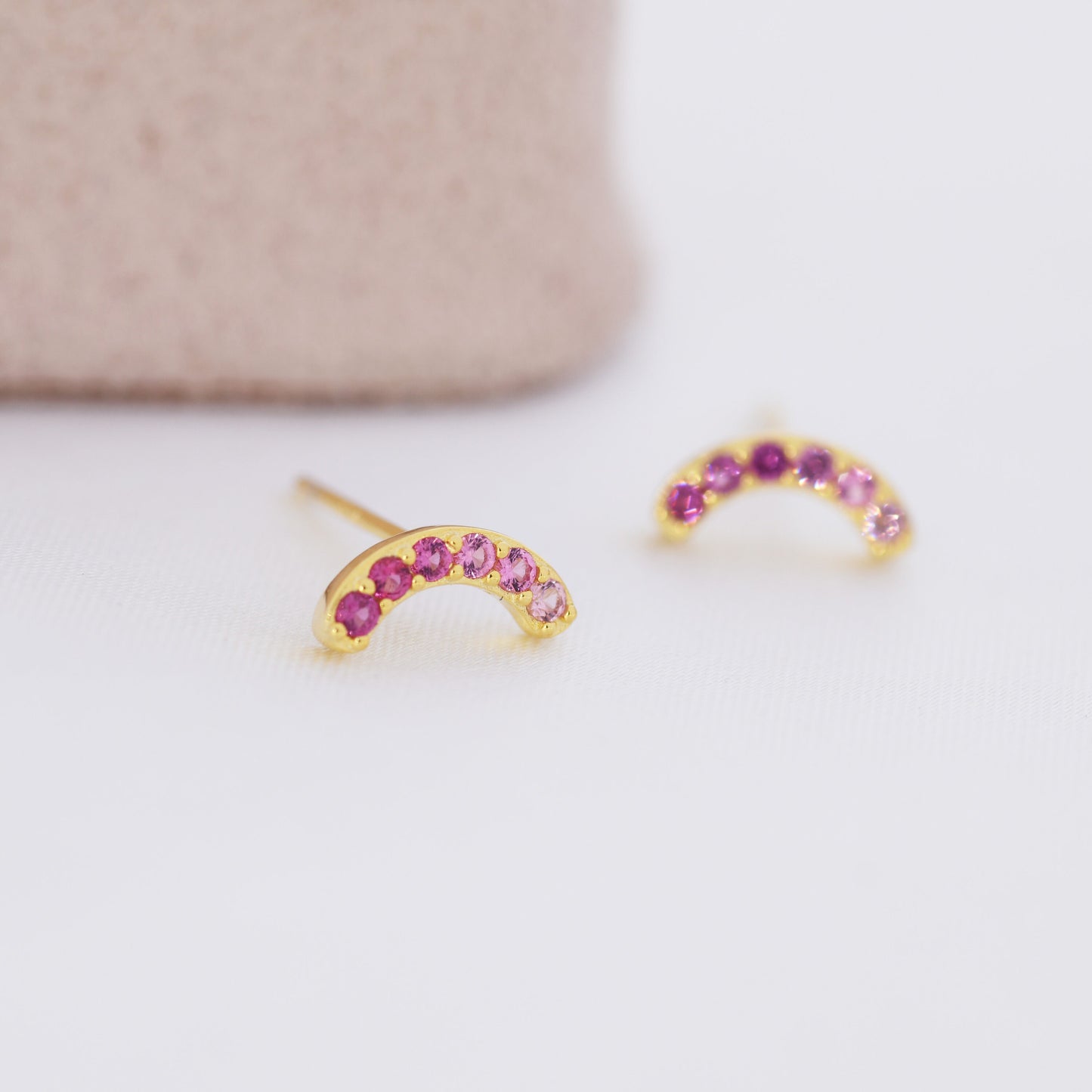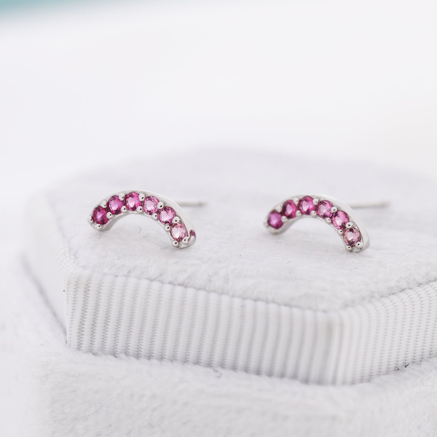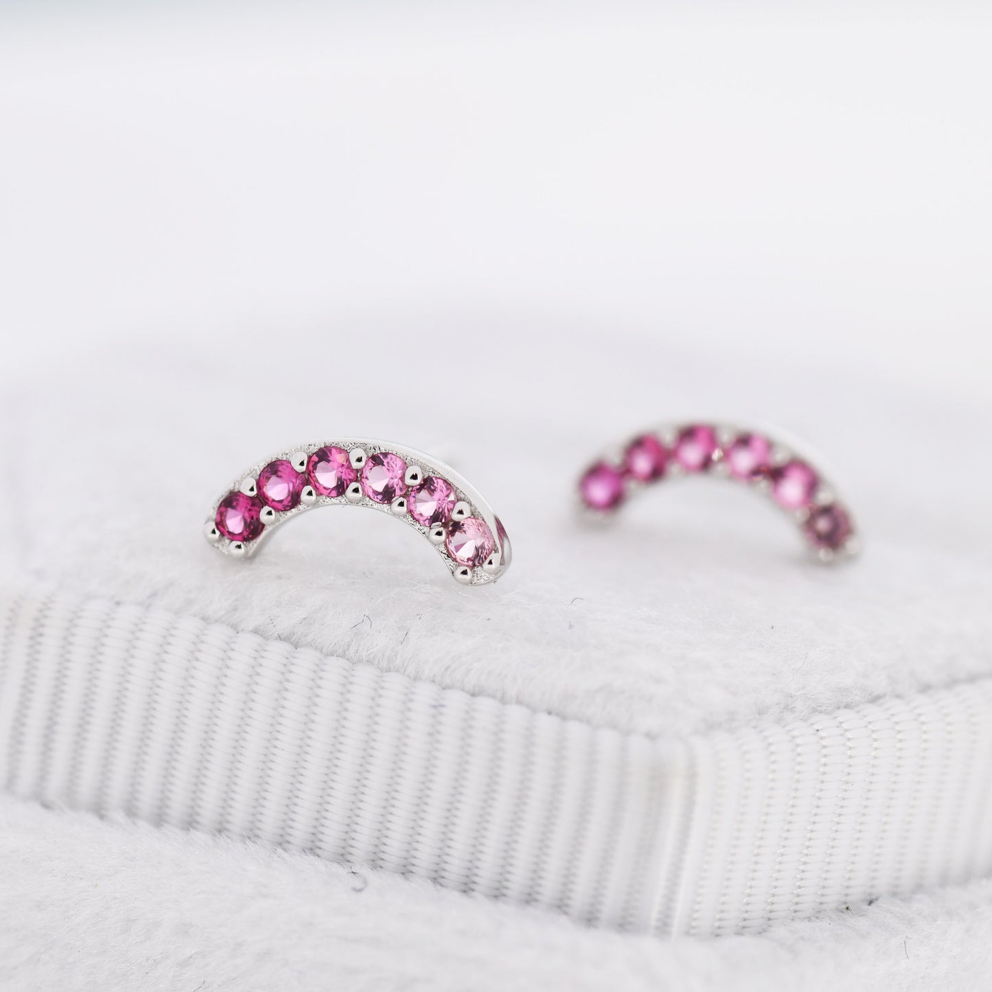 Ombre Ruby Pink CZ Arch Rainbow Stud Earrings in Sterling Silver, Gradient Colour Red Pink Rainbow Earrings, Stacking Earrings