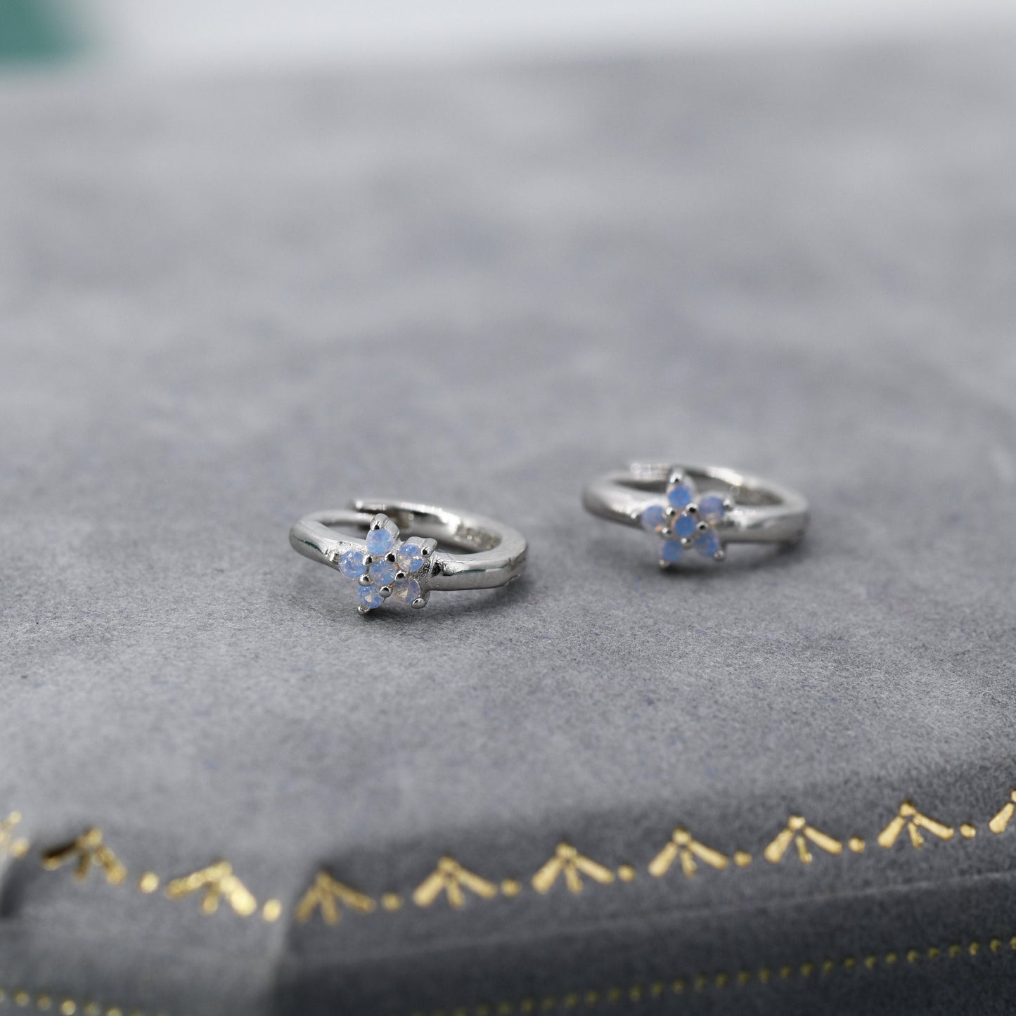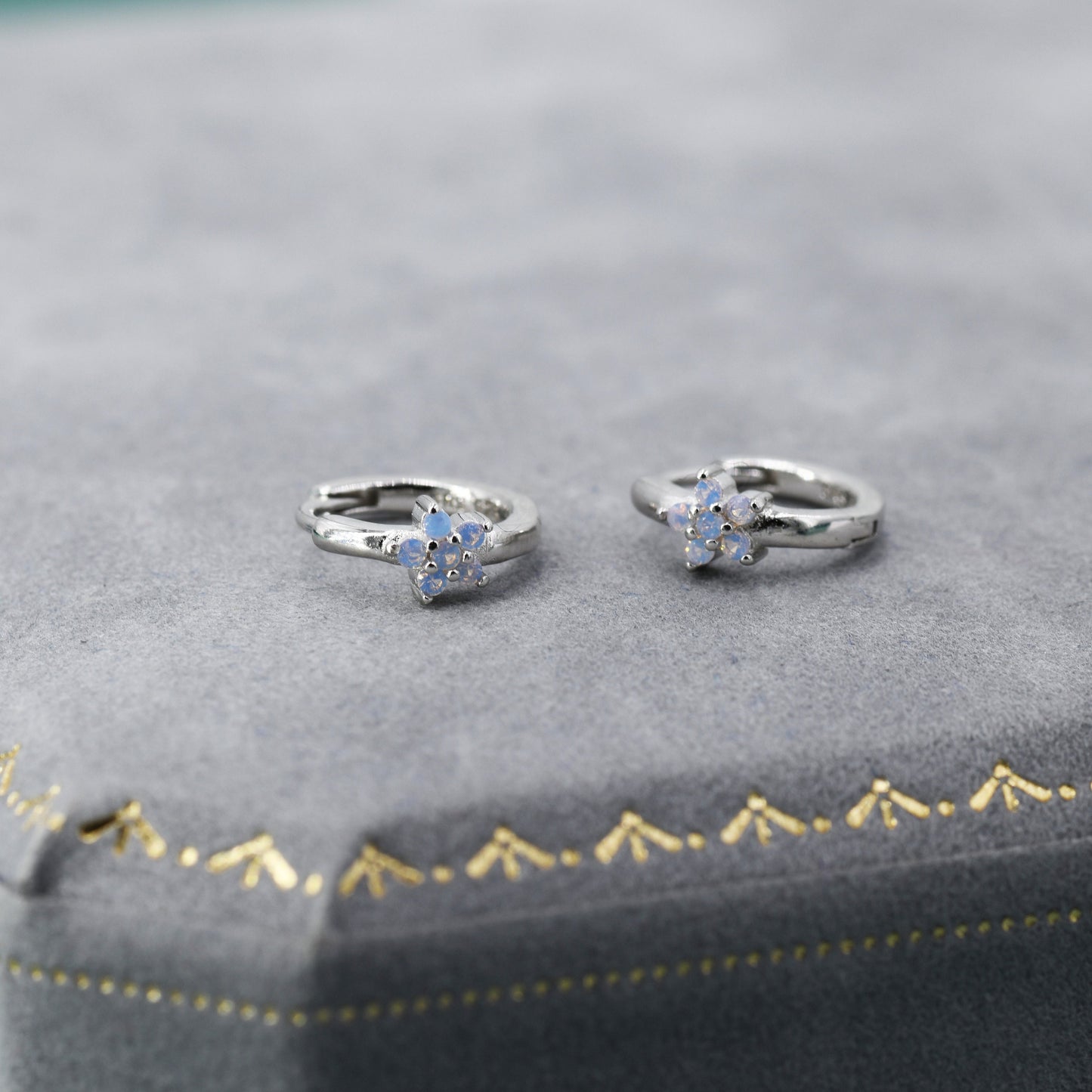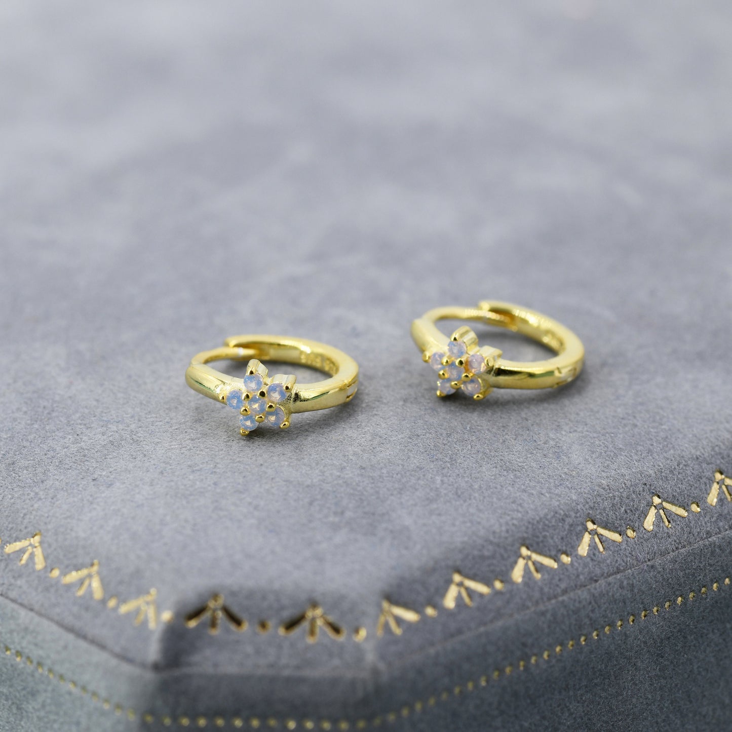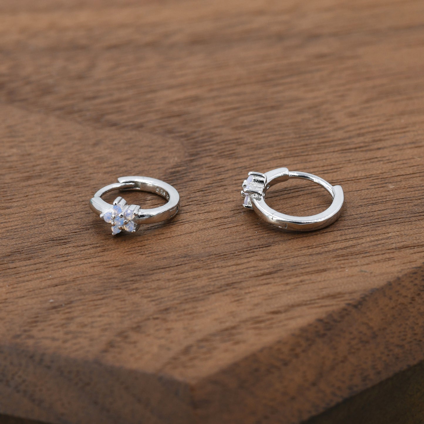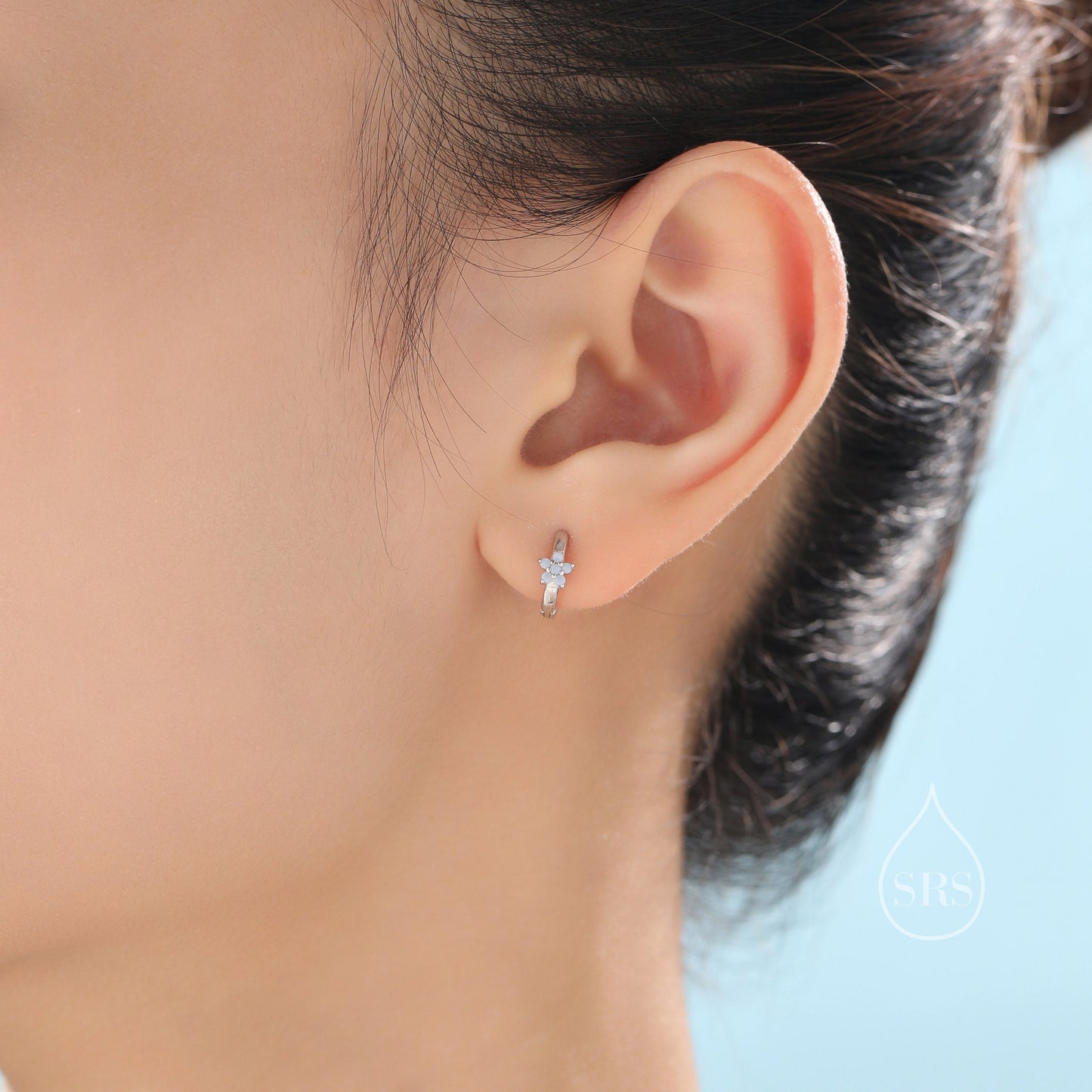 Opal Colour CZ Flower Huggie Hoop in Sterling Silver, Silver or Gold, Delicate Flower CZ Hoops, Tiny Flower Hoops, Tiny CZ Hoops