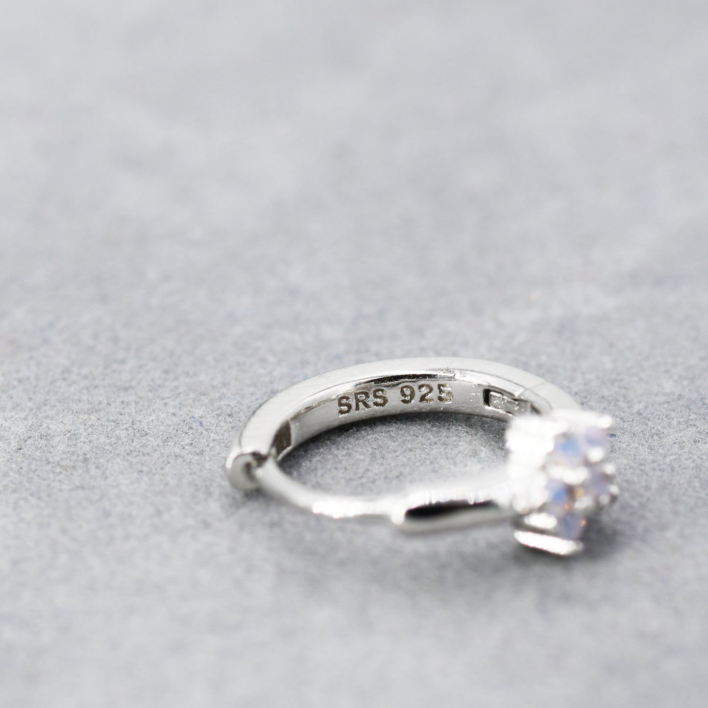 Opal Colour CZ Flower Huggie Hoop in Sterling Silver, Silver or Gold, Delicate Flower CZ Hoops, Tiny Flower Hoops, Tiny CZ Hoops. These are made with cubic zirconia stones.