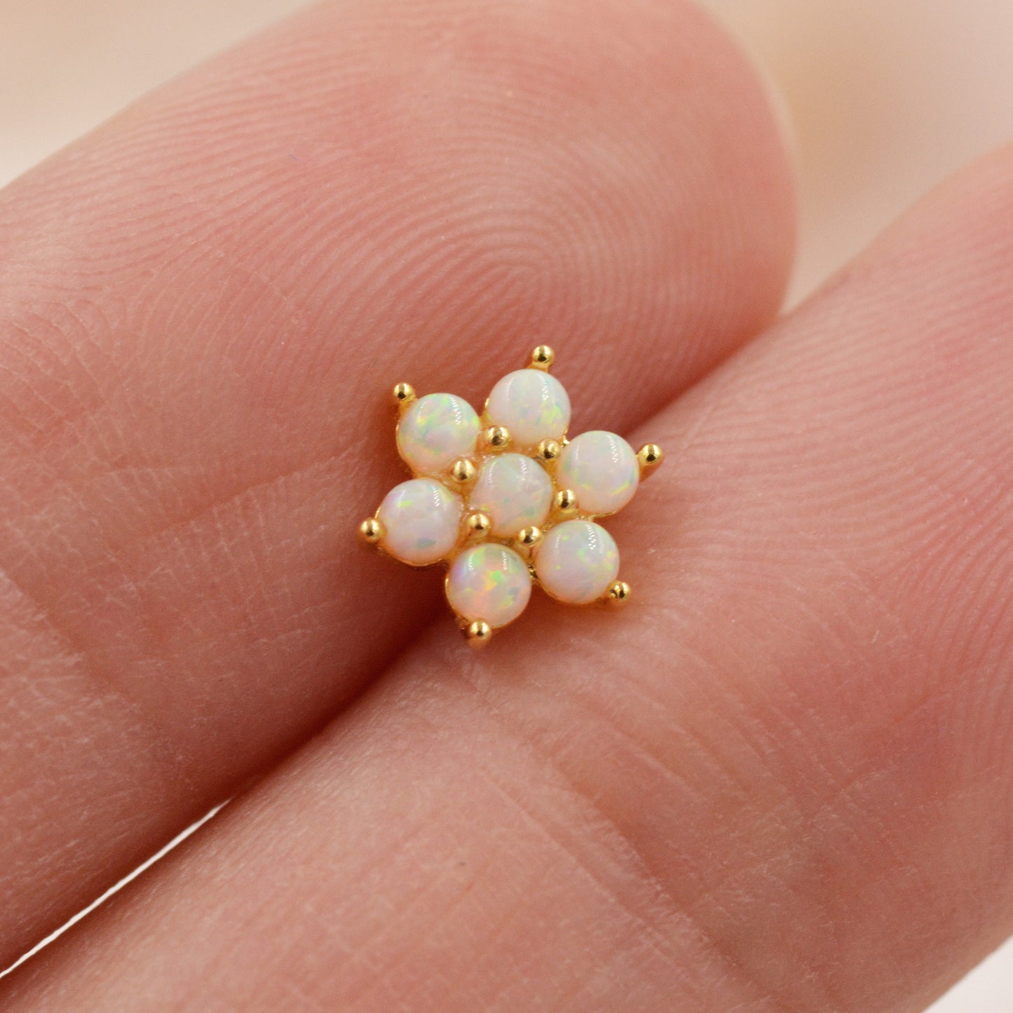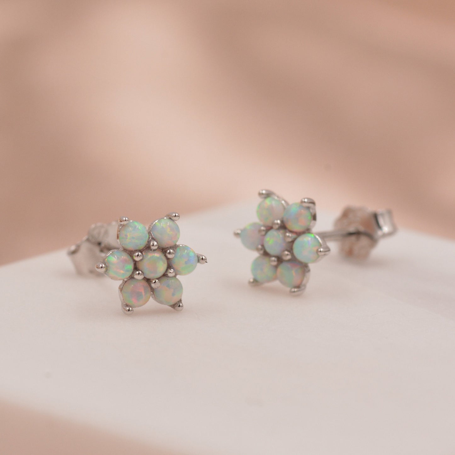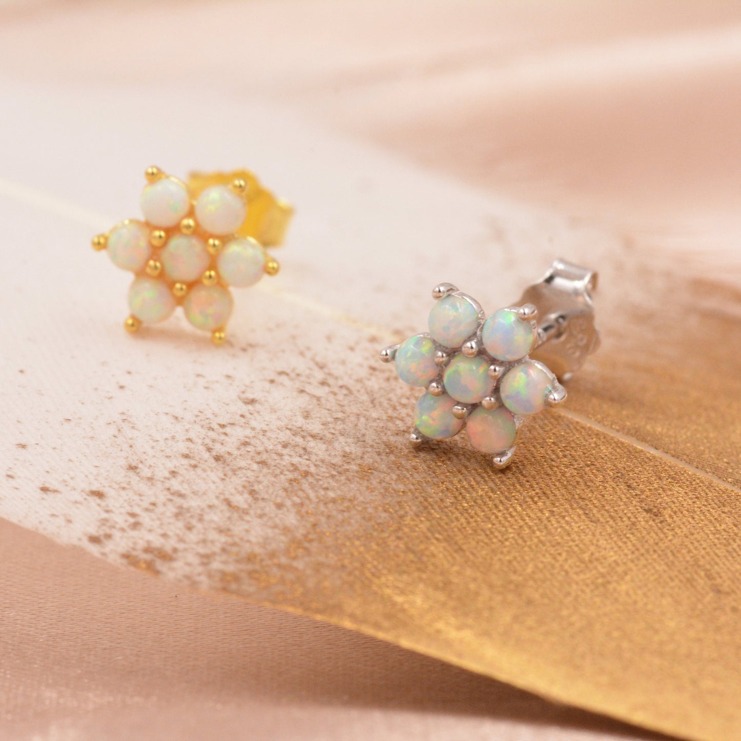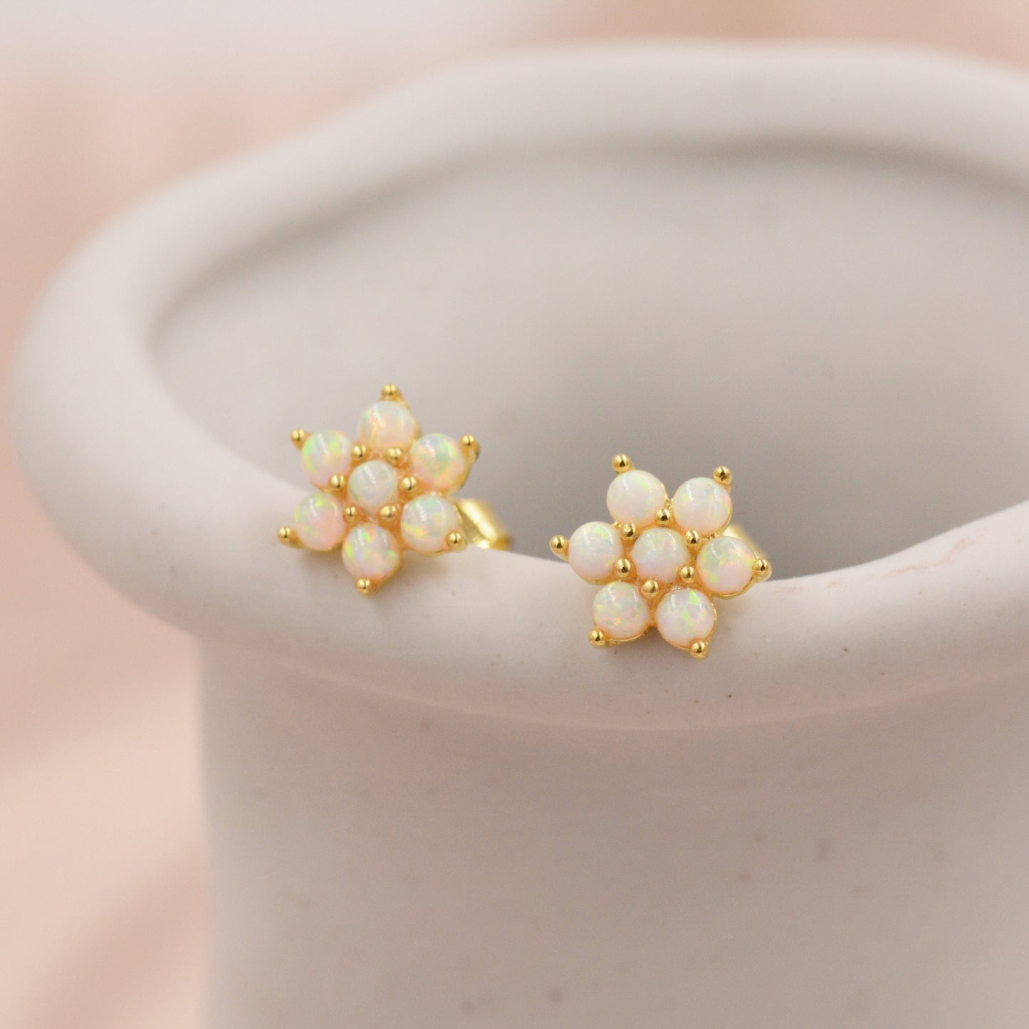 Opal Flower Stud Earrings in Sterling Silver - Gold or Silver - Opal Snowflake - 7 Opal Cluster - Petite Stud Earrings