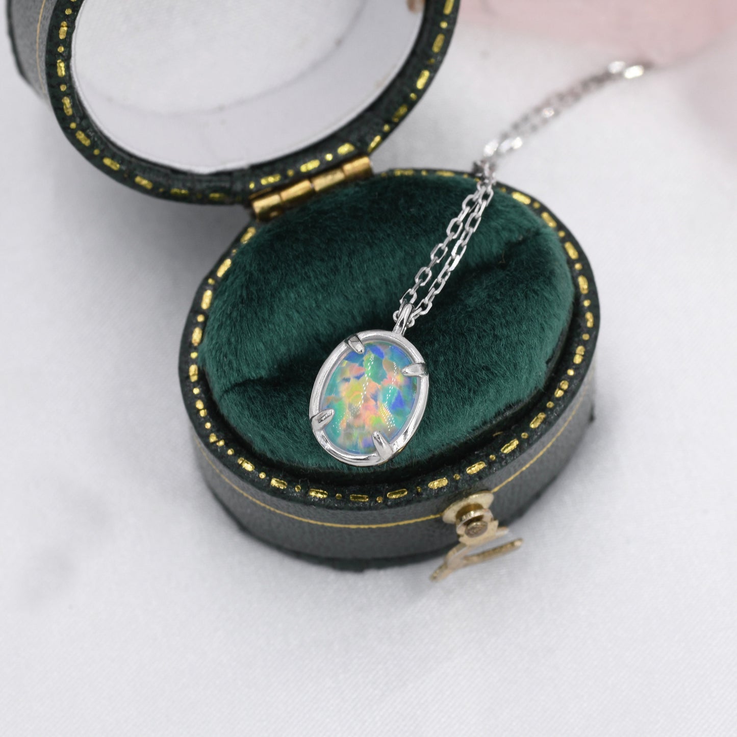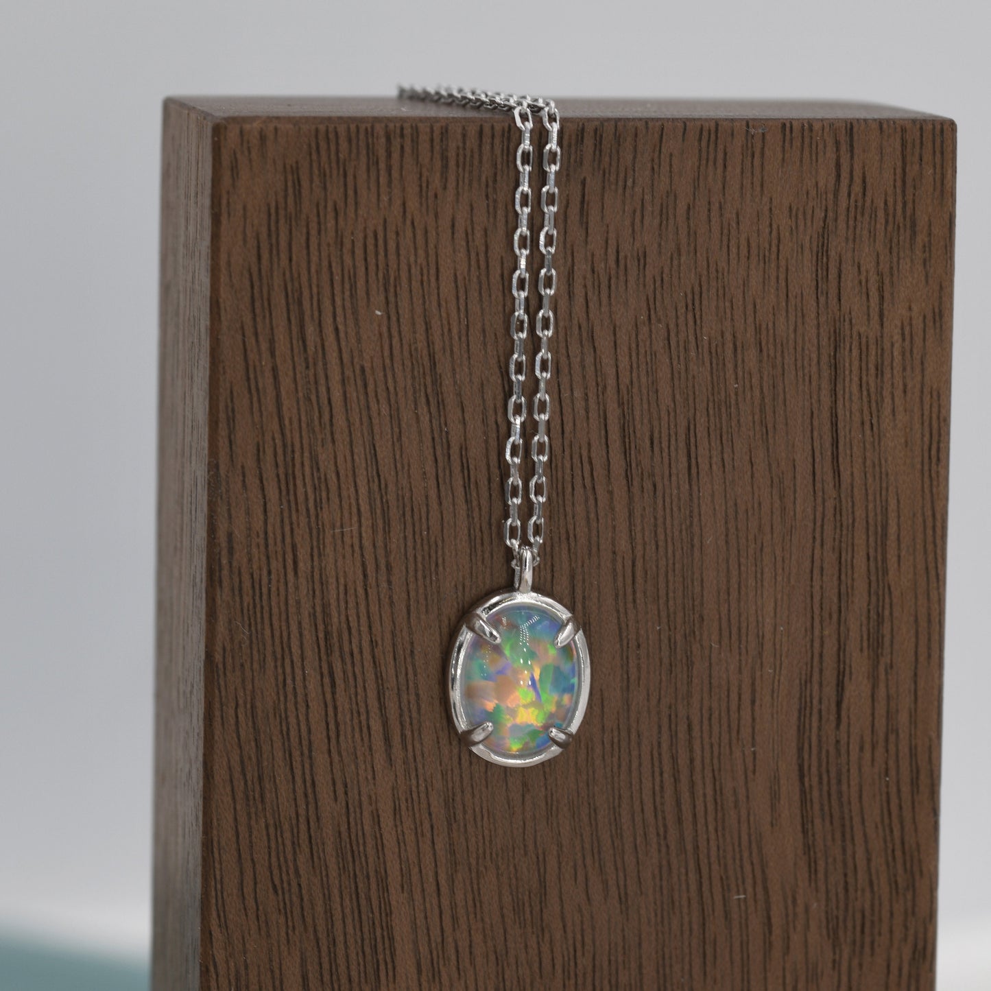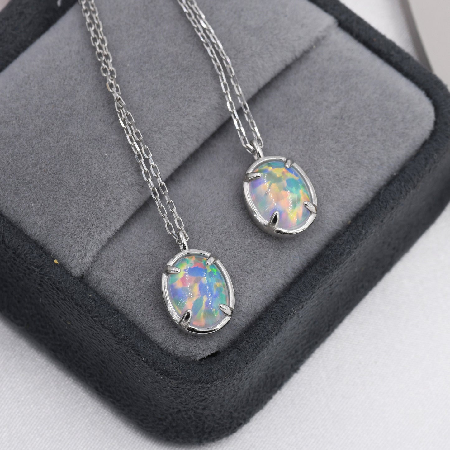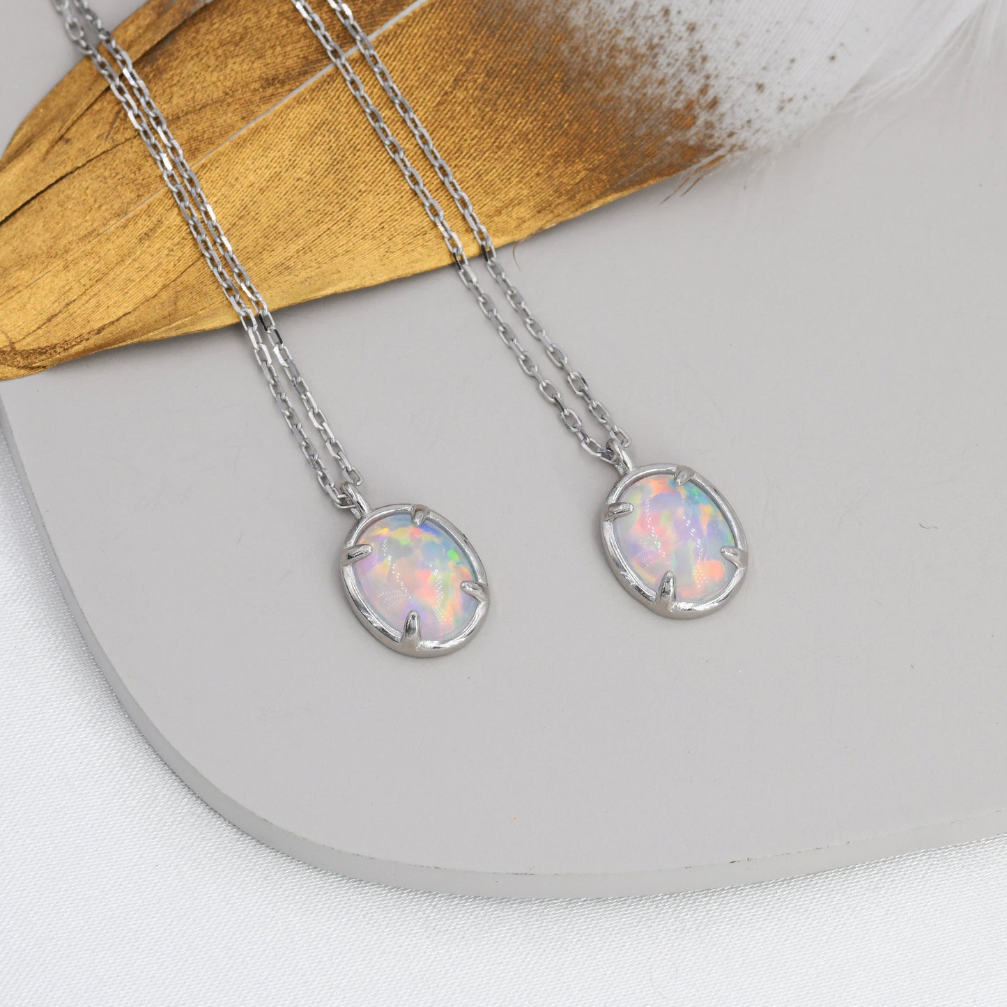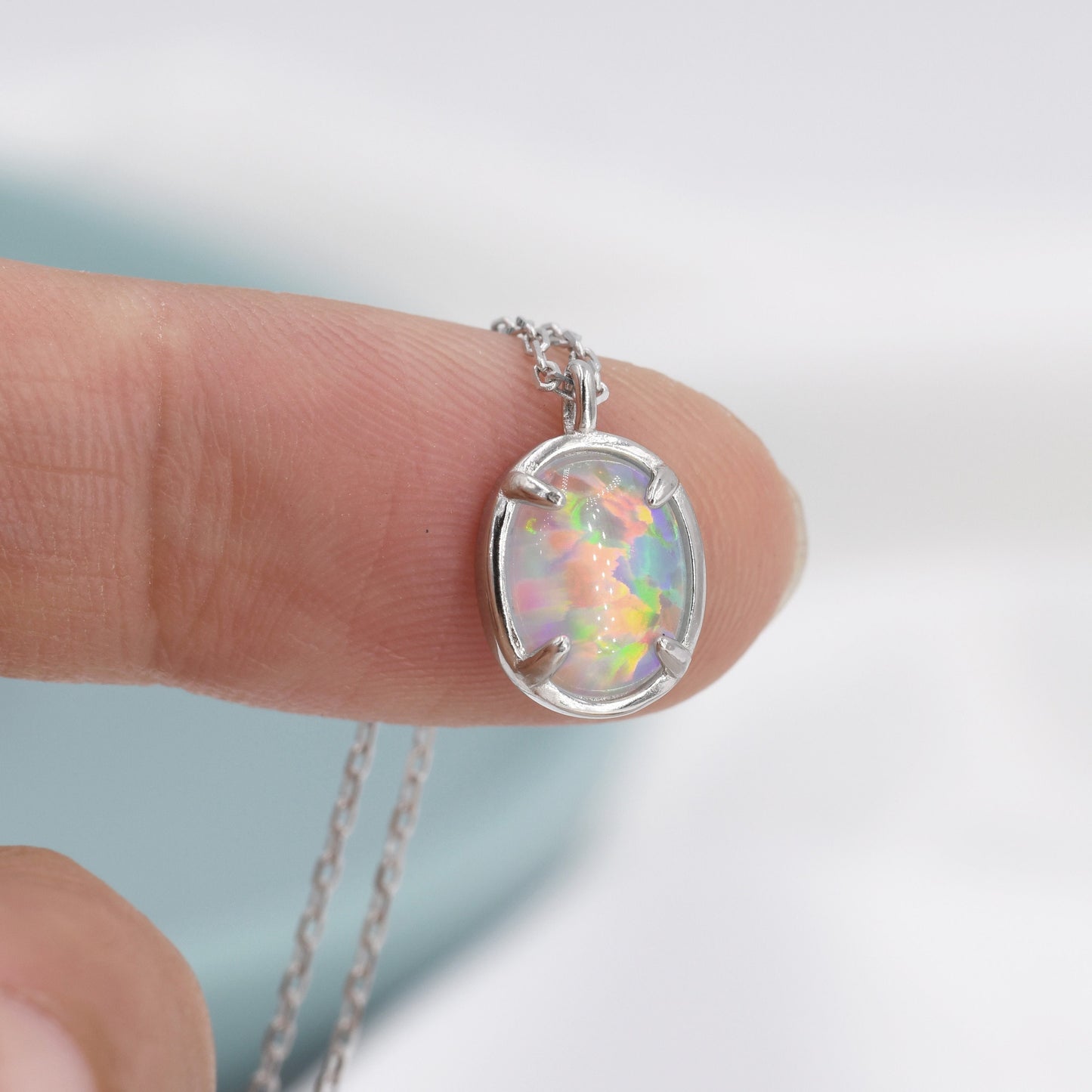 Opal Oval Necklace in Sterling Silver, Dainty Oval Cabochon Necklace, October Birthstone