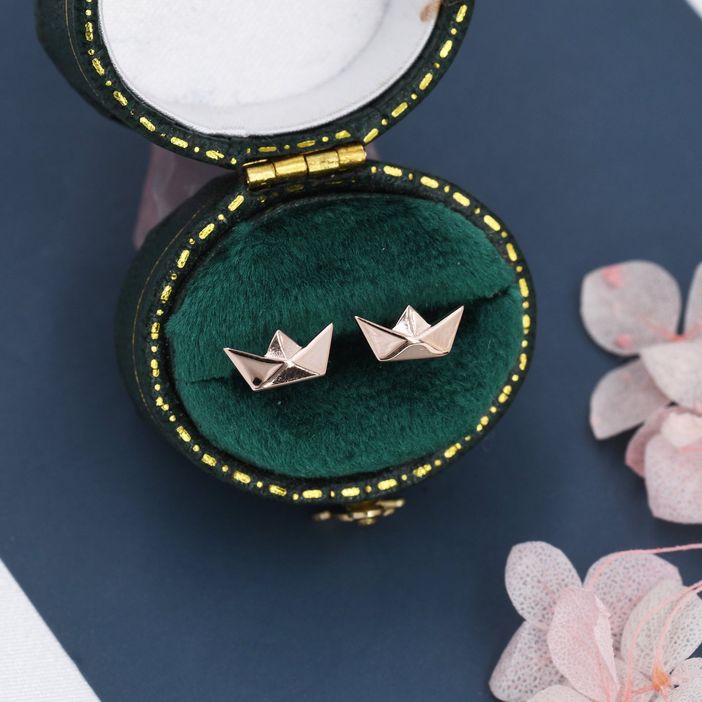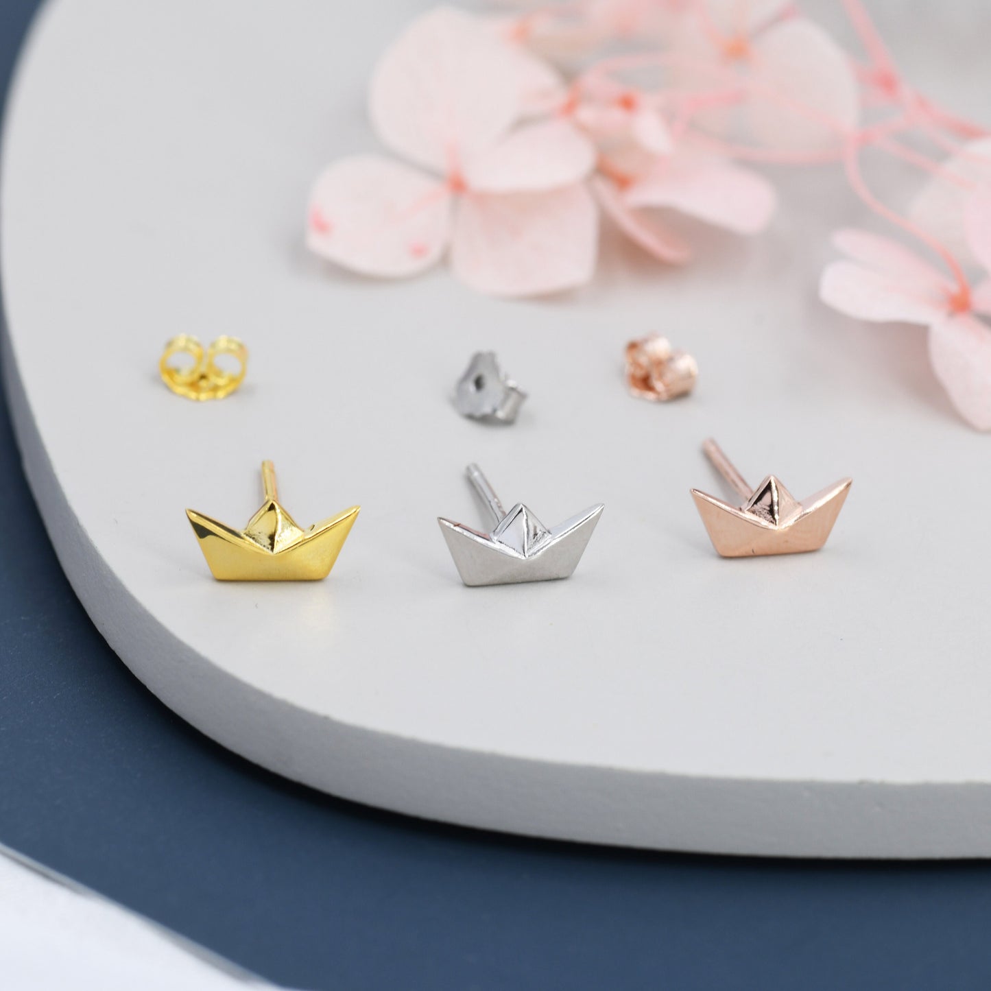 Origami Paper Boat Stud Earrings in Sterling Silver, Silver, Gold or Rose Gold, Boat Earrings, Origami Earrings