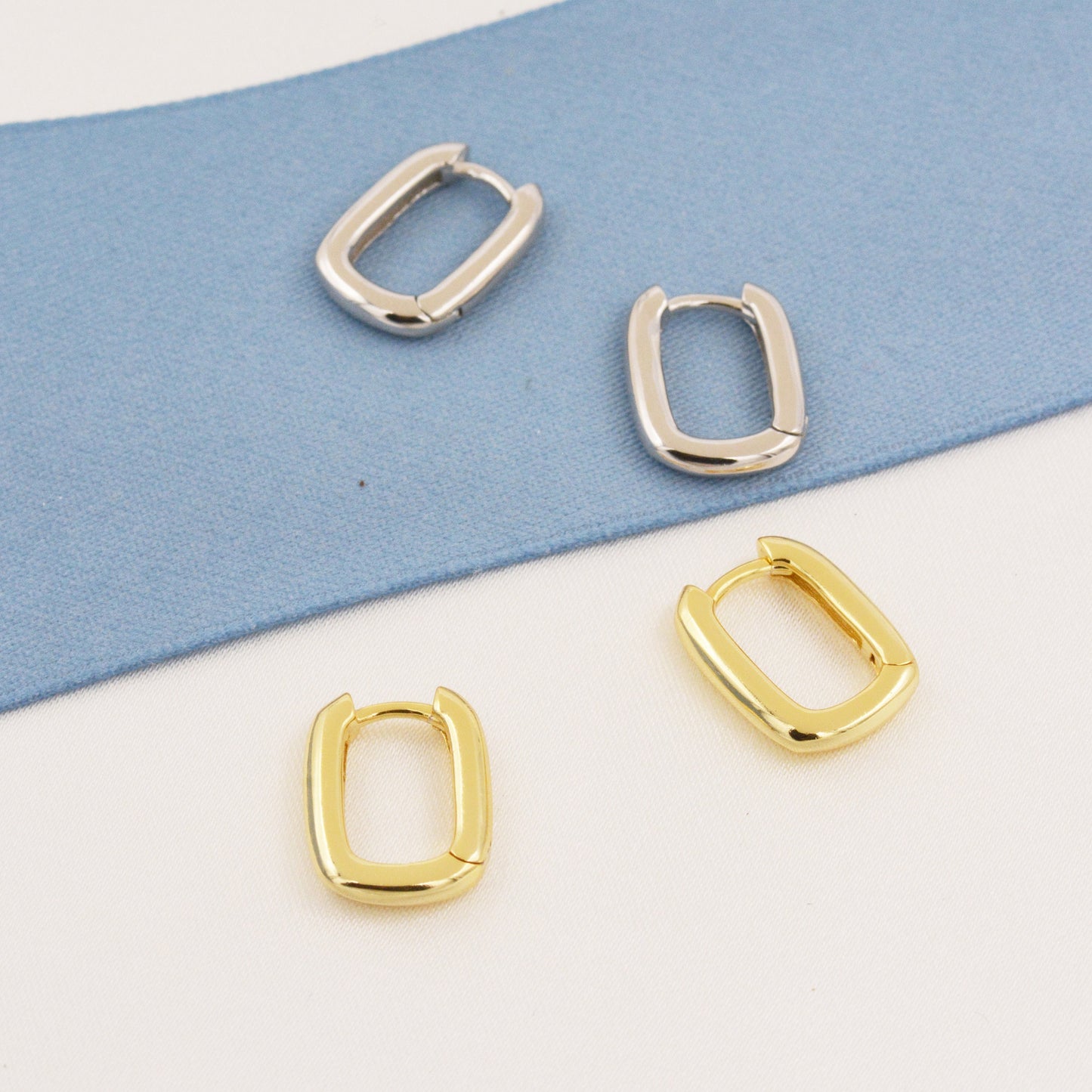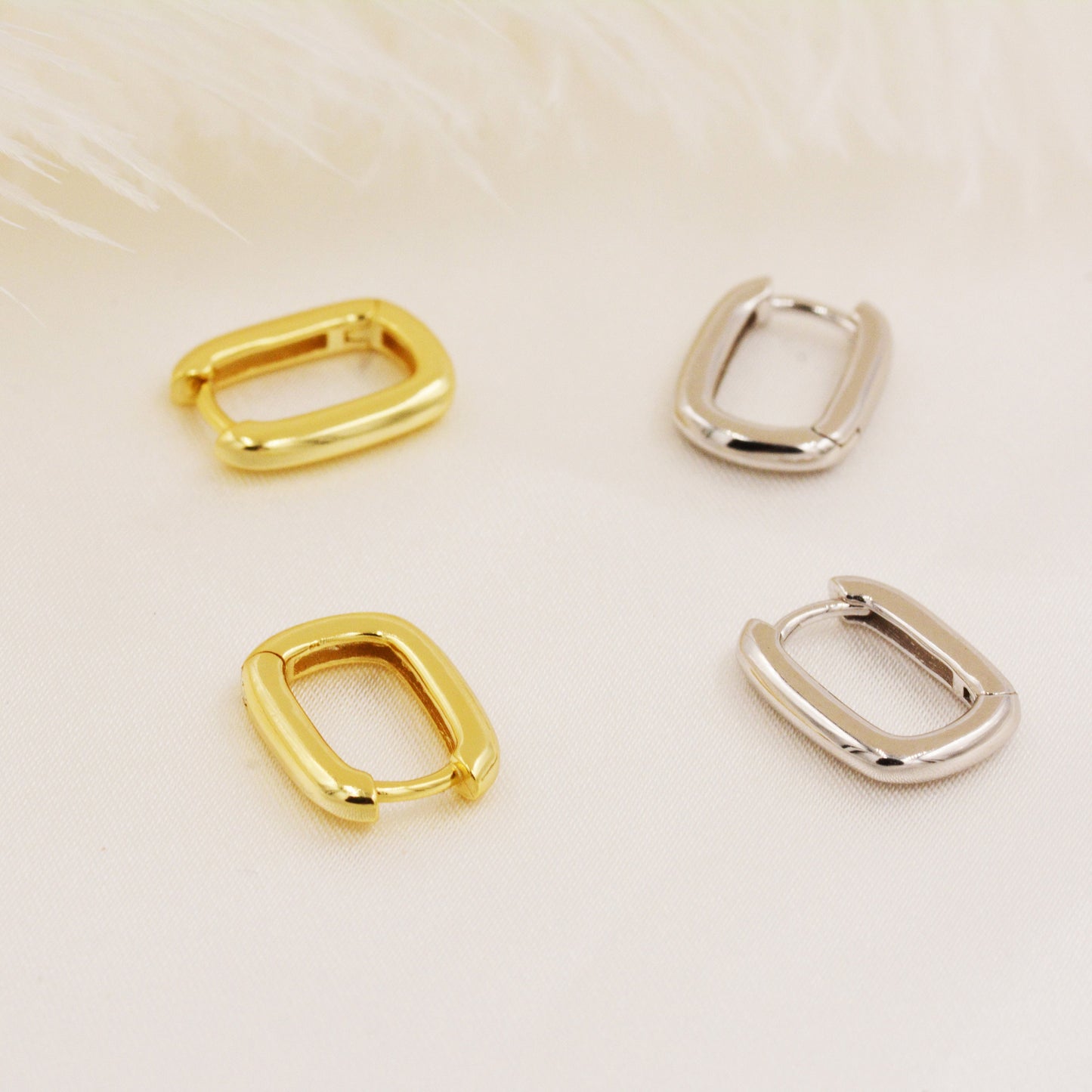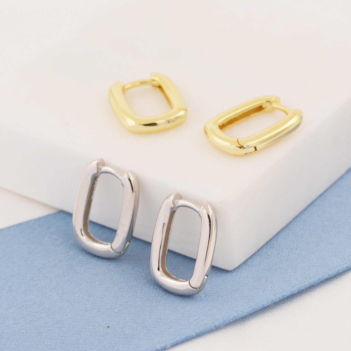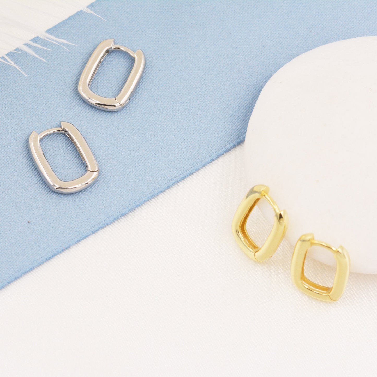 Pair of Small Rectangular Hoop Earrings in Sterling Silver, Oval Hoop Earrings, Chunky Hoop Earrings, Silver or Gold, Square Hoop Earrings