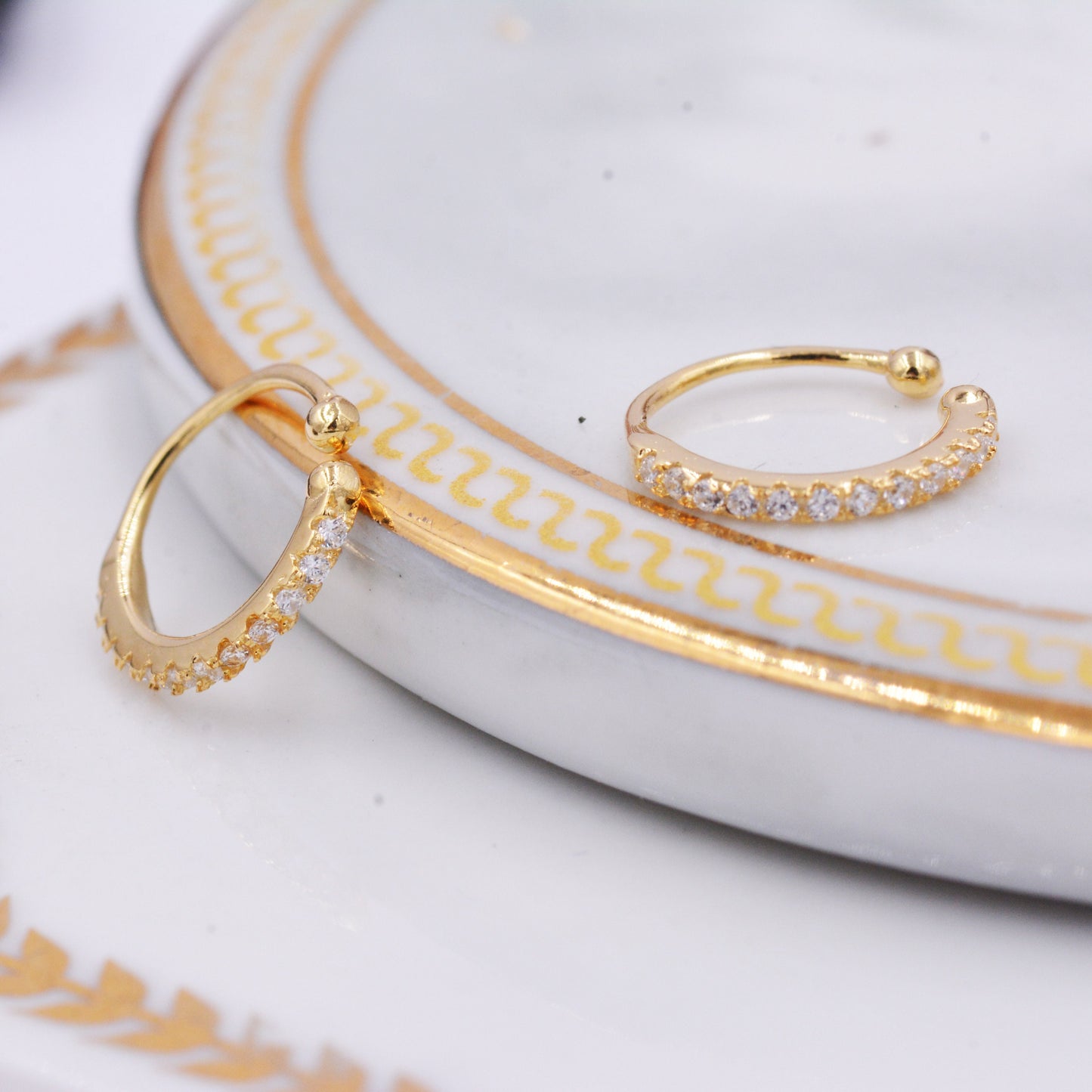 The no-commitment way to wear earrings. These sparkly Ear Cuffs requires no piercings ??? like art for your ears. A simple ring-sized ear cuff is timeless and goes with all types of jewelry.