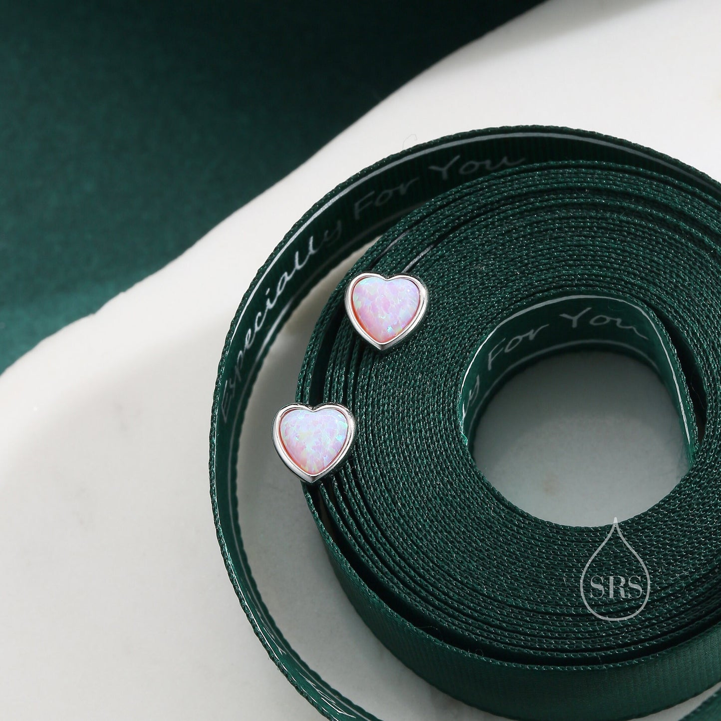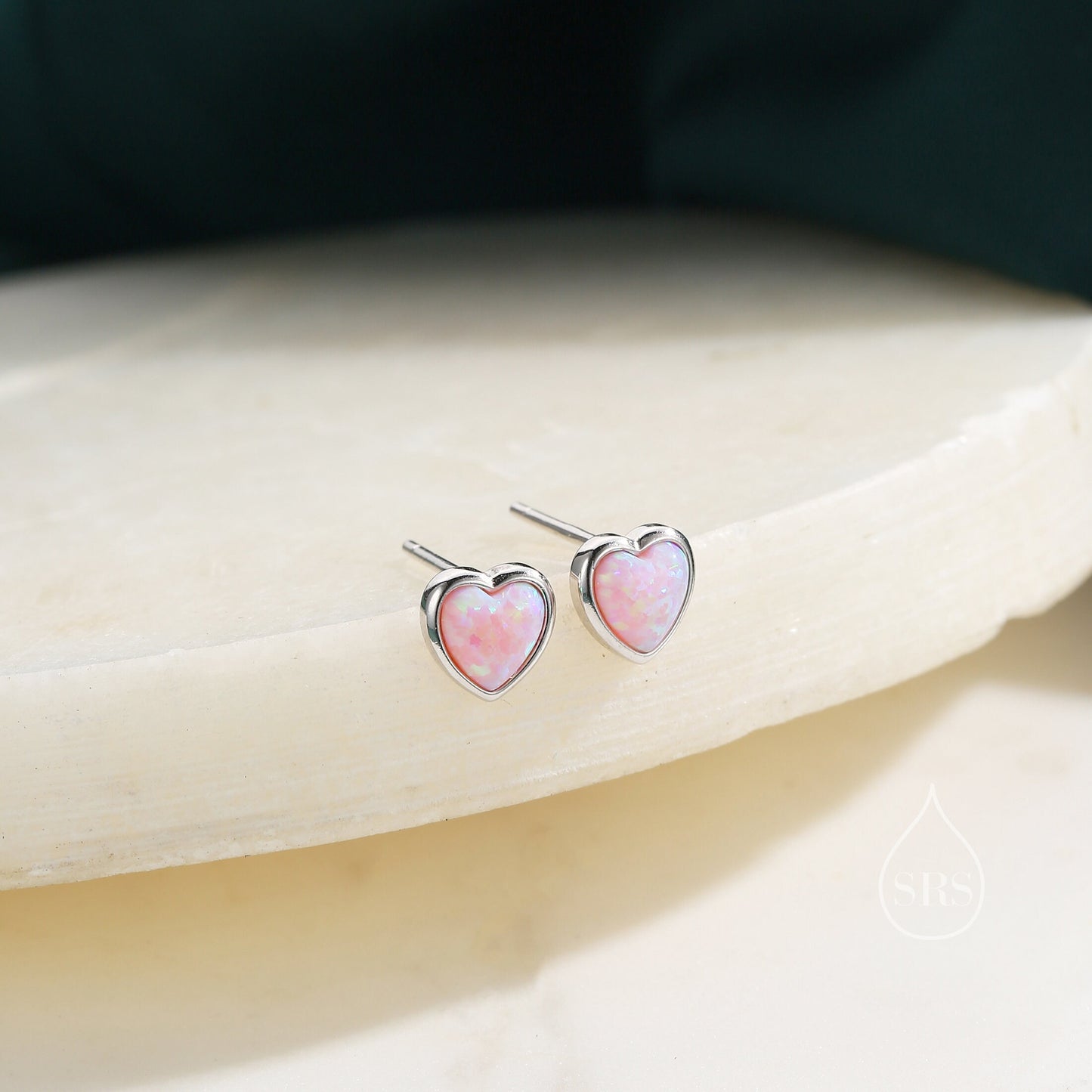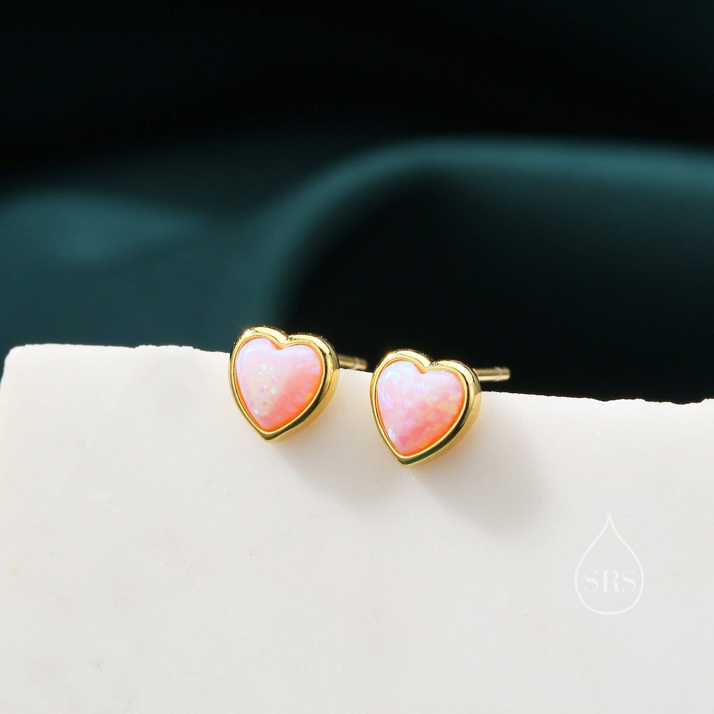 Pink Opal Heart Stud Earrings in Sterling Silver, Opal Heart Earrings, Silver or Gold, Heart Earrings, Fire Opal Earrings