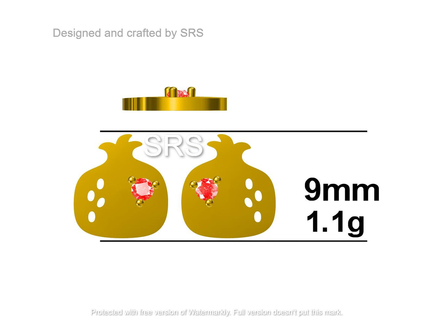 Pomegranate Fruit Stud Earrings in Sterling Silver - Fruit Earrings - Cute Fruit Earrings - Cute, Fun, Whimsical