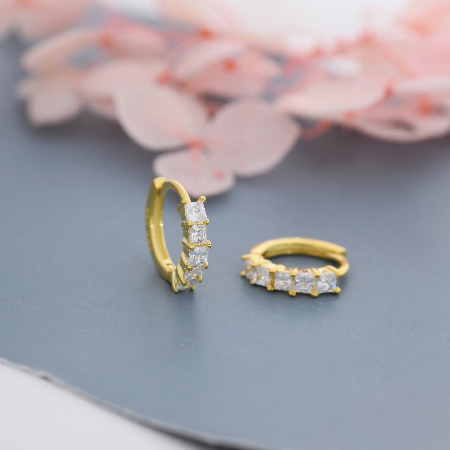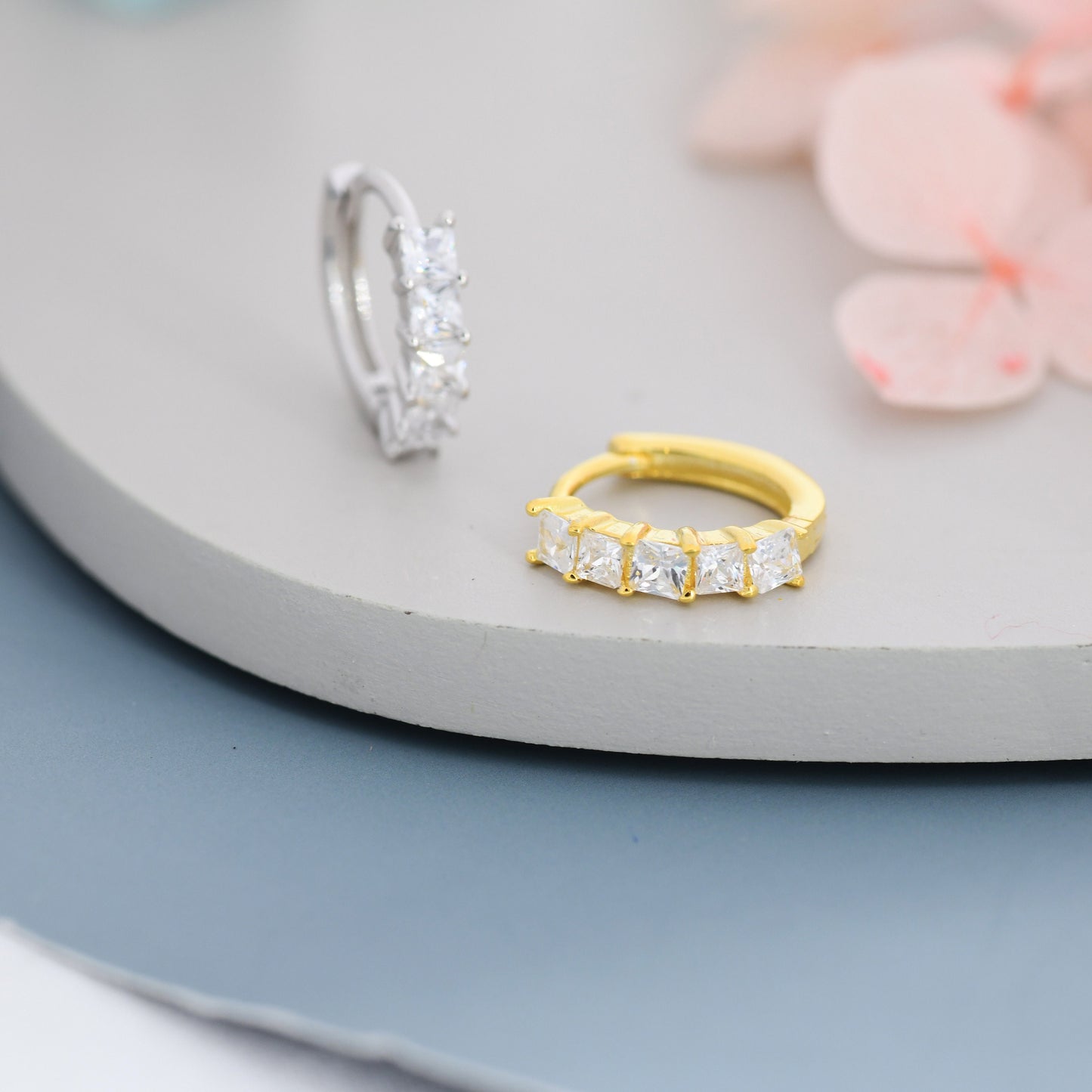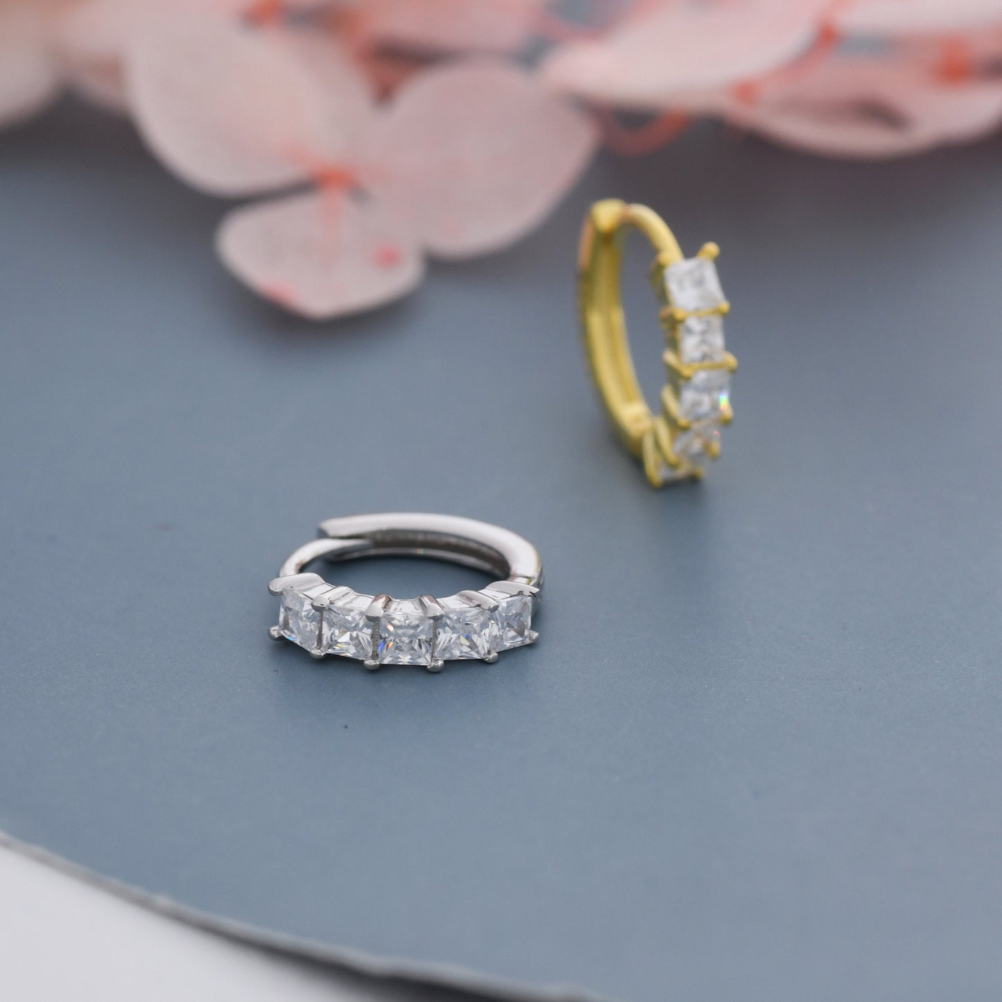 Princess Cut CZ Huggie Hoop in Sterling Silver, Silver or Gold, Minimalist Simple Hoop Earrings