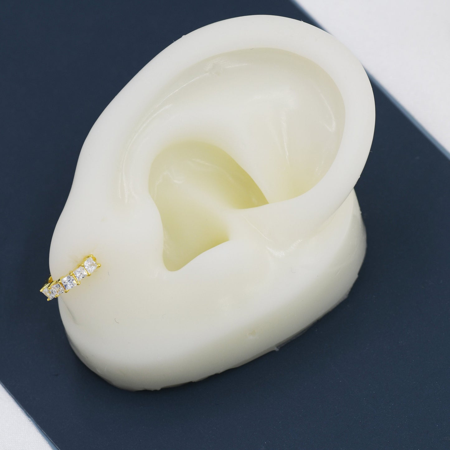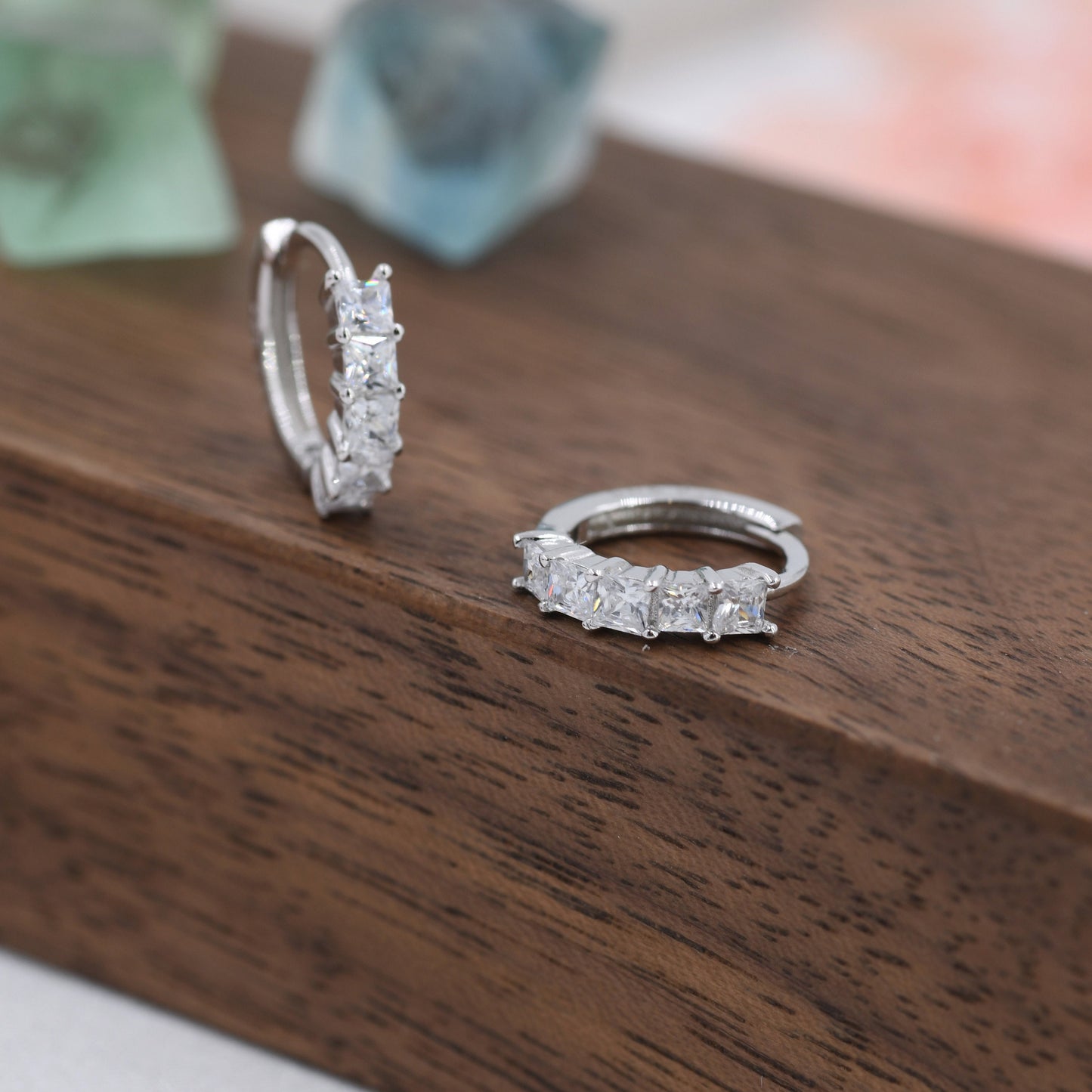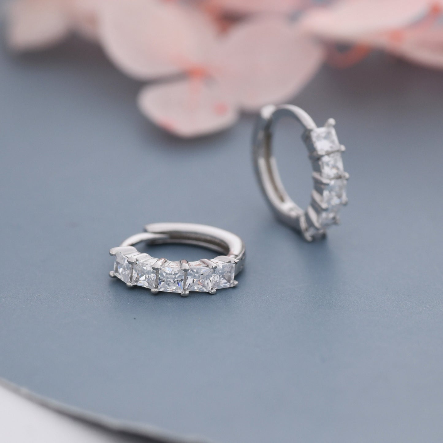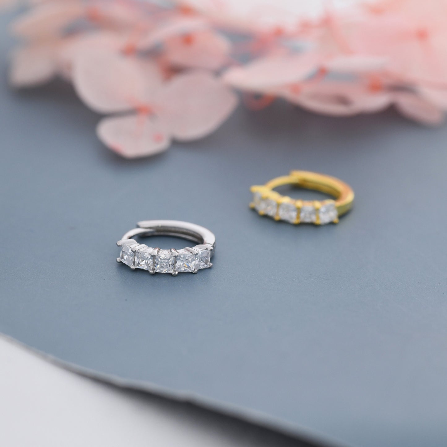 Princess Cut CZ Huggie Hoop in Sterling Silver, Silver or Gold, Minimalist Simple Hoop Earrings