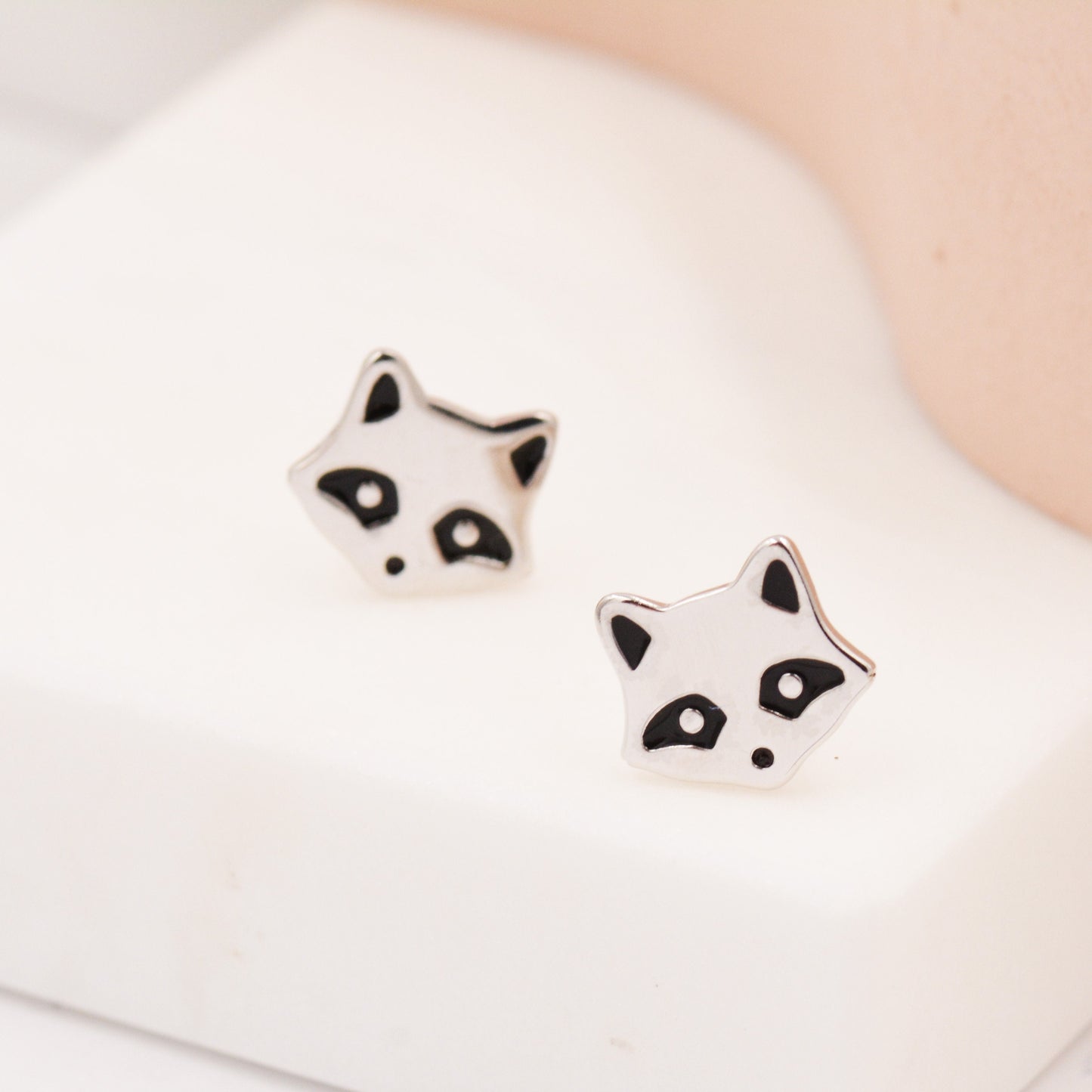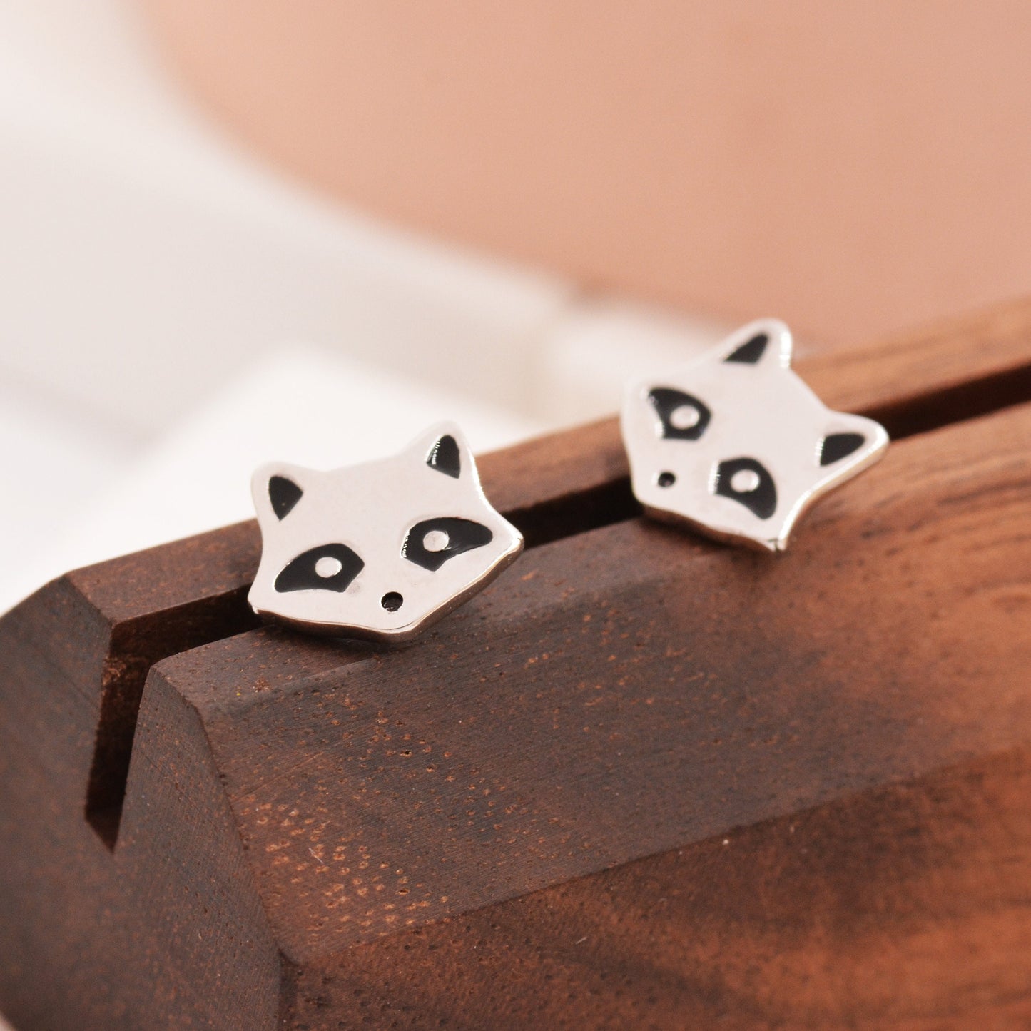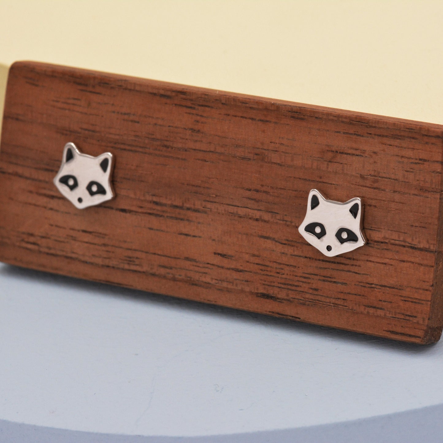 Racoon Stud Earrings in Sterling Silver - Racoon Bear Earrings - Cute Animal Earrings - Fun and Whimsical