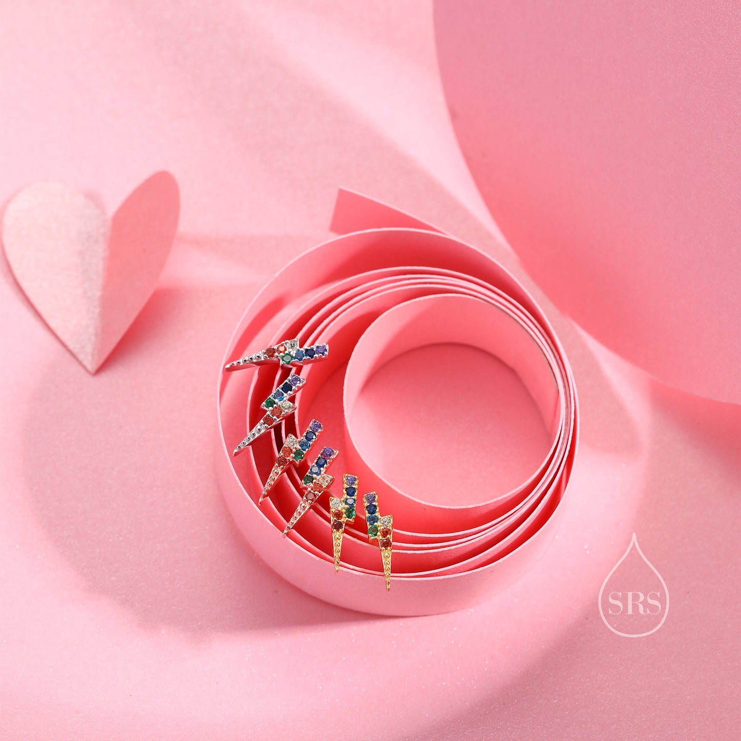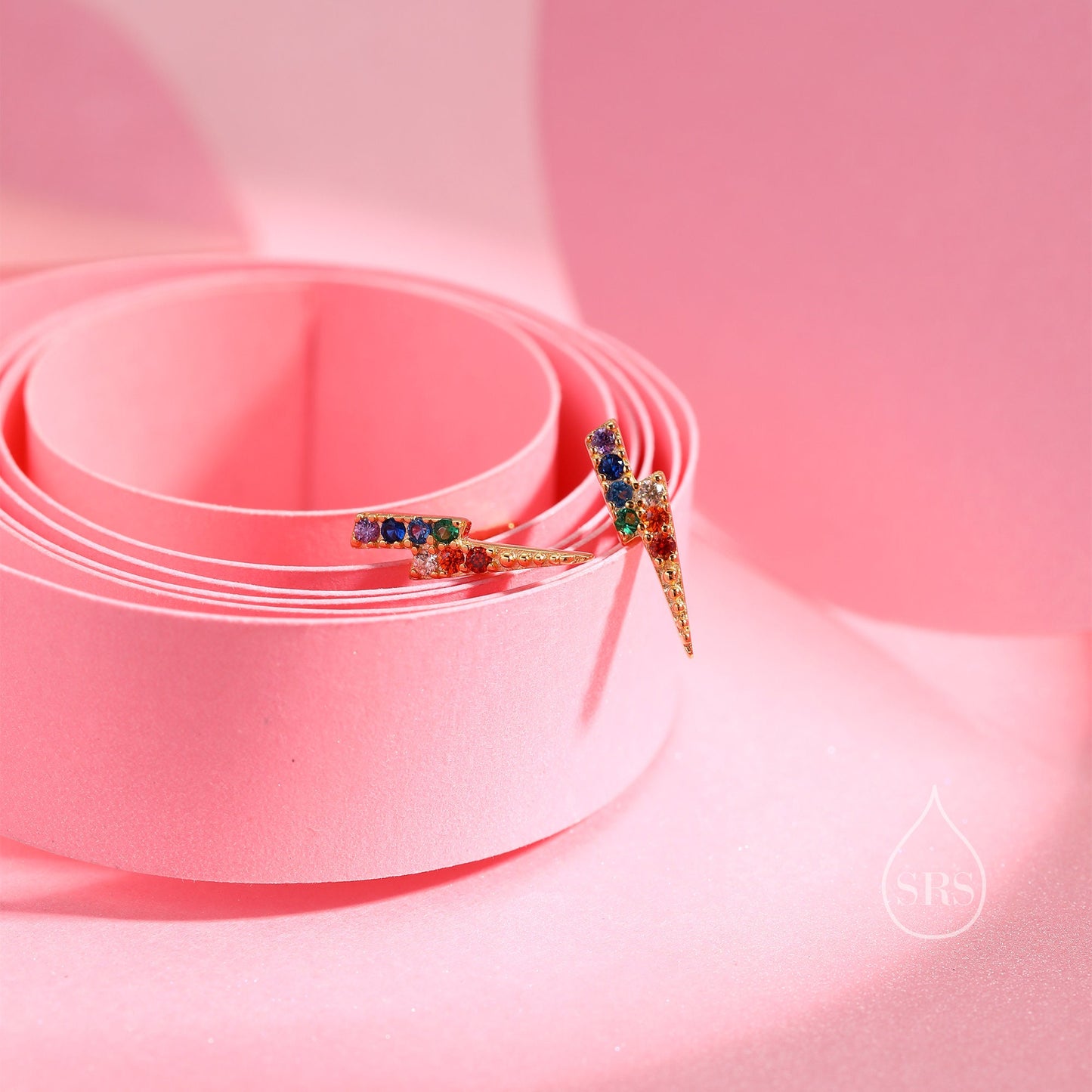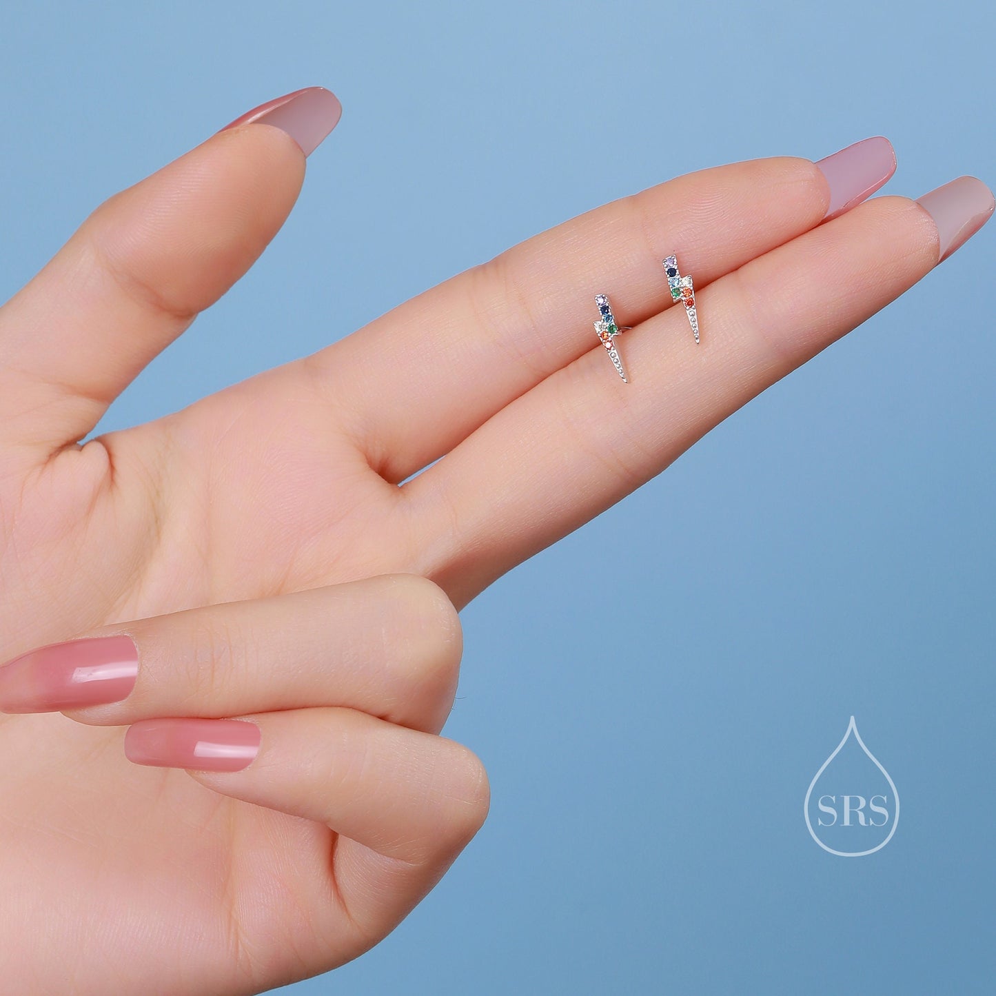Rainbow Lightning Bolt Stud Earrings in Sterling Silver, Silver or Gold, Lightning Bolt Earrings