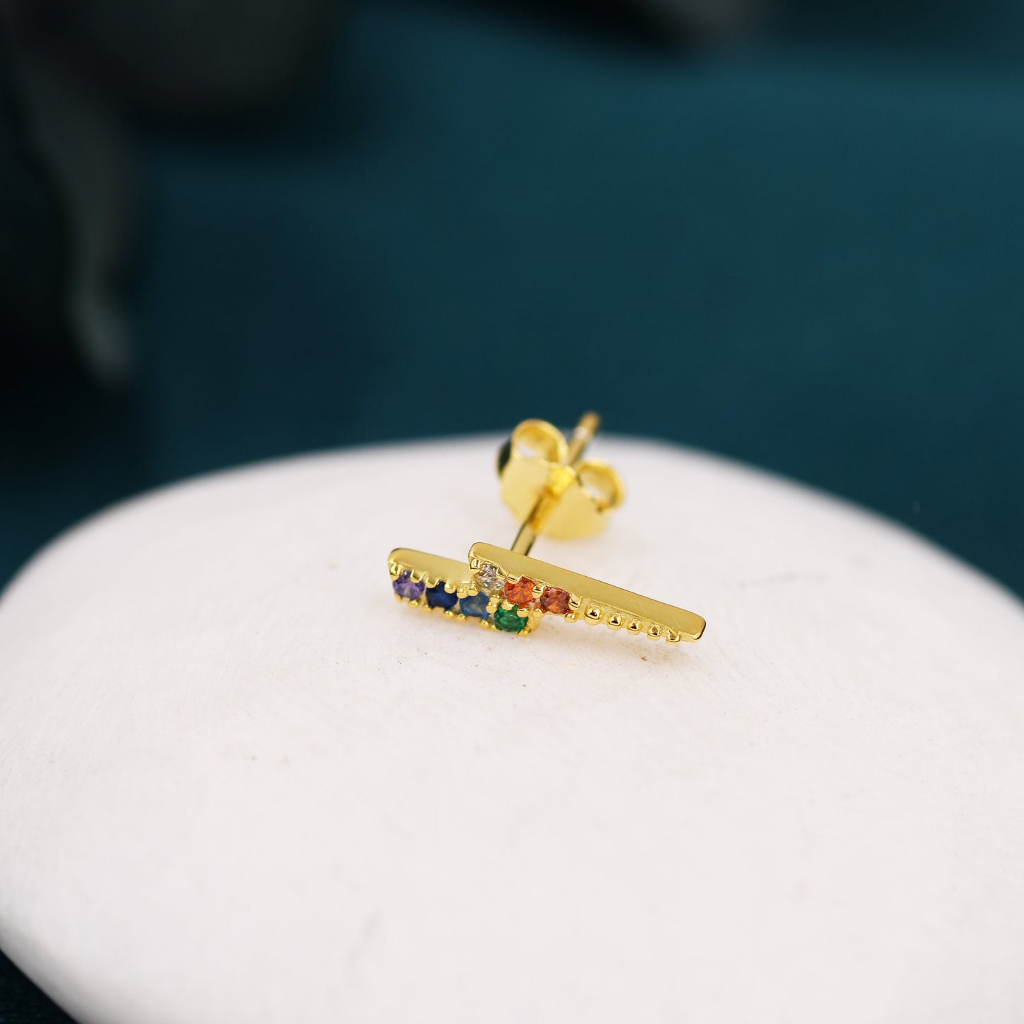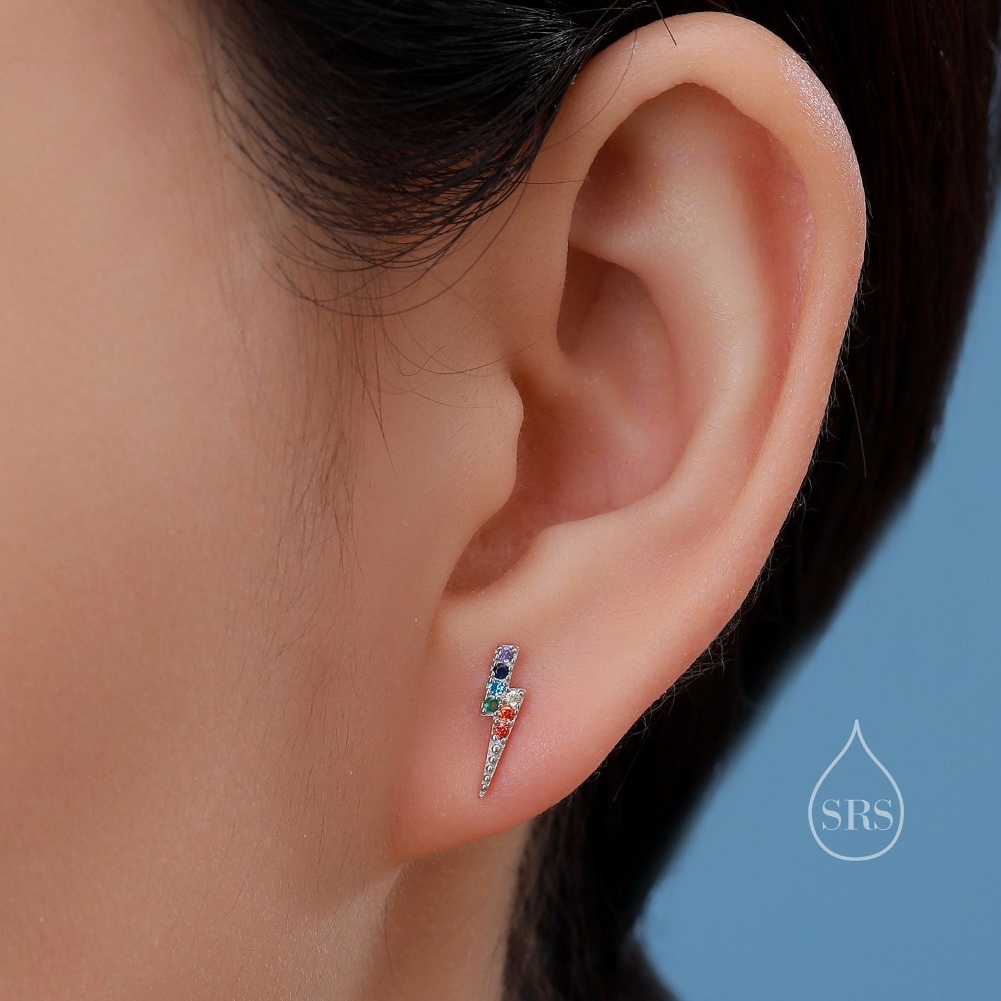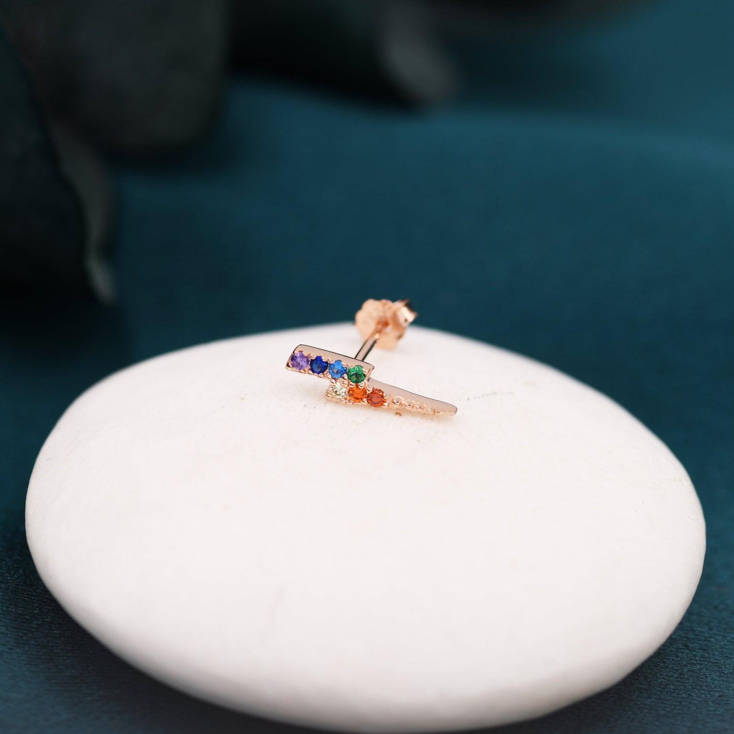 Rainbow Lightning Bolt Stud Earrings in Sterling Silver, Silver or Gold, Lightning Bolt Earrings