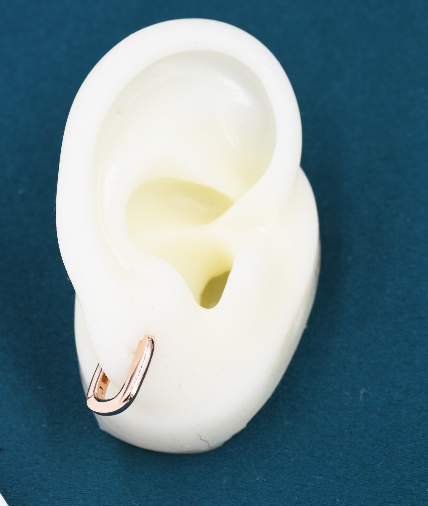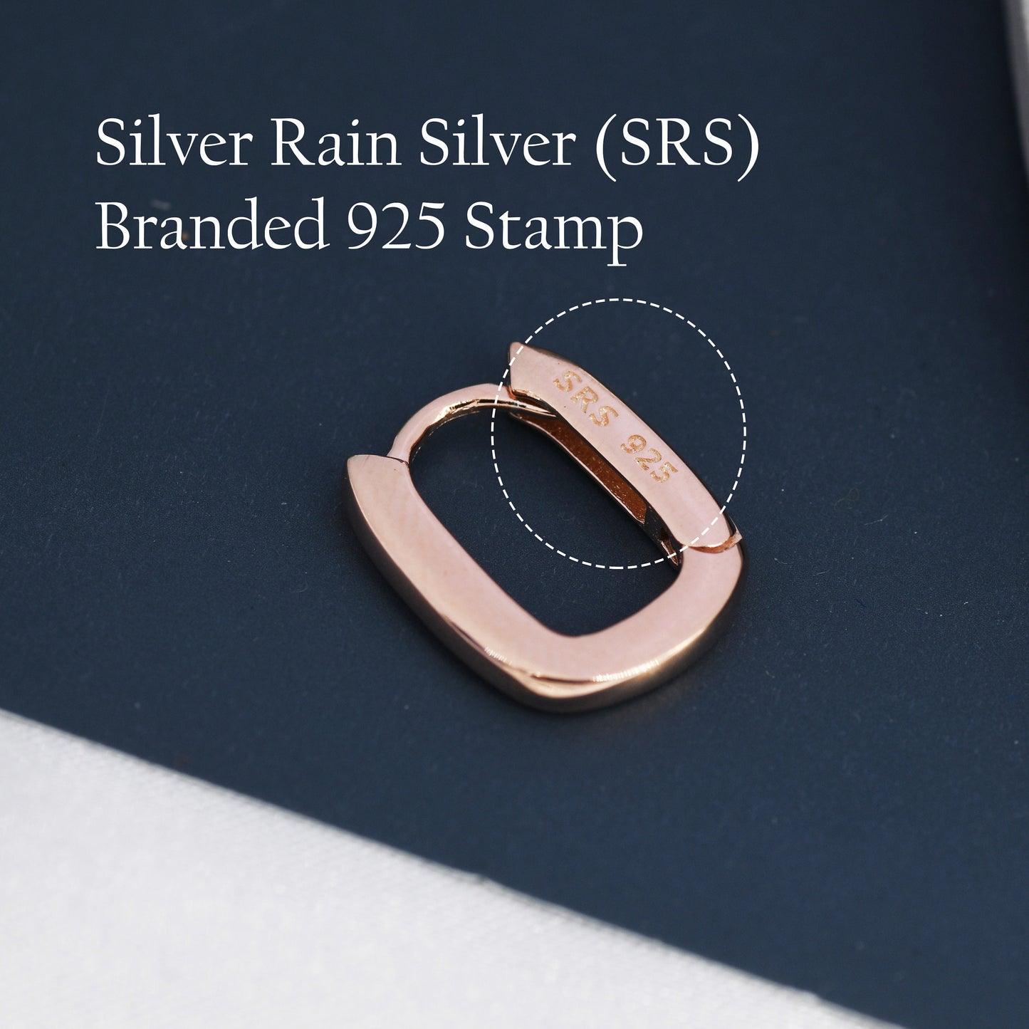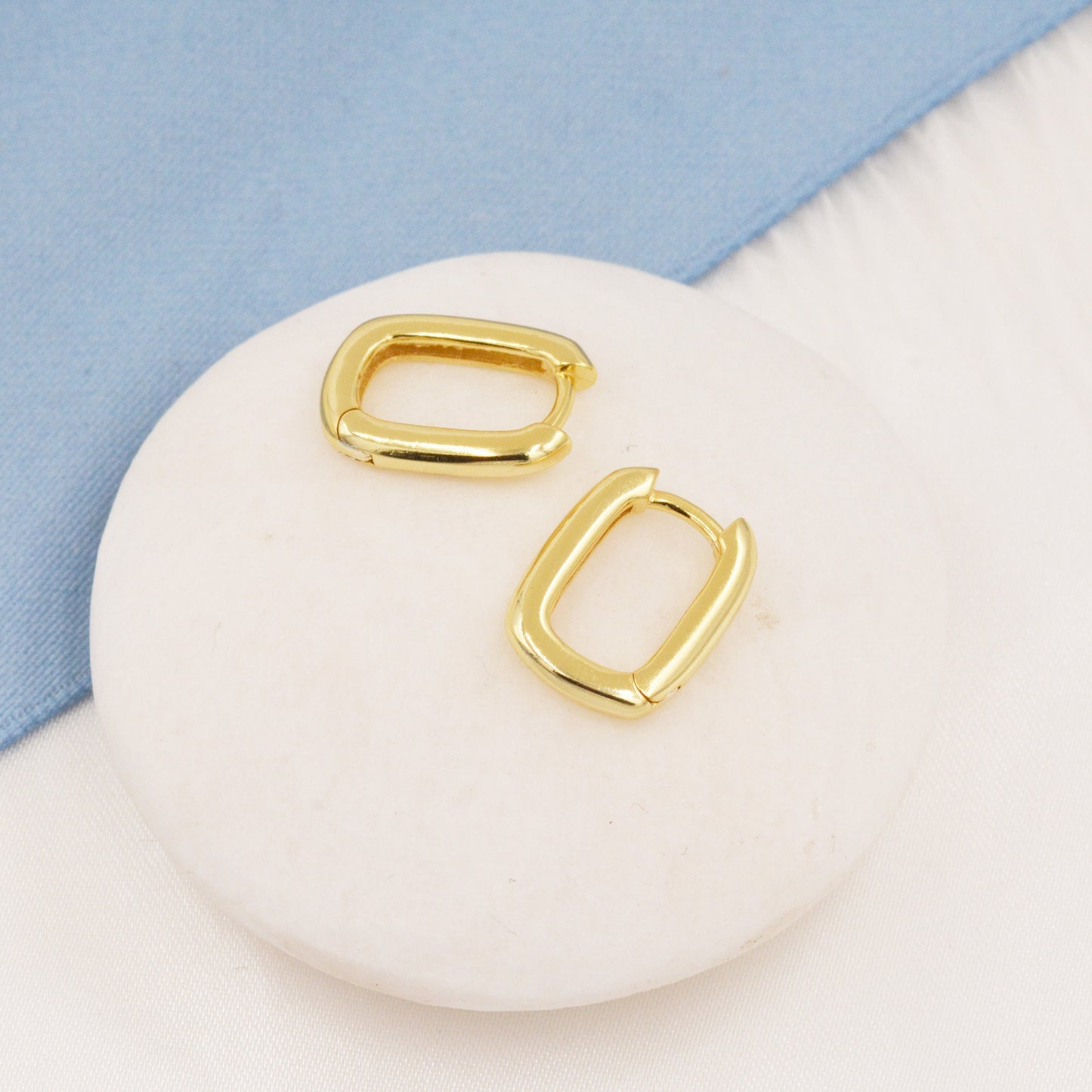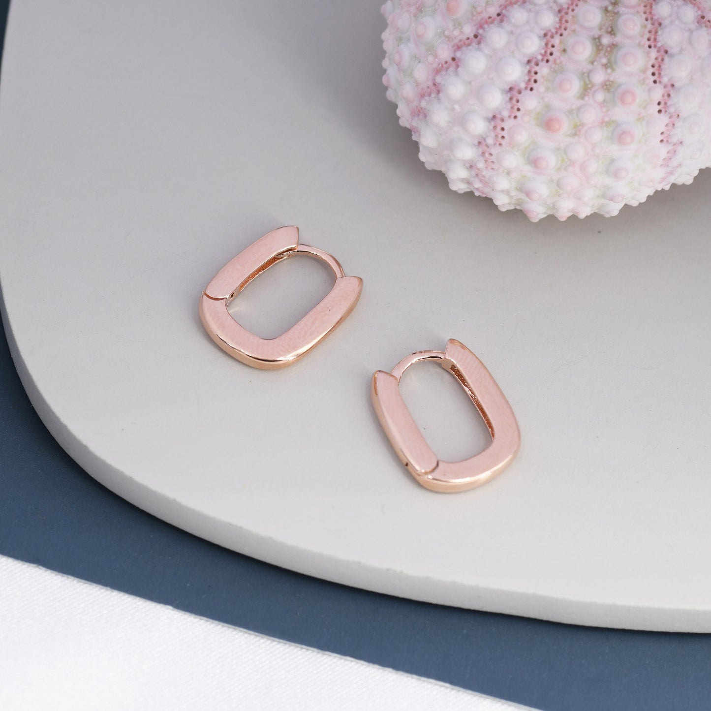 Rectangular Hoop Earrings in Sterling Silver, Mini Oval Hoop Earrings, Chunky Hoop Earrings, Silver or Gold or Rose Gold, Square Hoops
