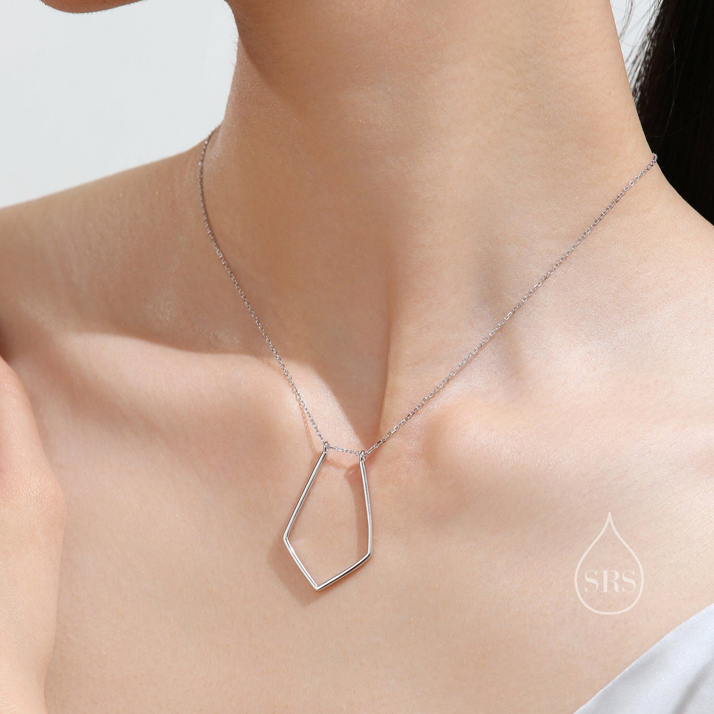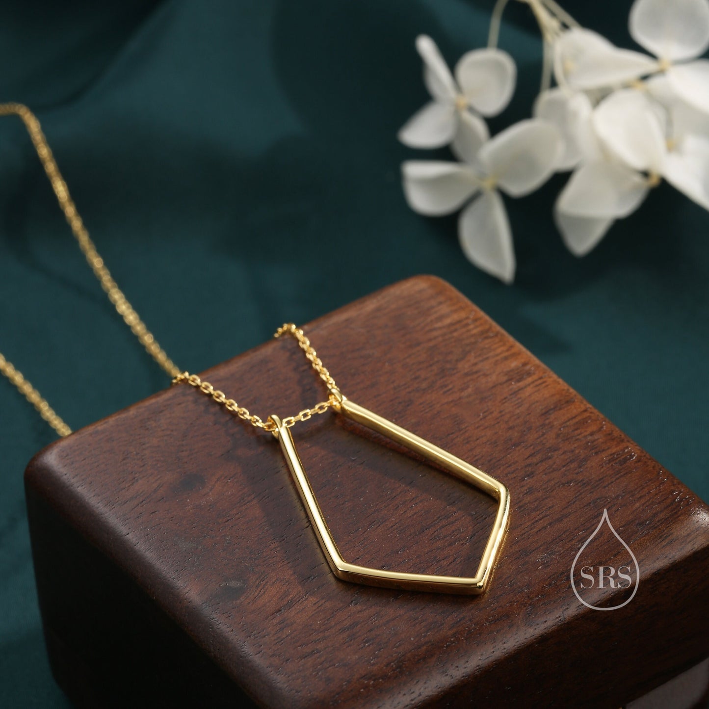 UK Only – Rhombus Pentagon Ring Holder Necklace in Sterling Silver, Gold or Rose Gold,50cm