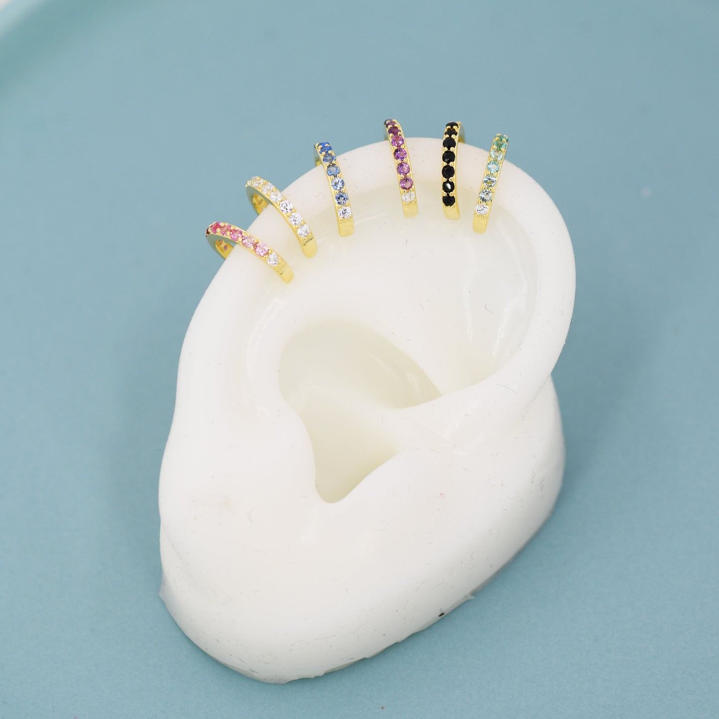 Ruby Red Ombre CZ Ear Cuff in Sterling Silver, Silver or Gold, Simple Piercing Free Earrings, Minimalist Ear Cuff, Pink CZ Ear Cuff