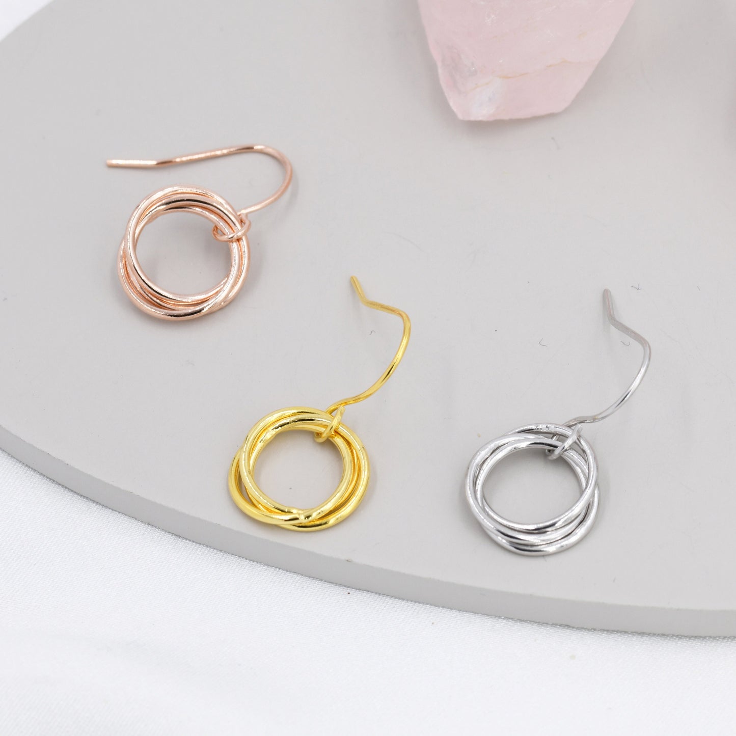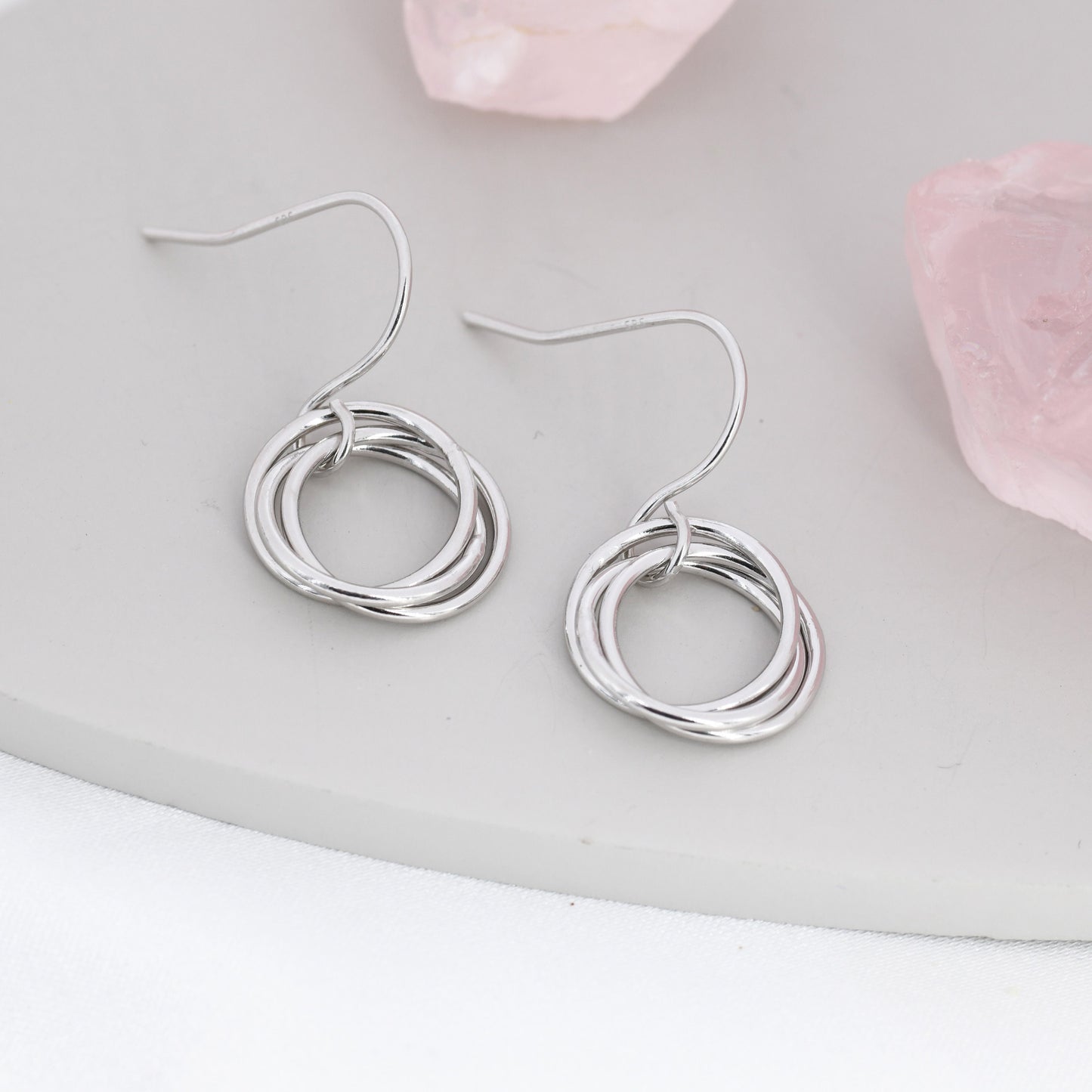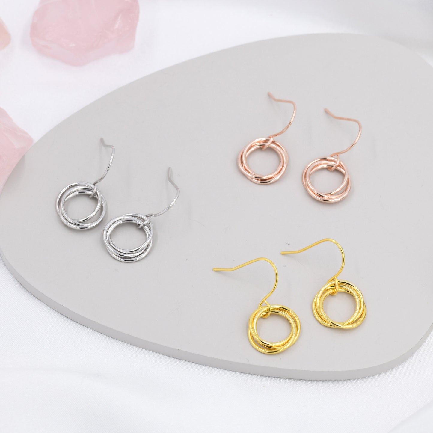 Interlinked Rings Drop Earrings in Sterling Silver, Also with Gold Finish or Rose Gold Finish, Minimalist Knot Dangle Earrings