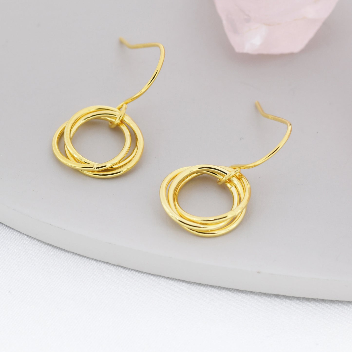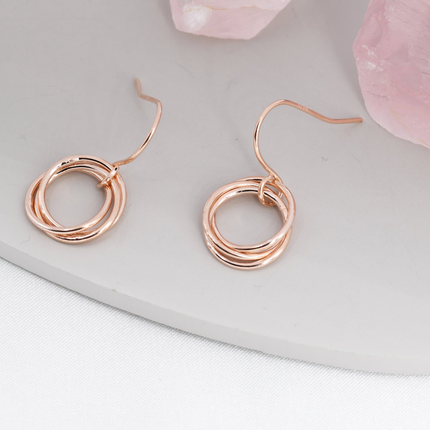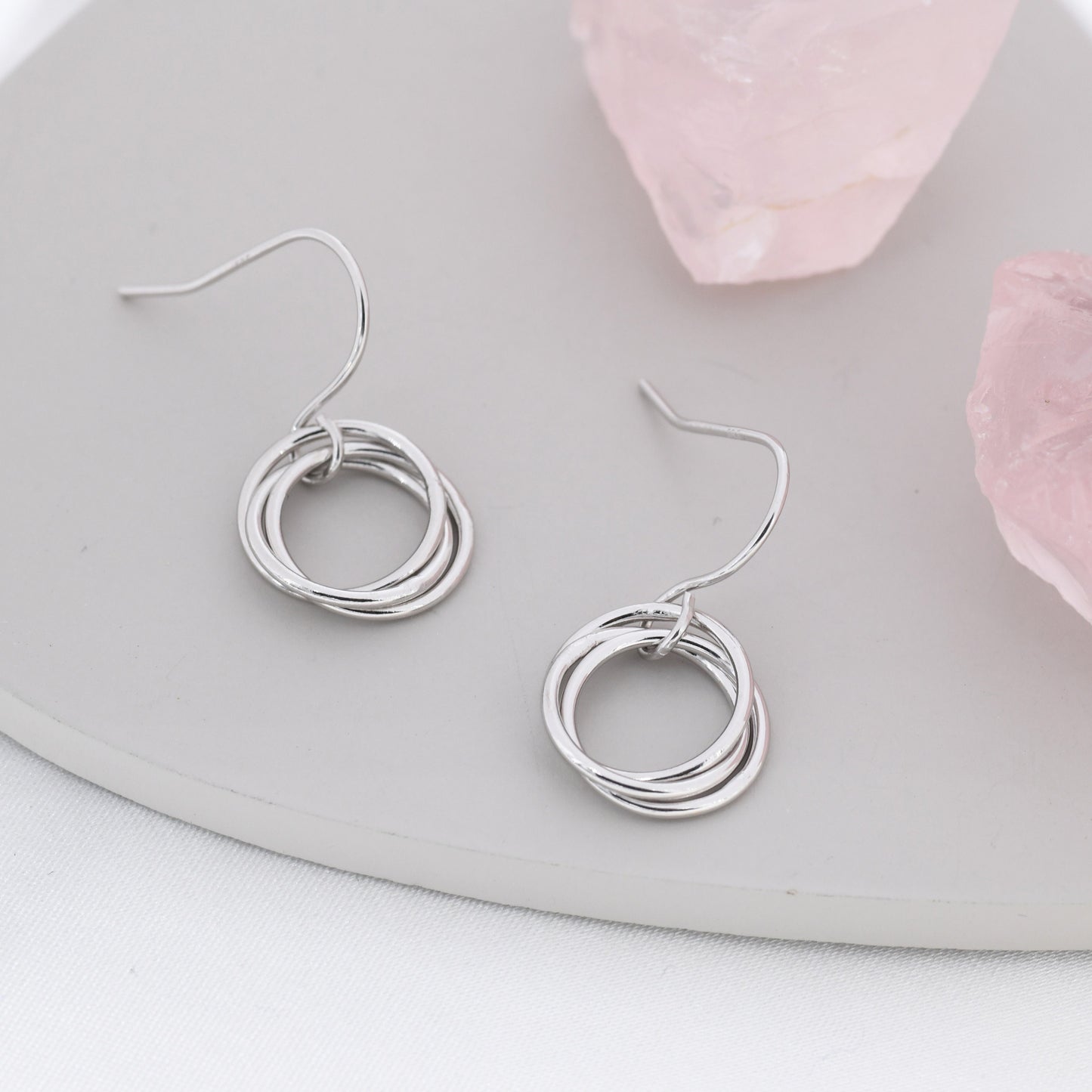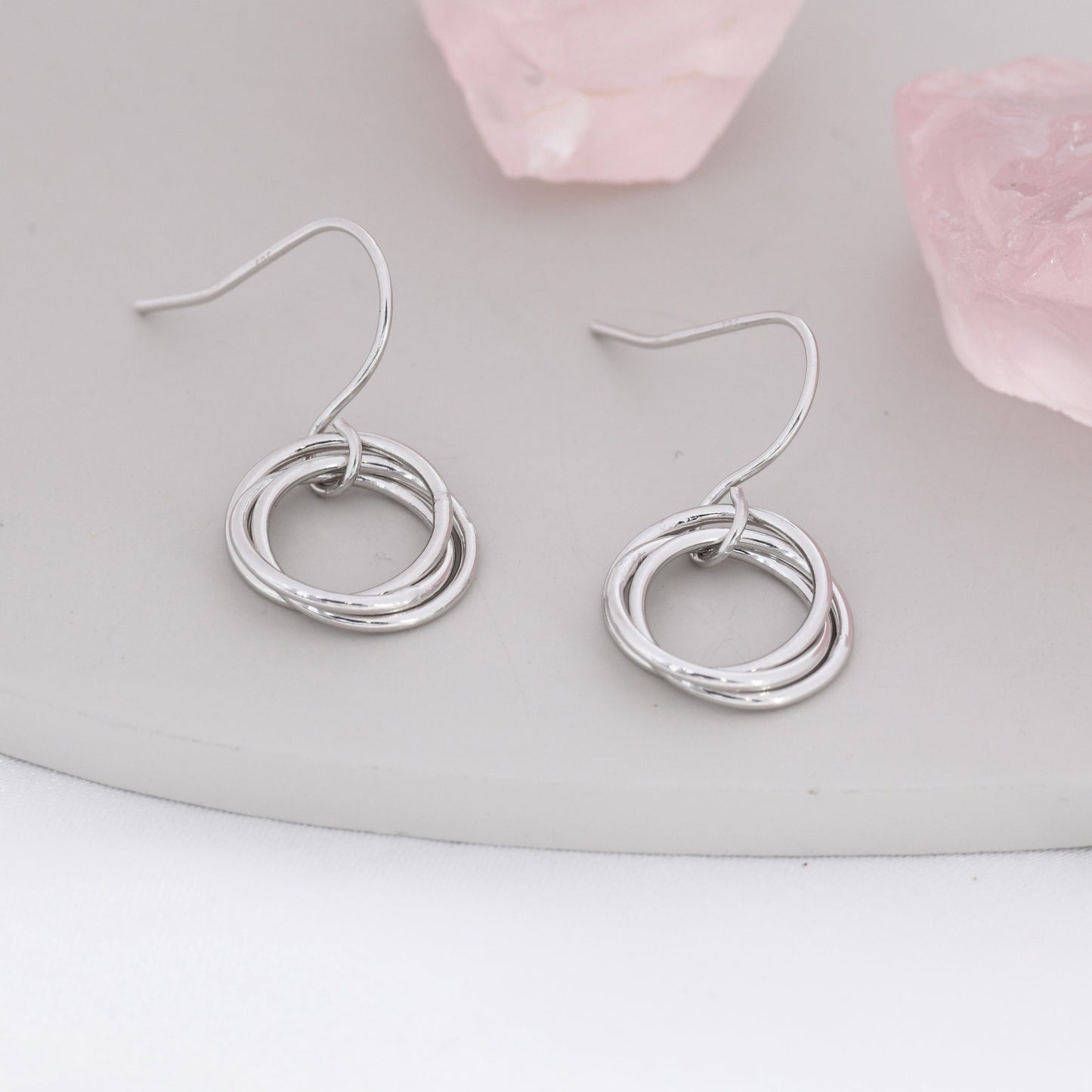 Interlinked Rings Drop Earrings in Sterling Silver, Also with Gold Finish or Rose Gold Finish, Minimalist Knot Dangle Earrings