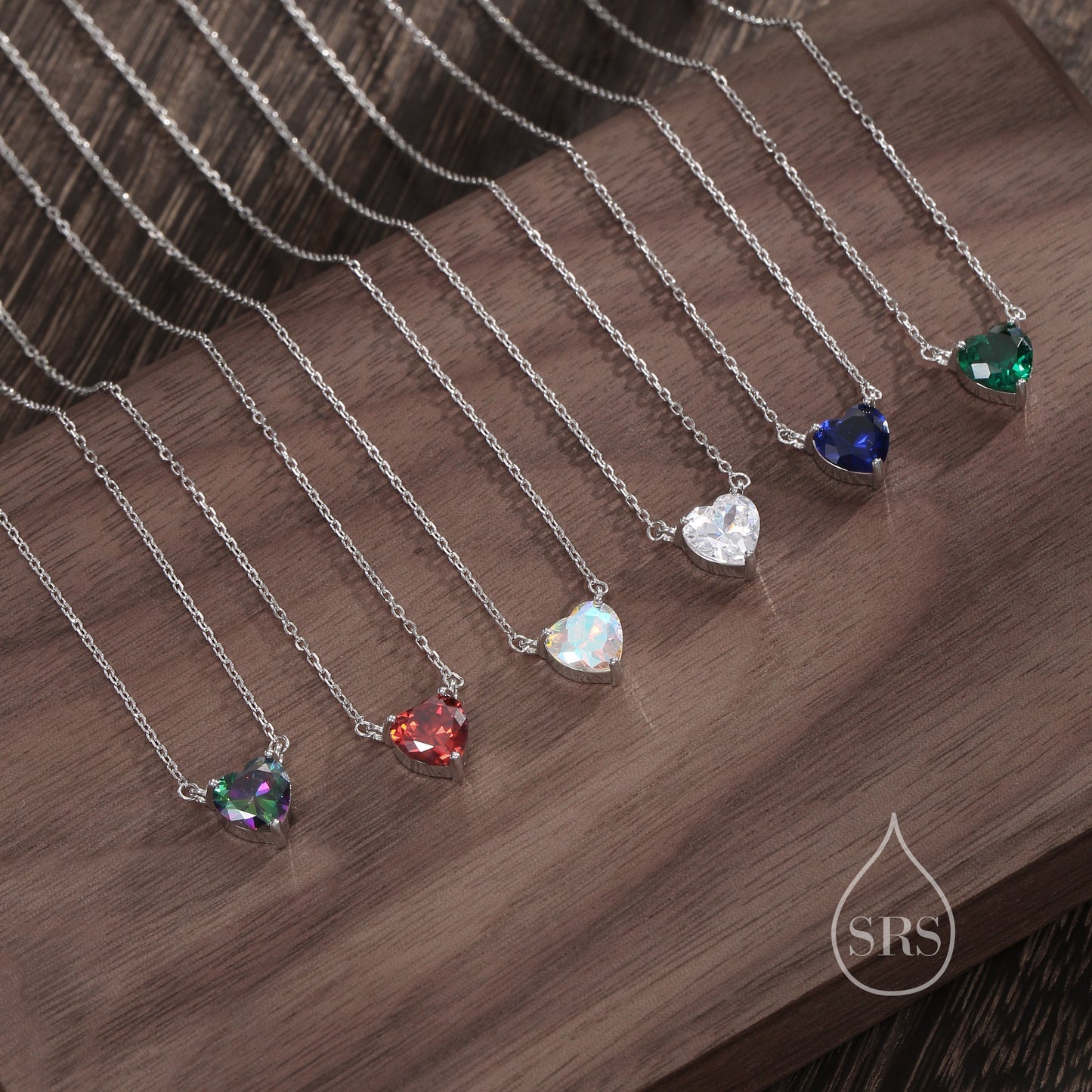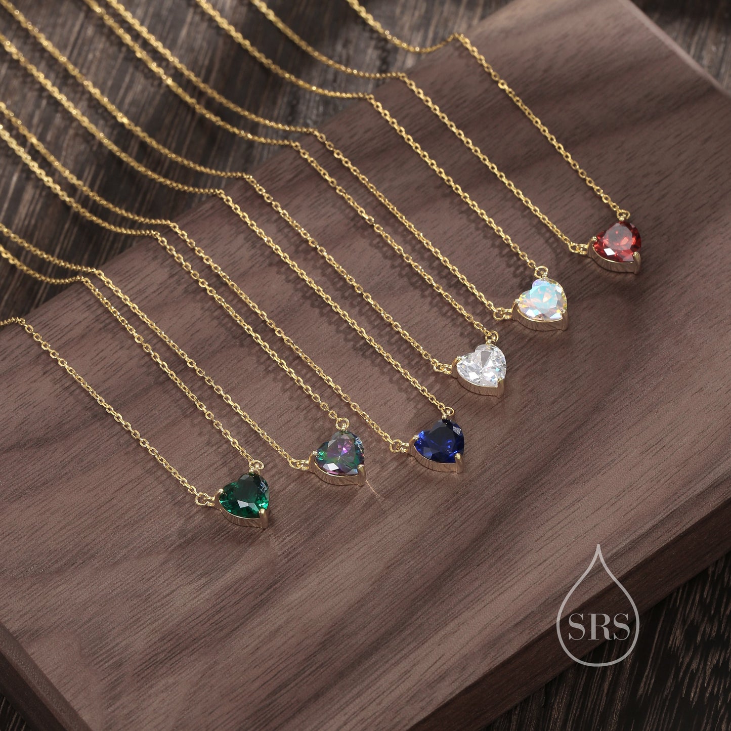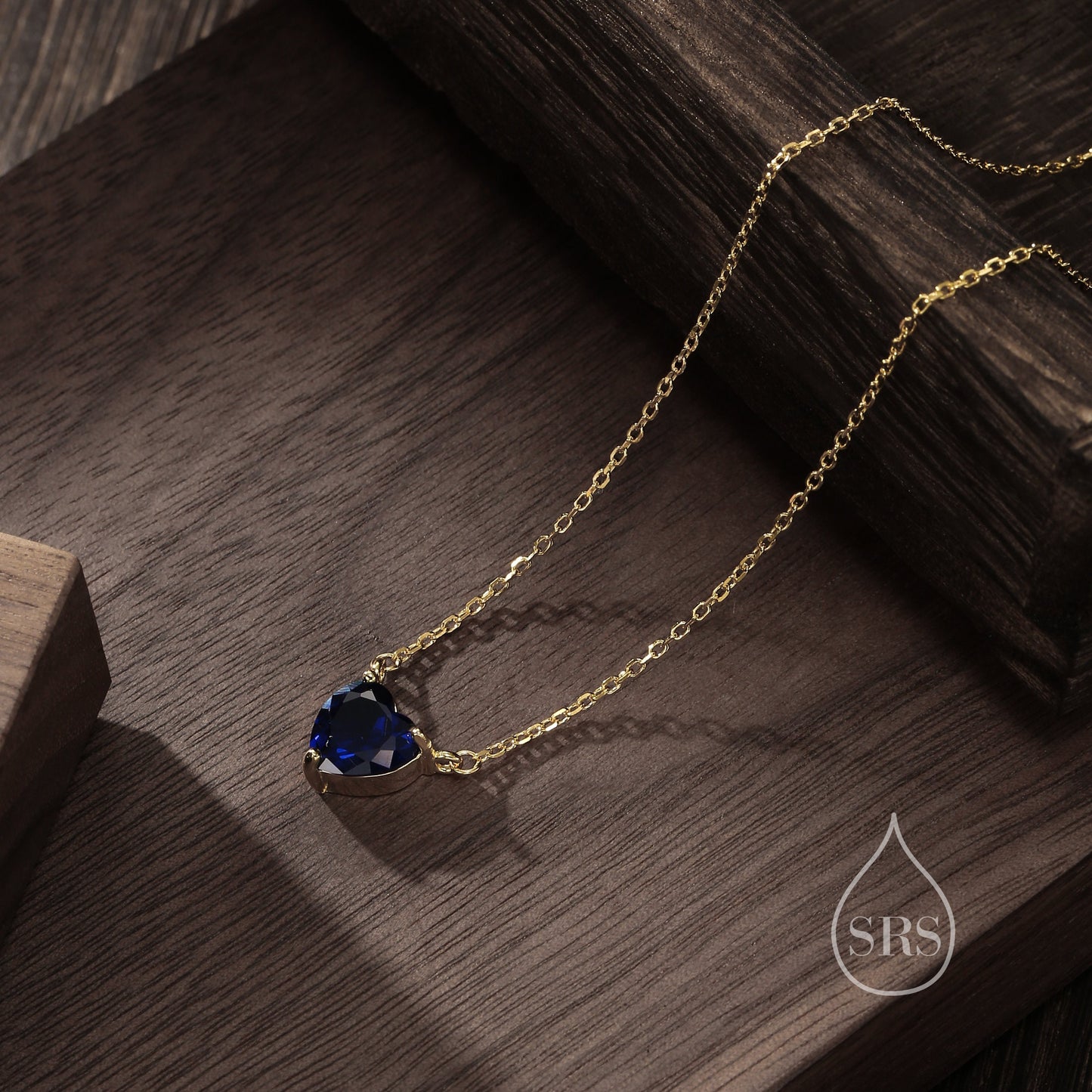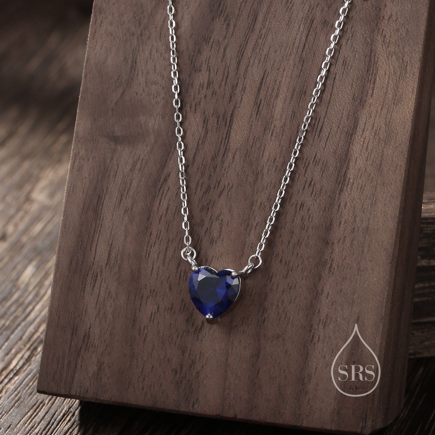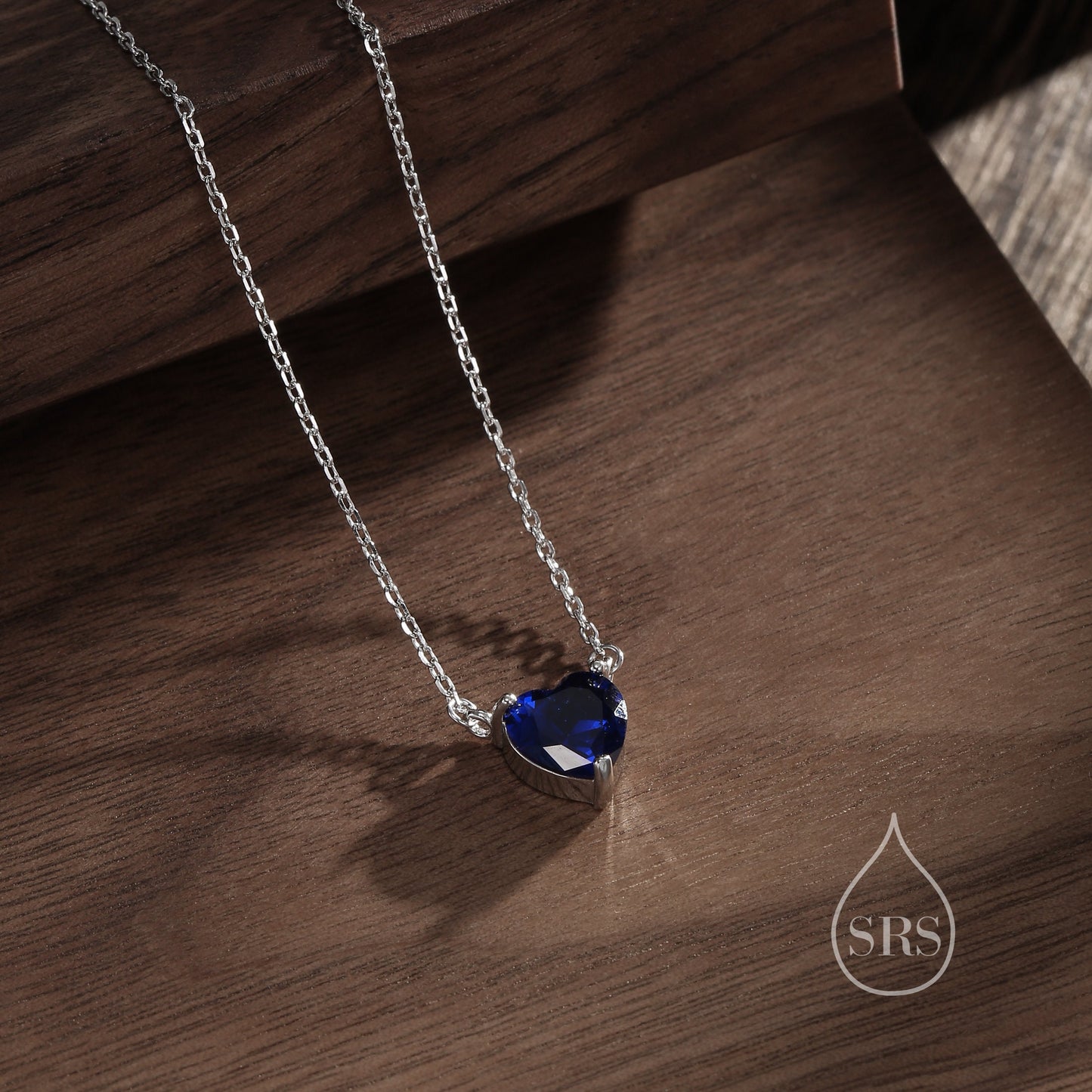 Sapphire Blue CZ Heart Pendant Necklace in Sterling Silver, Silver or Gold, Heart Necklace, Sparkly CZ Necklace