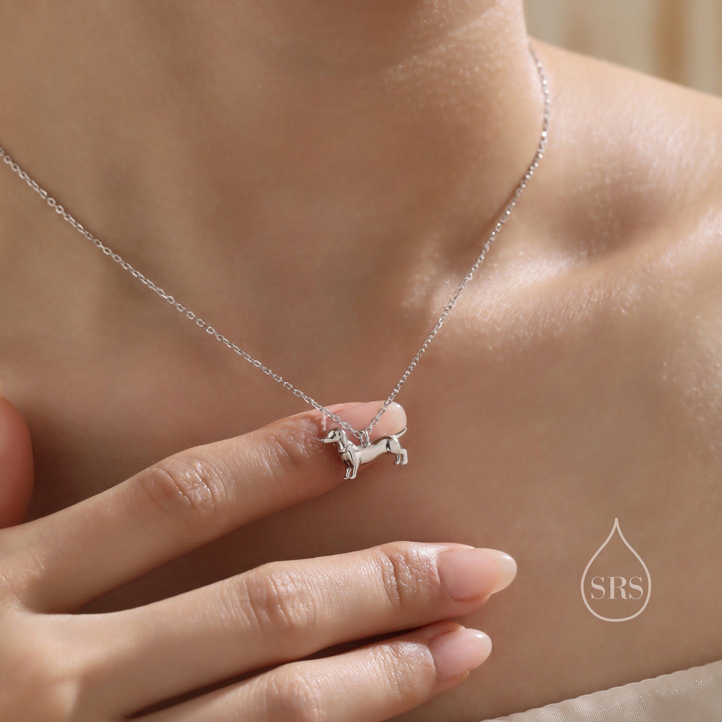 Sausage Dog Pendant Necklace in Sterling Silver, Silver or Gold or Rose Gold, Dachshund Necklace, Fun and Playful Jewellery, Pet Jewellery