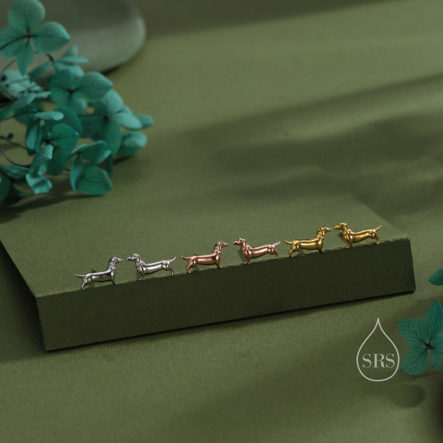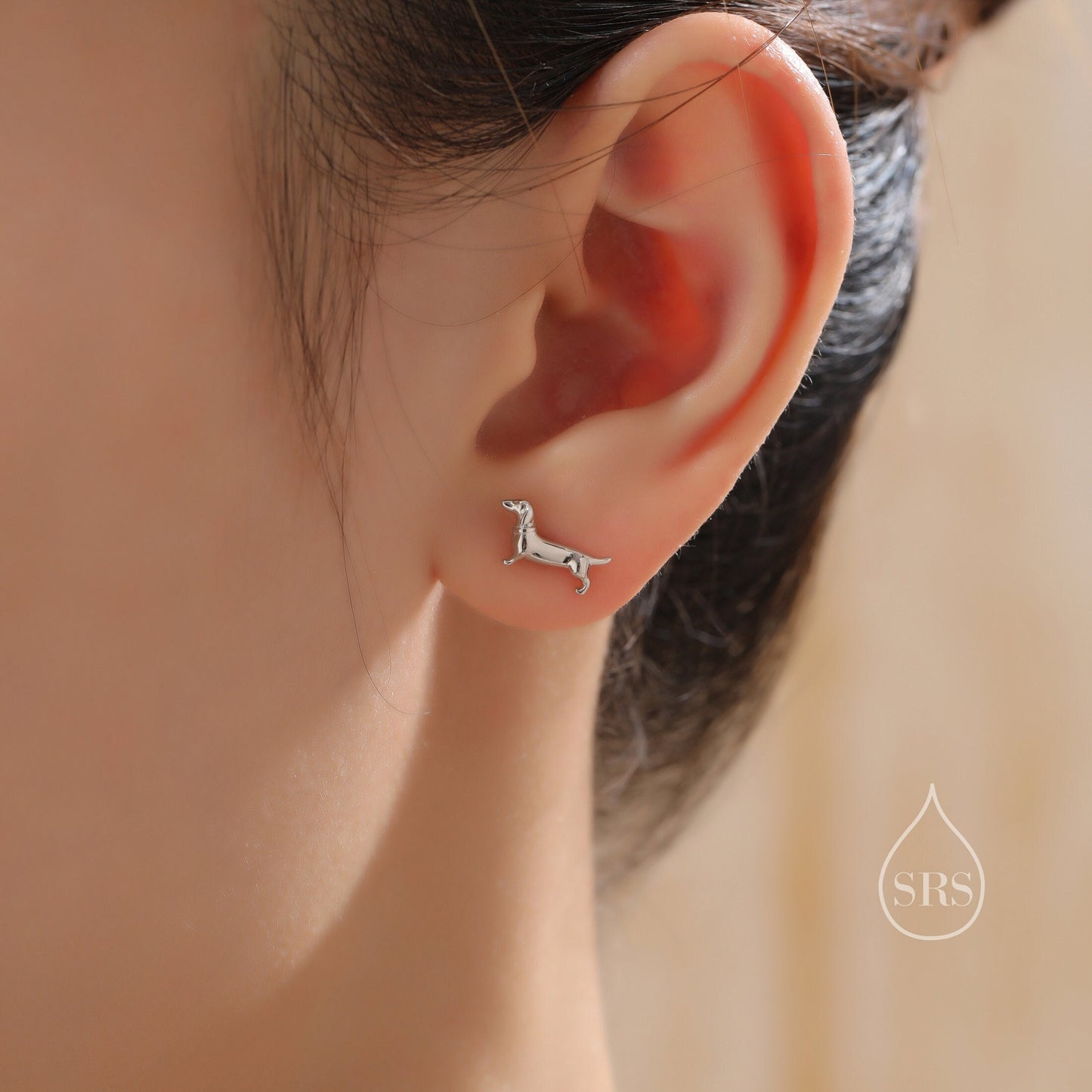 Sausage Dog Stud Earrings in Sterling Silver, Silver or Gold or Rose Gold, Small Dachshund Dog Earrings, Dog Earrings, Silver Dog Earrings