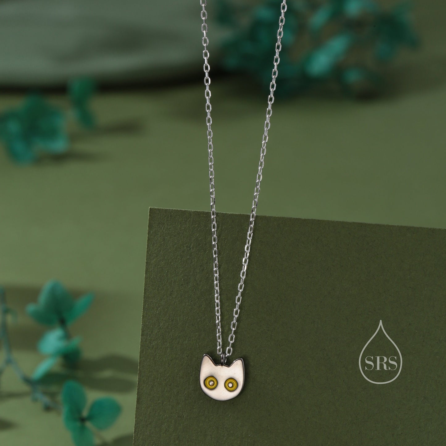 Schrodinger‘s Cat Double Sided Pendant Necklace in Sterling Silver, Black Rhodium Coated Cat Necklace, Black Cat Pendant Necklace