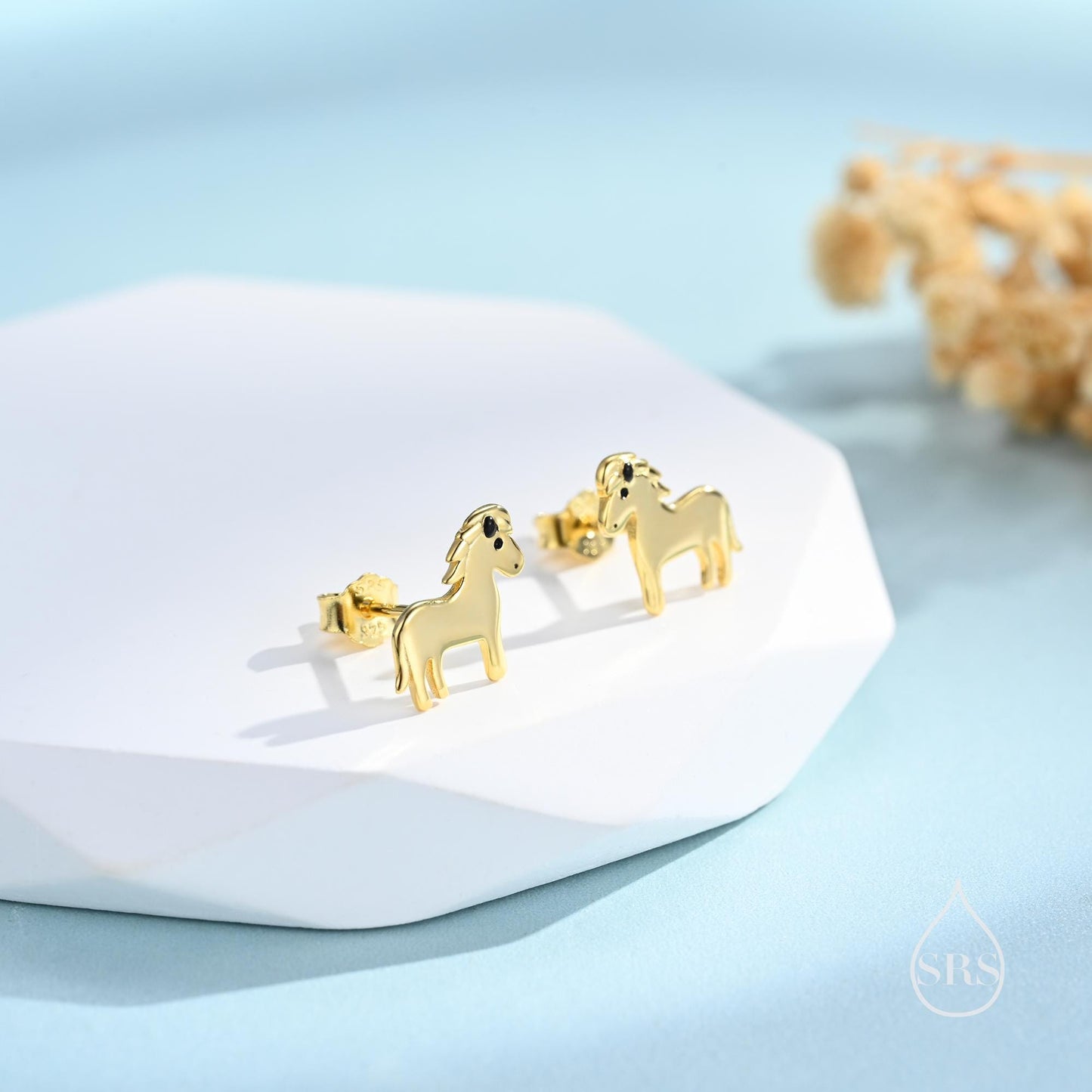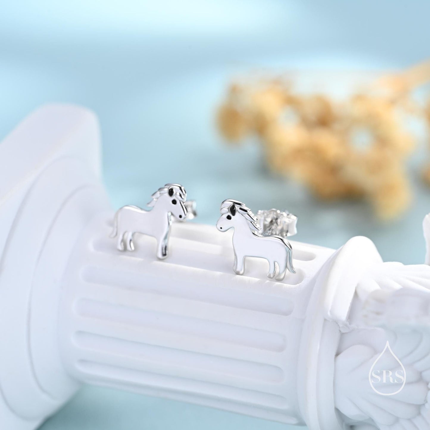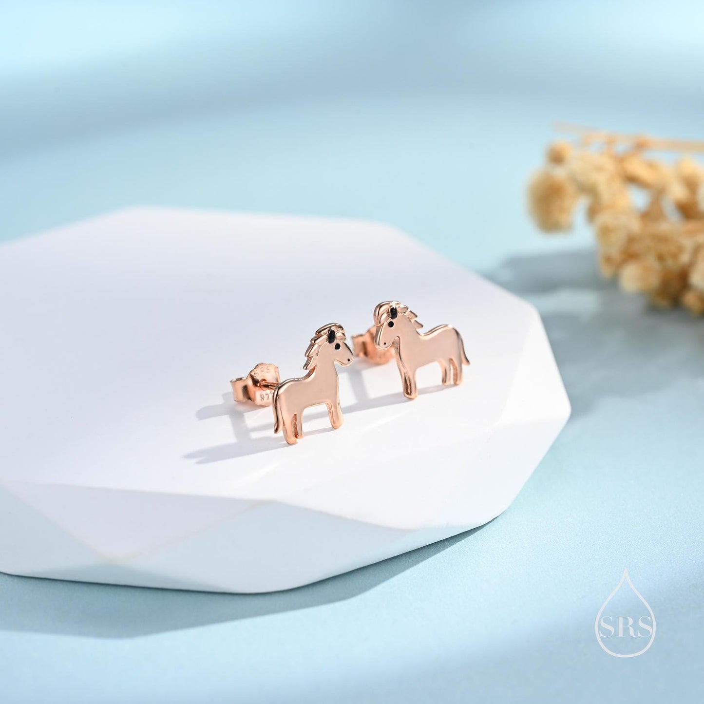 Shetland Pony Stud Earrings in Sterling Silver, Silver or Gold or Rose Gold, Sterling Silver Cute Baby Horse Earrings, Farm Earrings