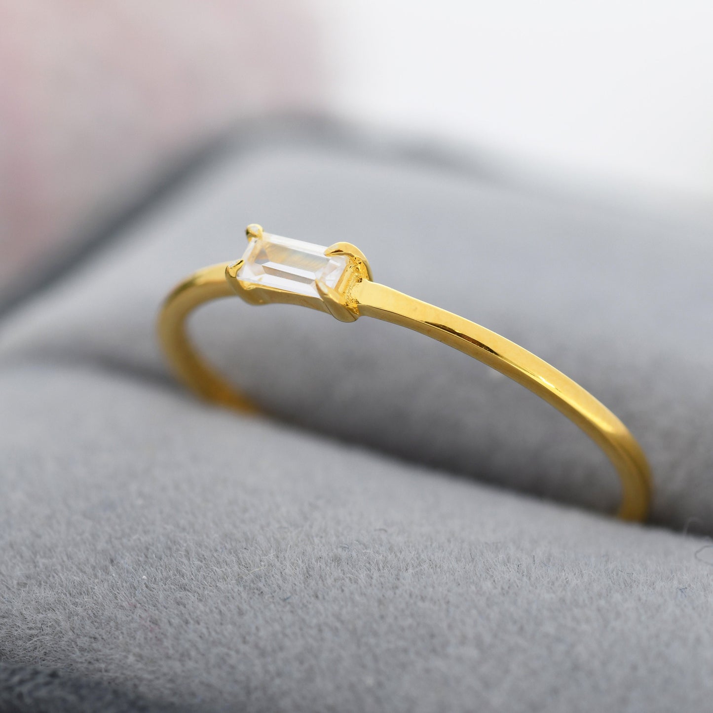 Single Baguette CZ Ring in Sterling Silver, Silver or Gold, 4 Pronged Set, Minimalist CZ Ring US 5 - 8