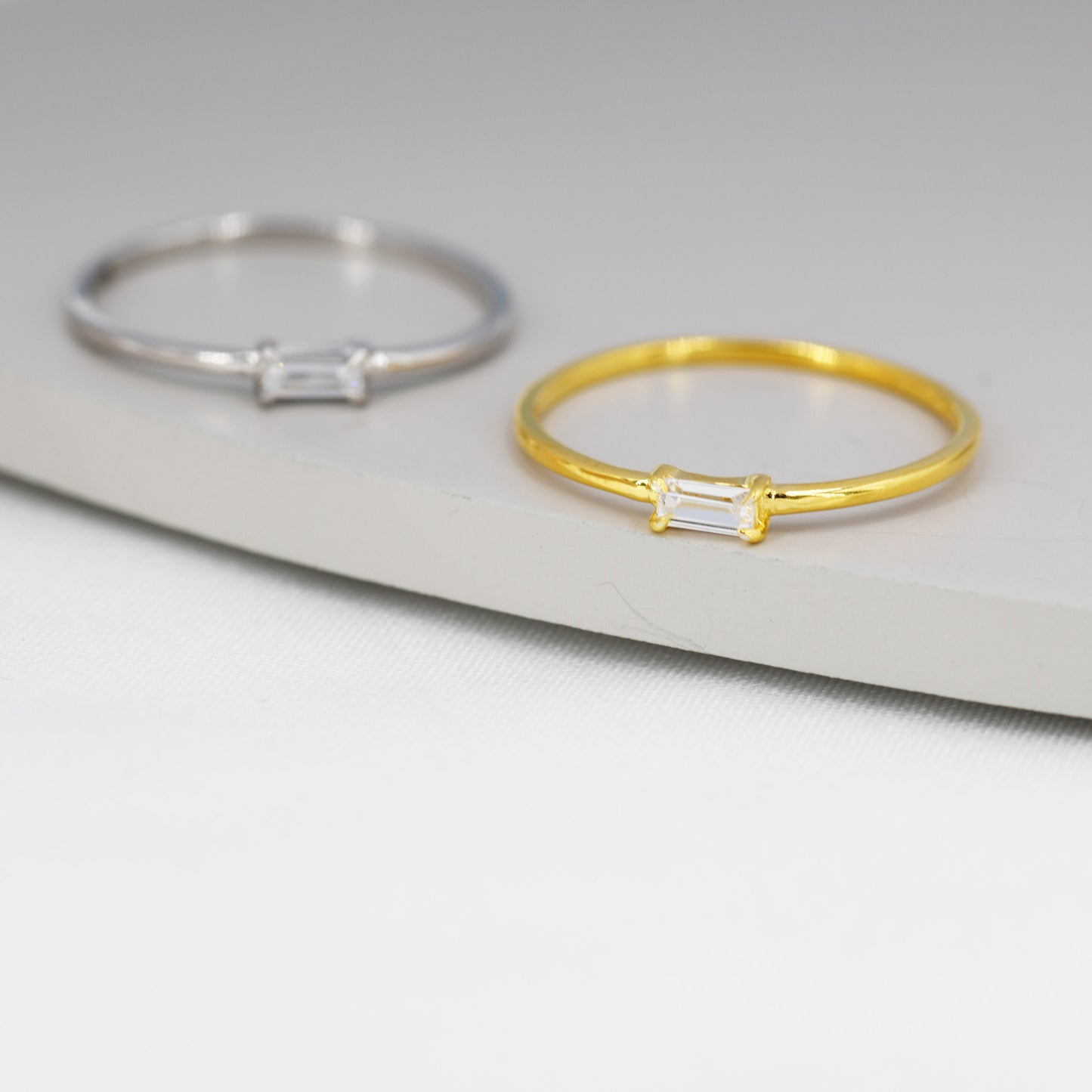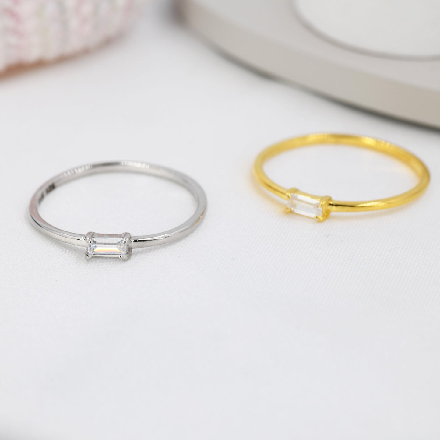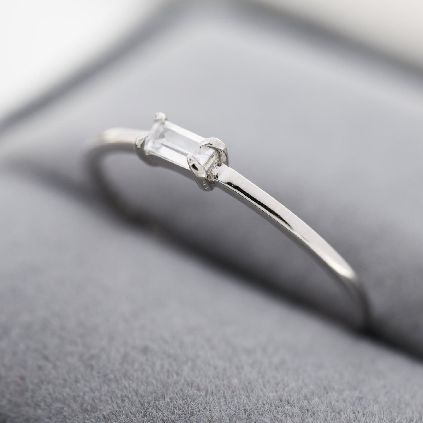 Single Baguette CZ Ring in Sterling Silver, Silver or Gold, Pronged Set, Minimalist CZ Ring US 5 - 8