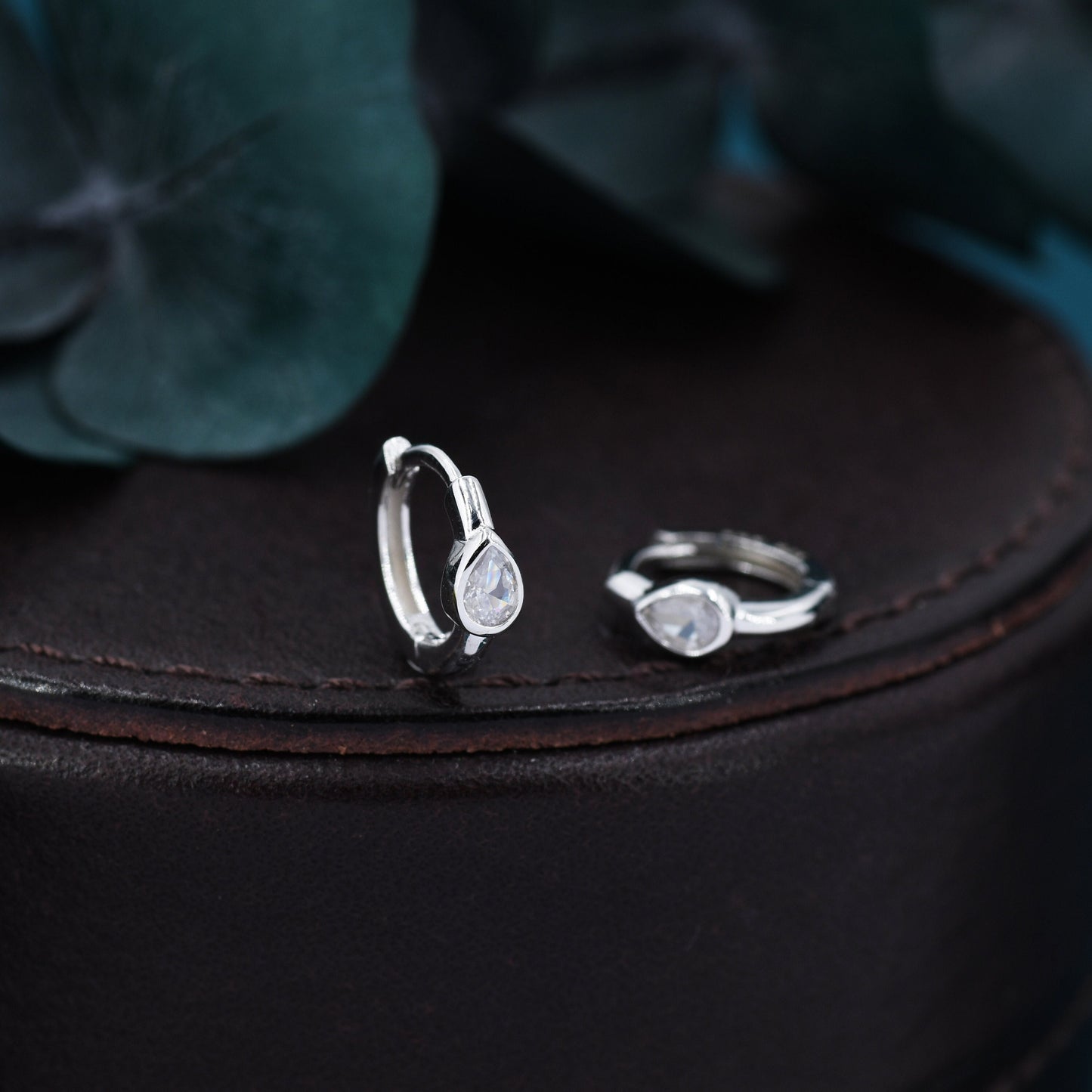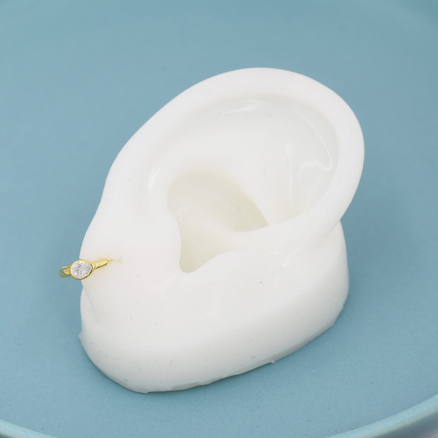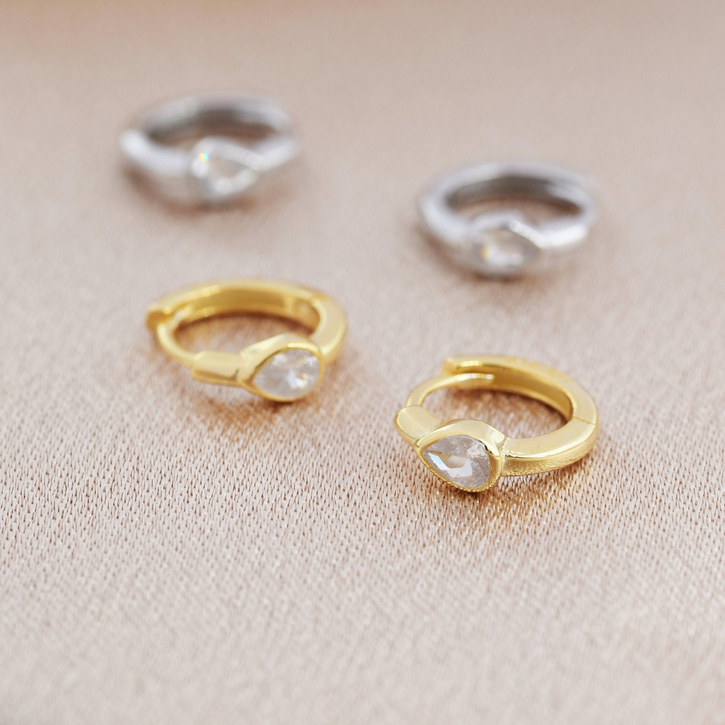 Single Pear Cut CZ Huggie Hoop in Sterling Silver, Silver or Gold, Minimalist Simple CZ Hoop Earrings