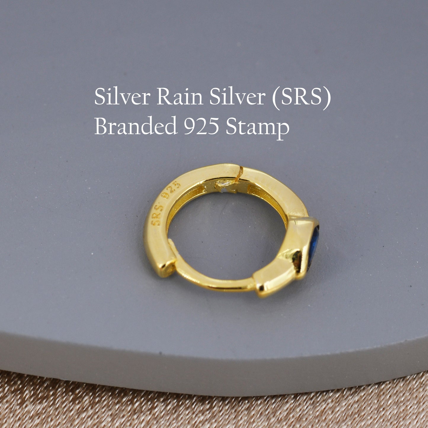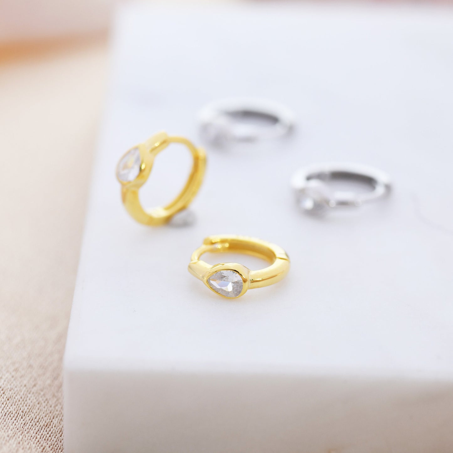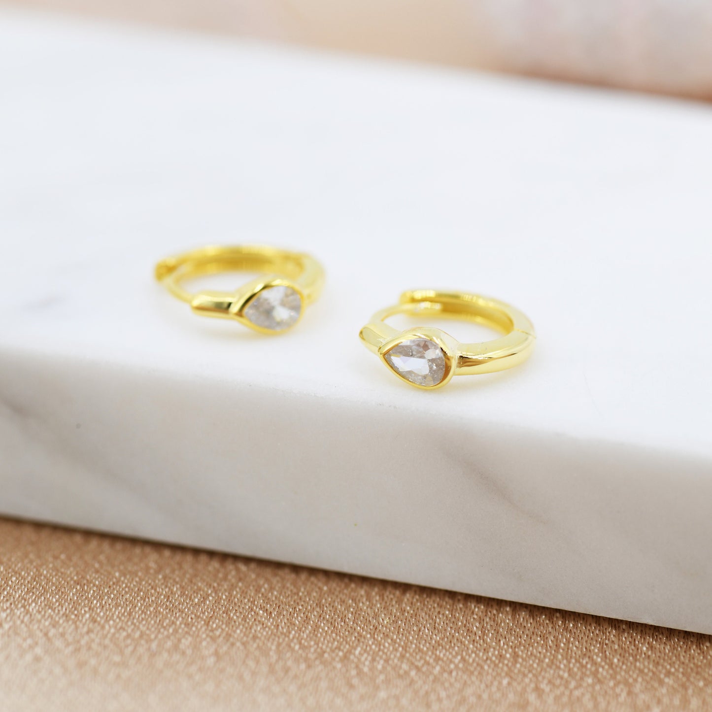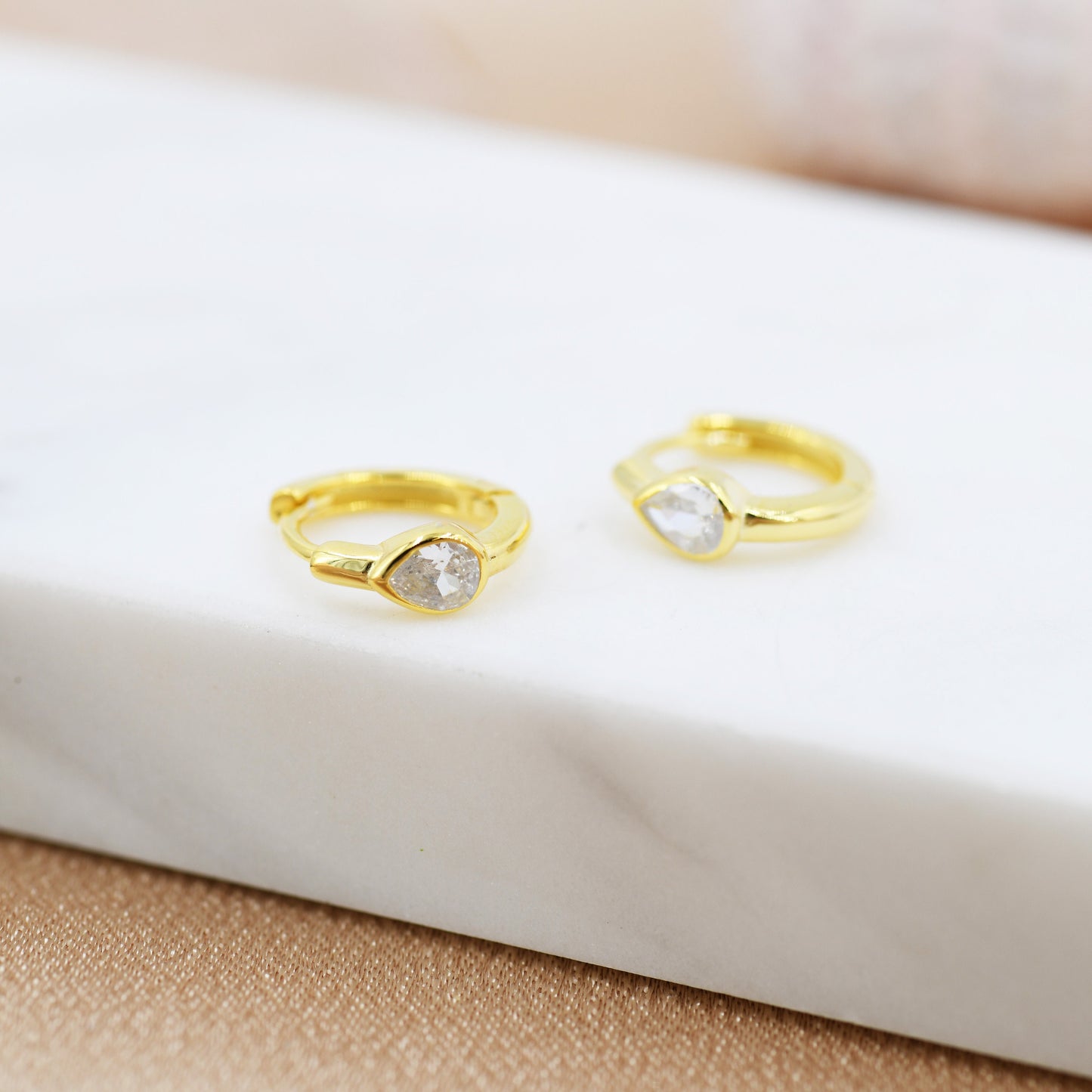 Single Pear Cut CZ Huggie Hoop in Sterling Silver, Silver or Gold, Minimalist Simple CZ Hoop Earrings