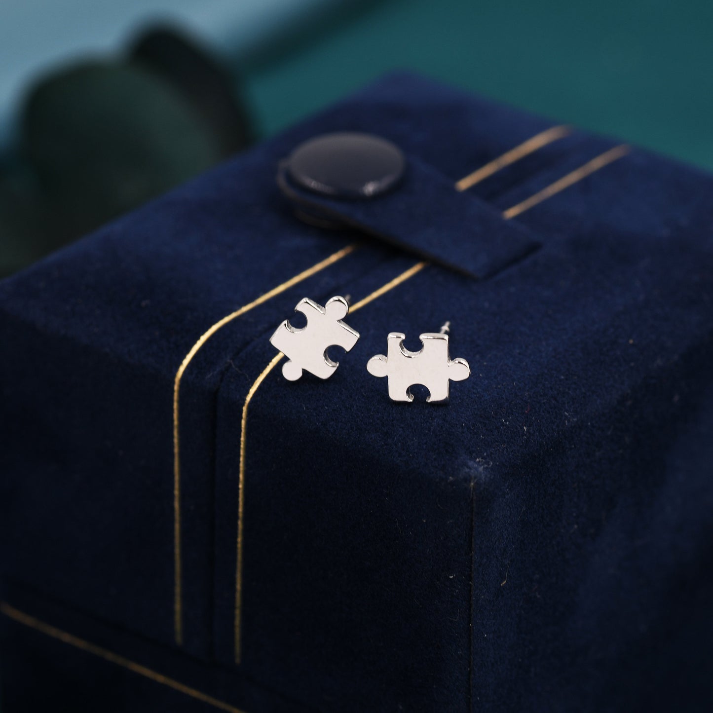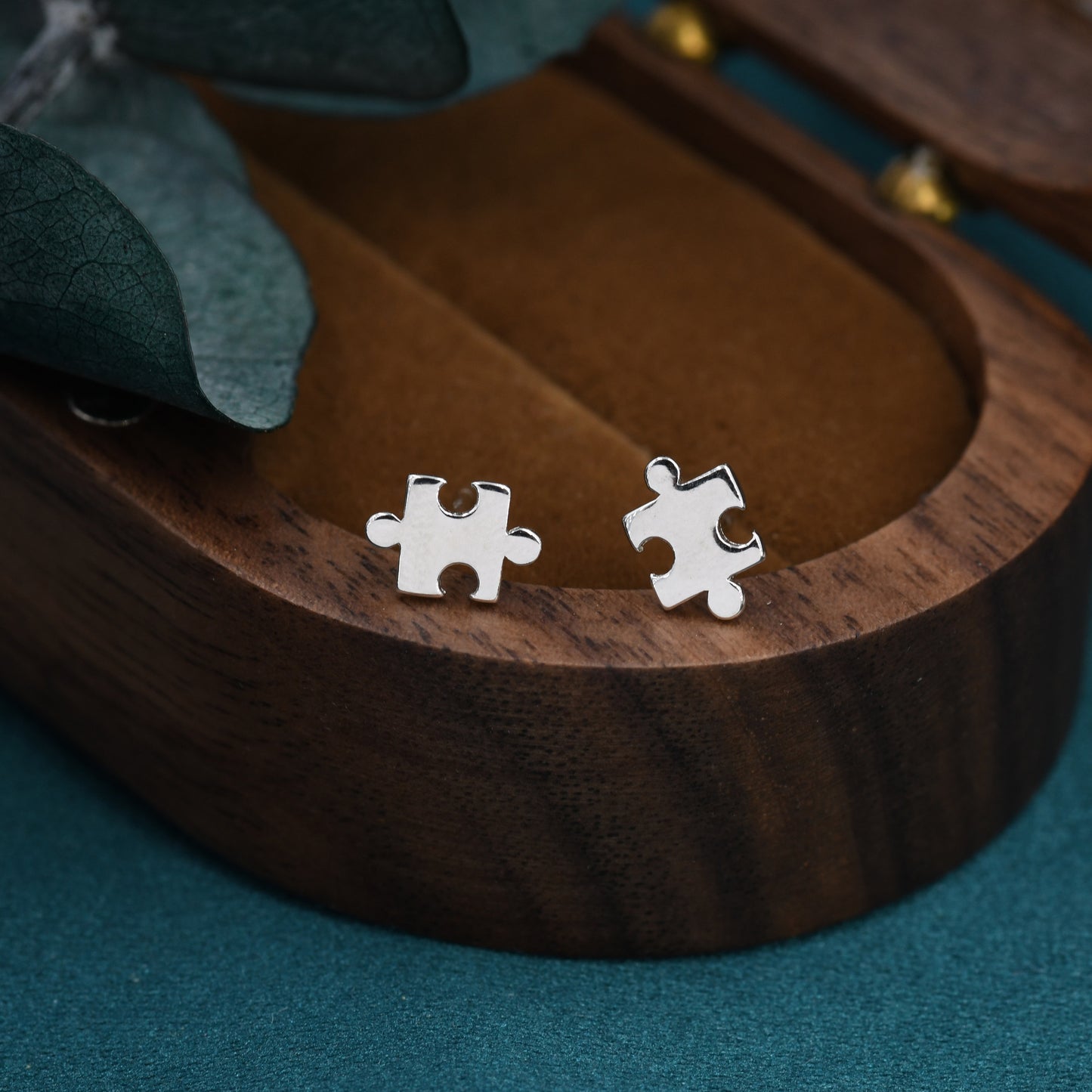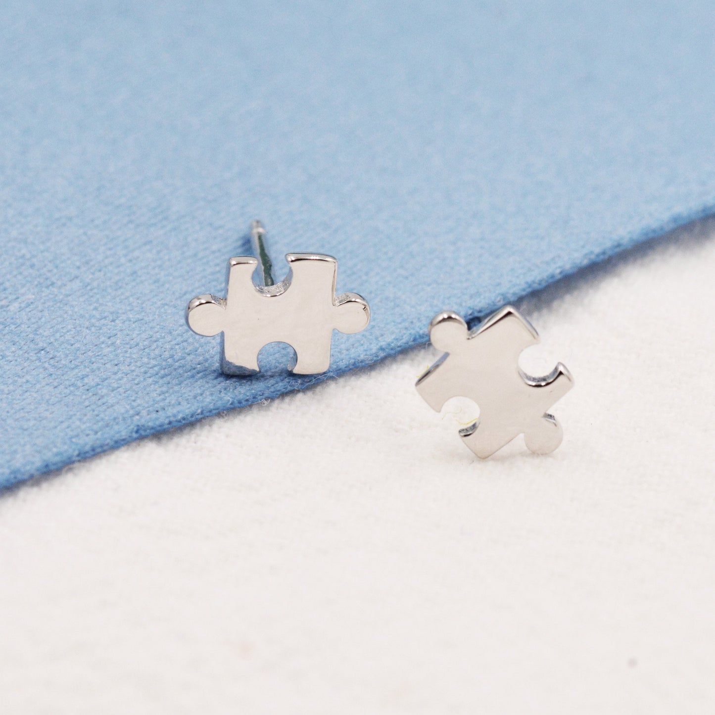 Small Jigsaw Stud Earrings in Sterling Silver, Silver Jigsaw Piece Earrings