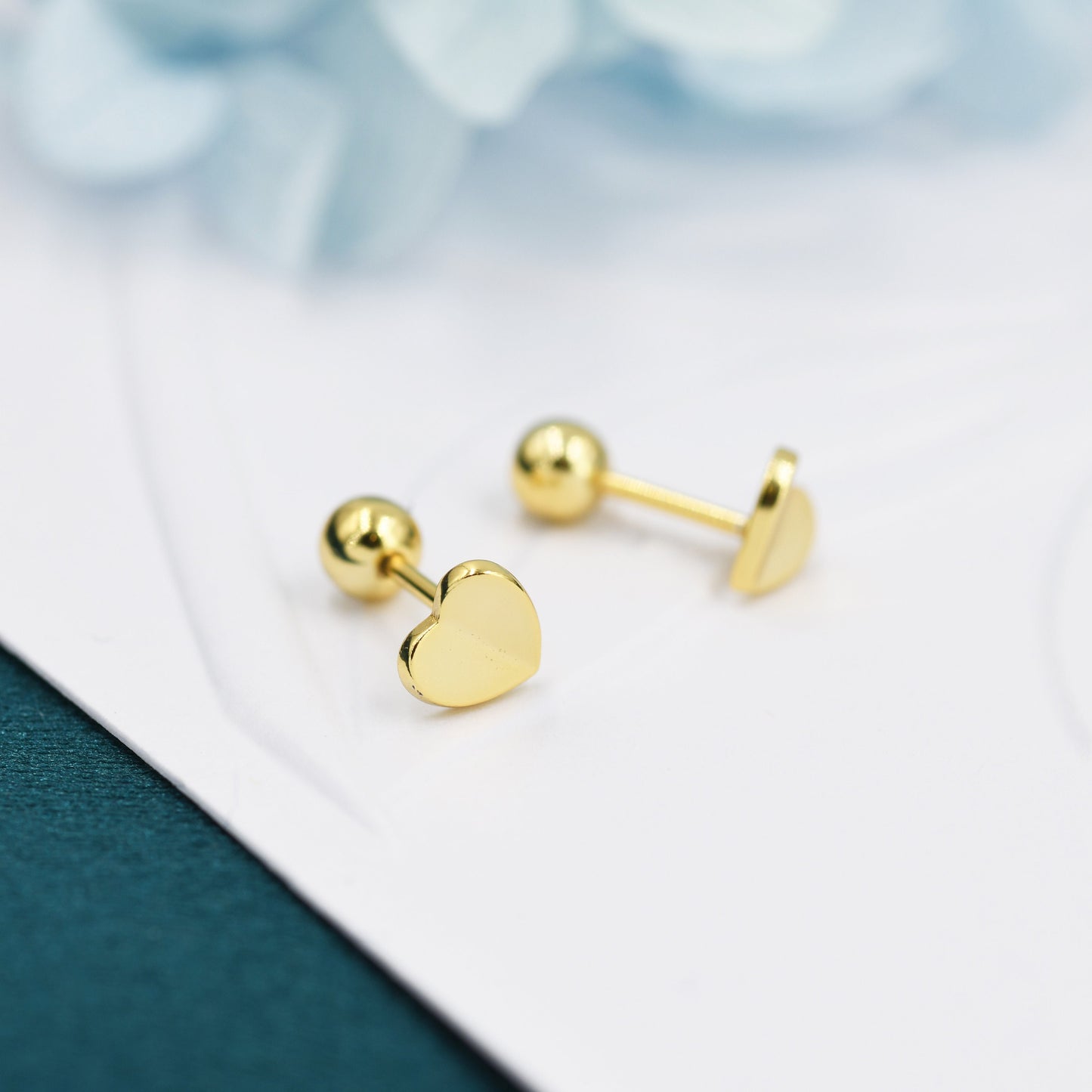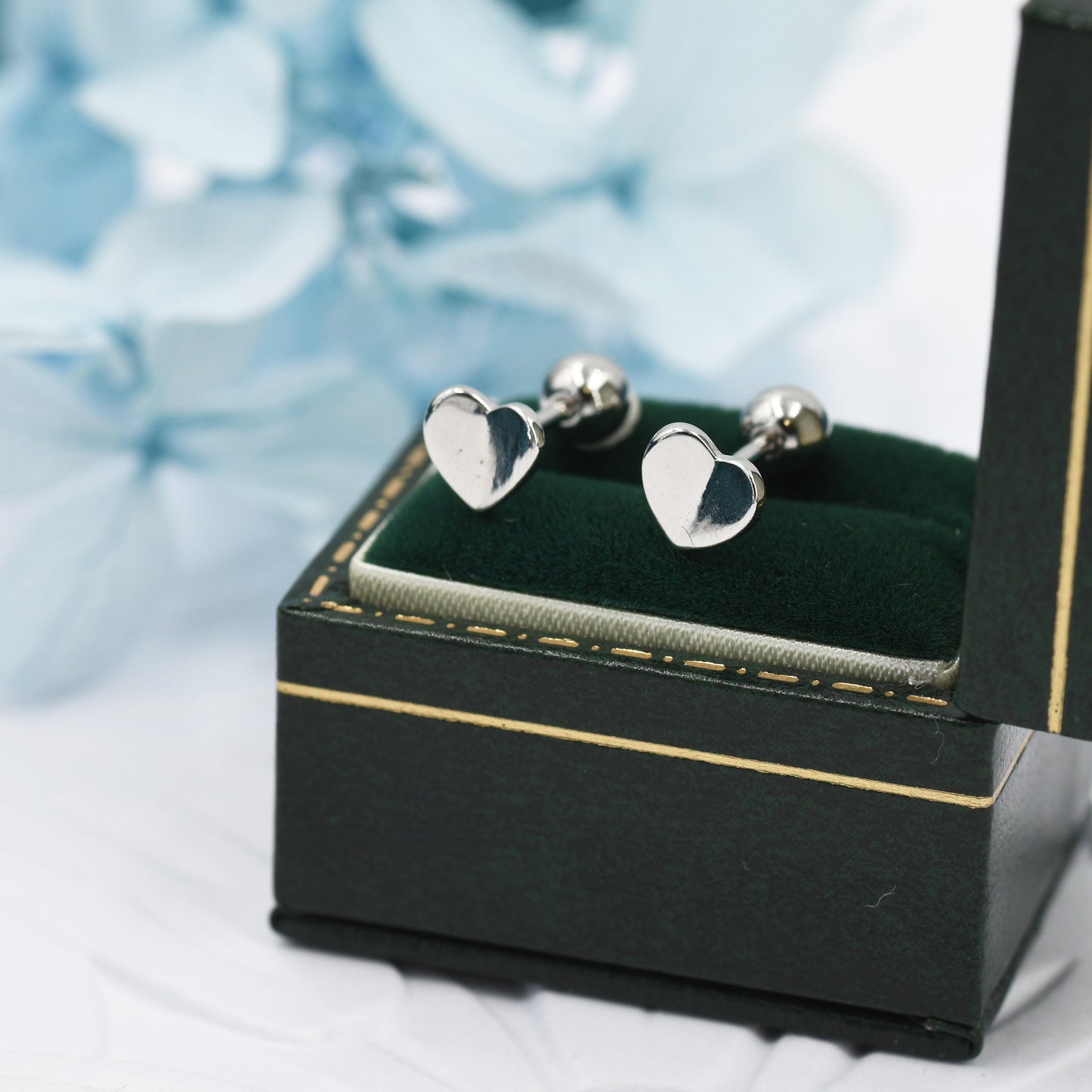 Small Pair of Folded Heart Stud Earrings in Sterling Silver, Rose Gold, Silver, Screw Back Earrings - helix, cartilage, conch, tragus