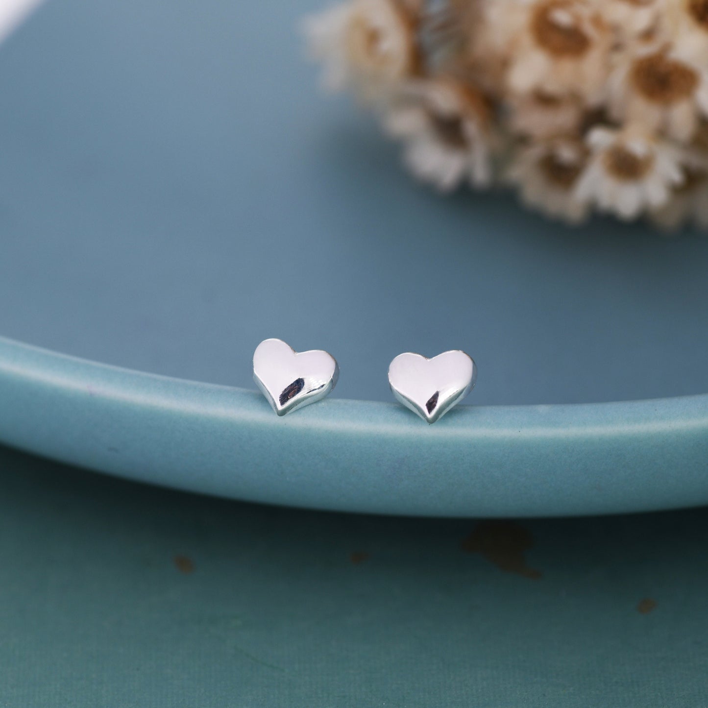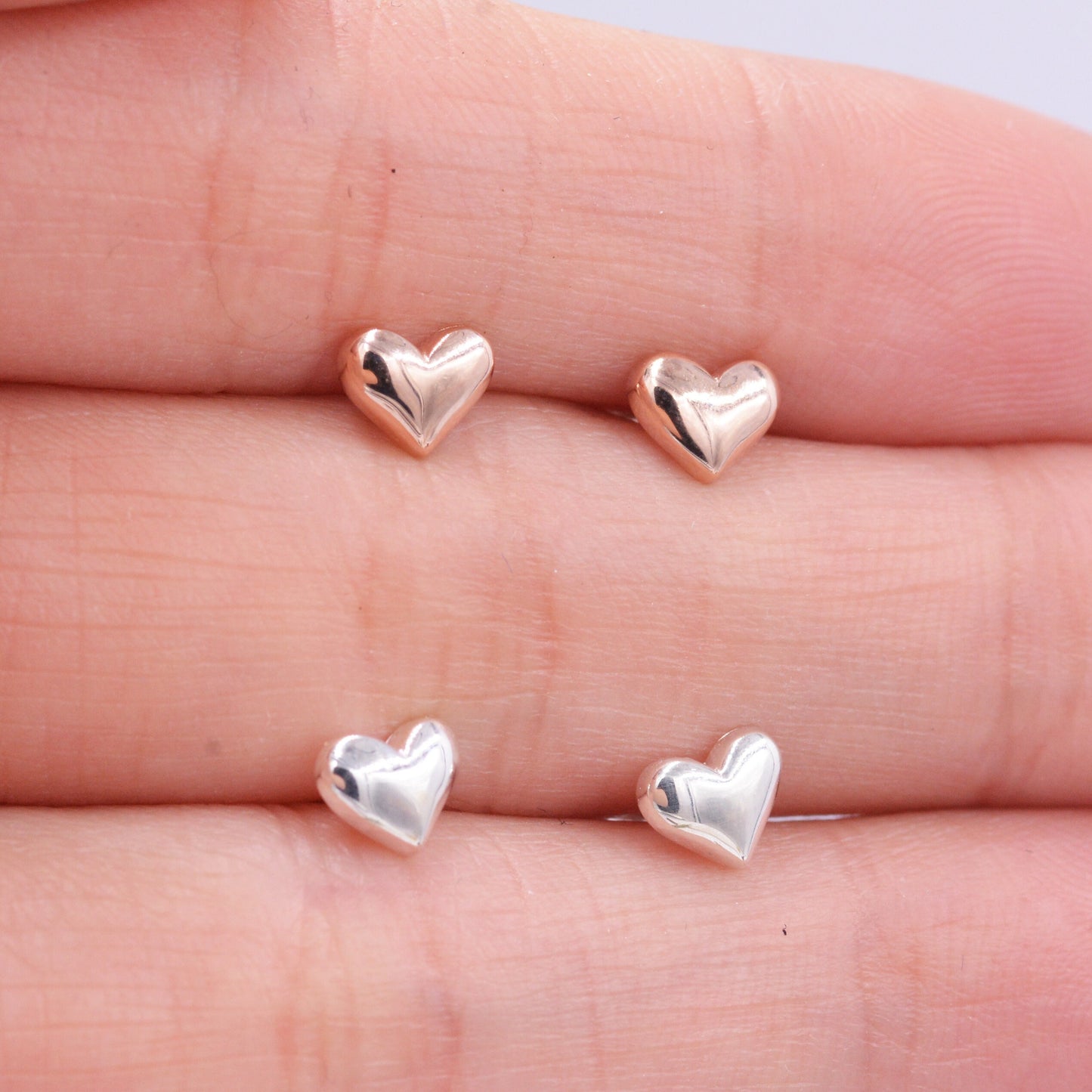 Tiny Pair of Heart Stud Earrings in Sterling Silver, Simple Stud, Silver and Rose Gold, Minimalist and Stylish