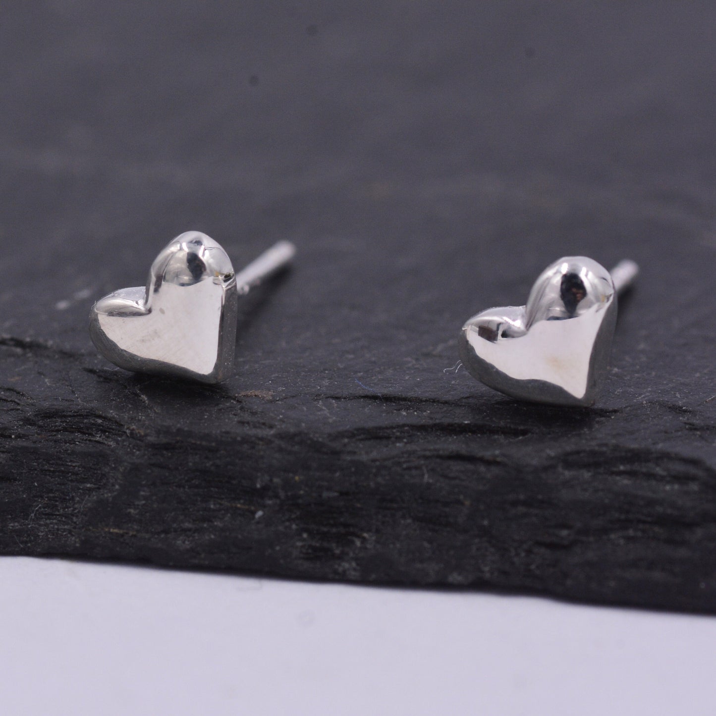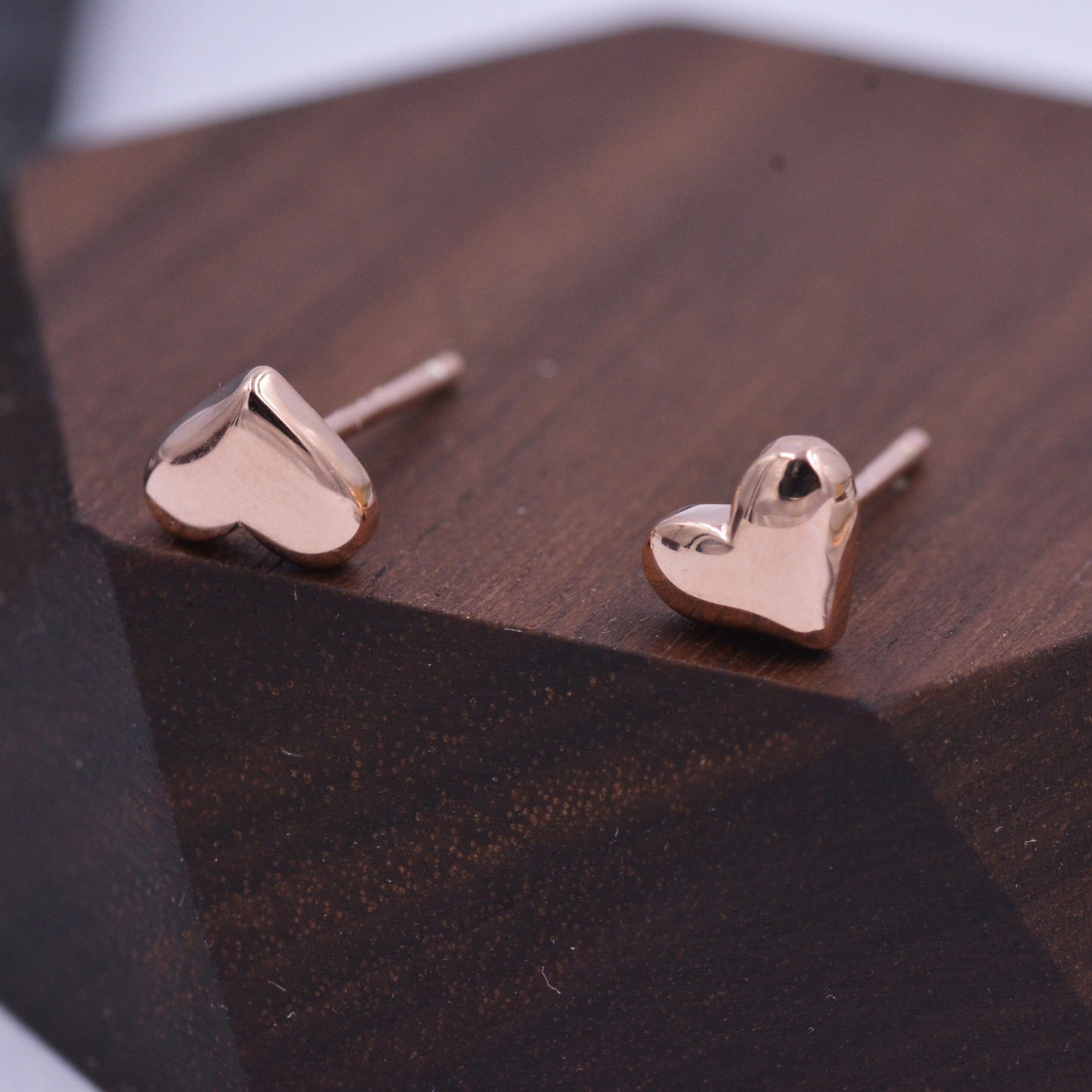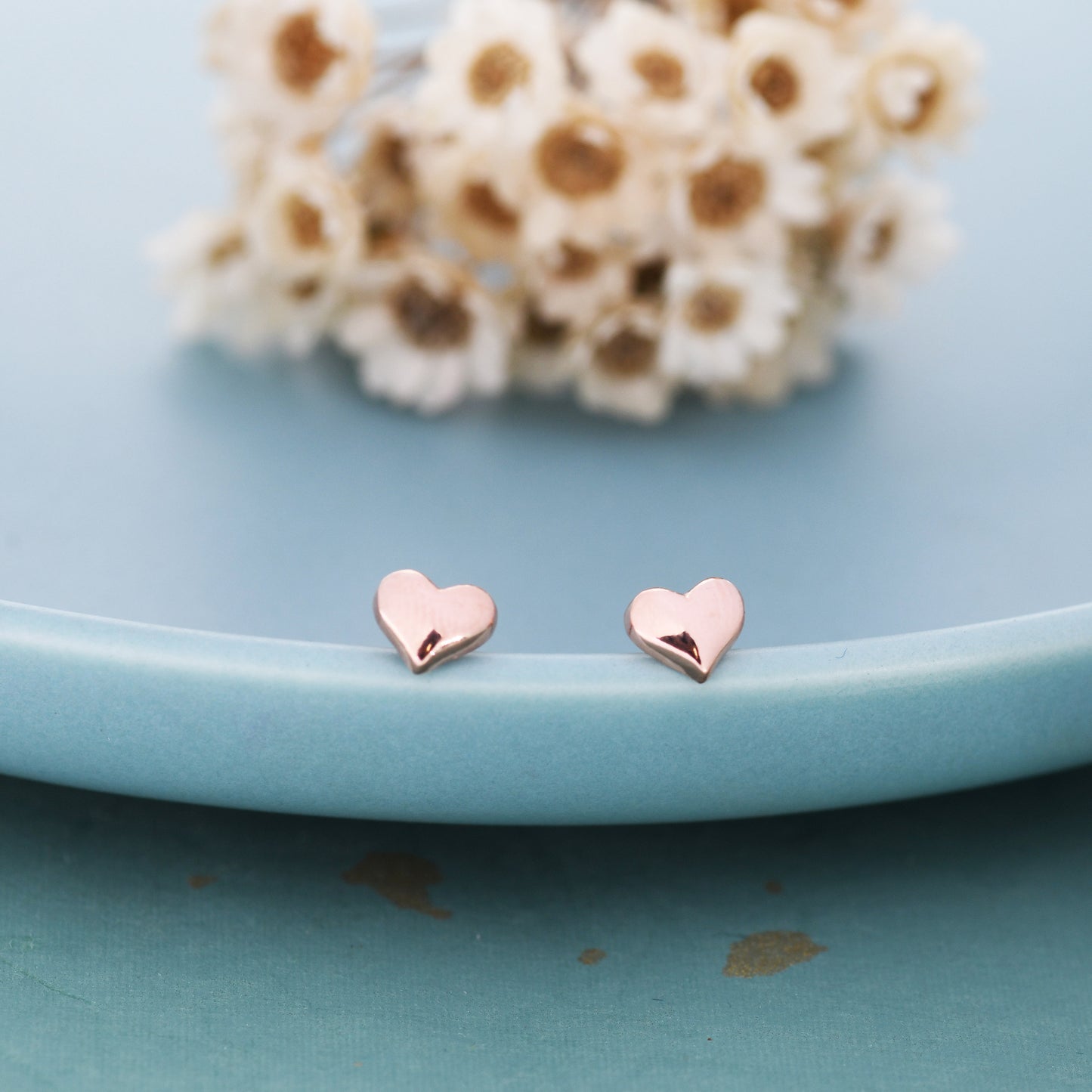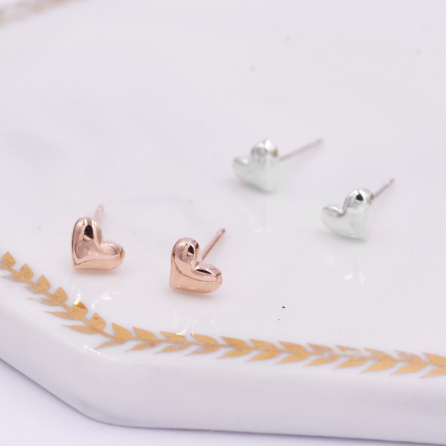 Small Pair of Heart Stud Earrings in Sterling Silver, Simple Stud, Silver and Rose Gold, Minimalist and Stylish.