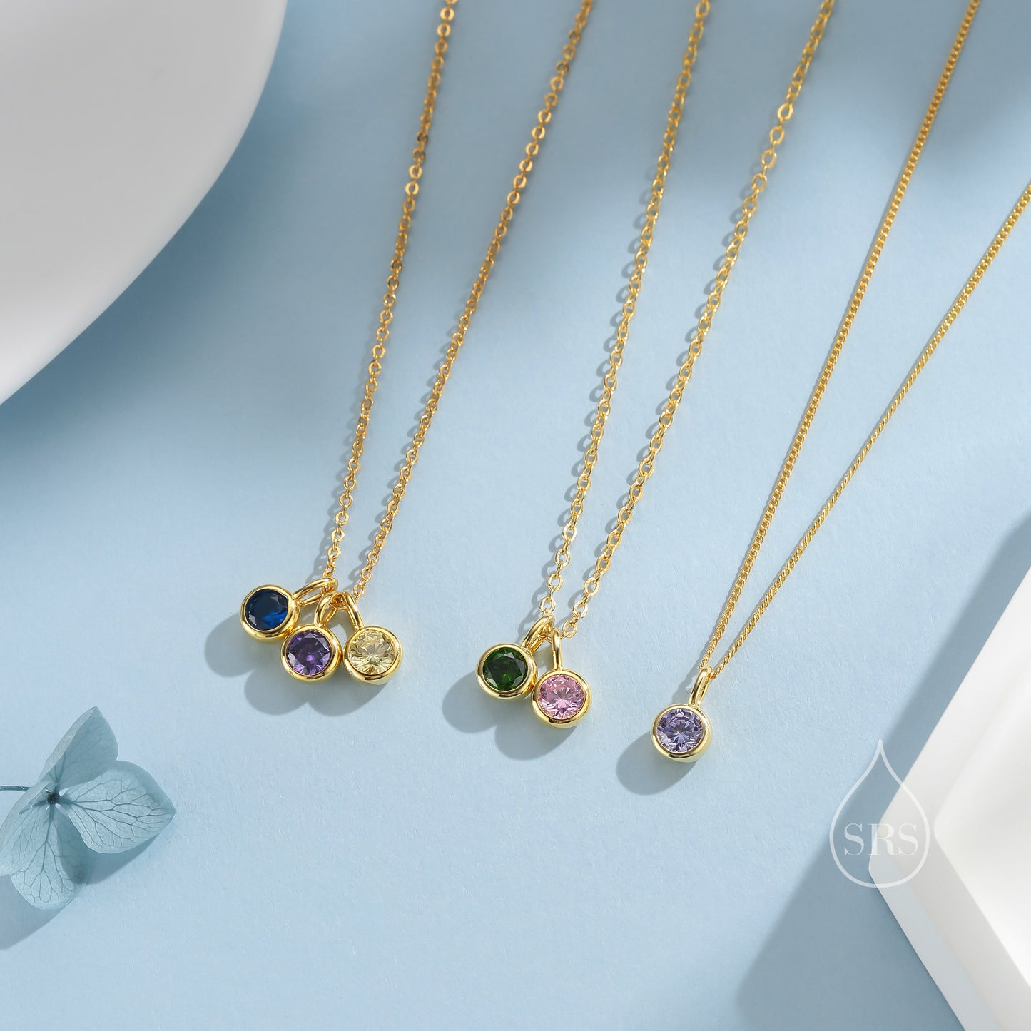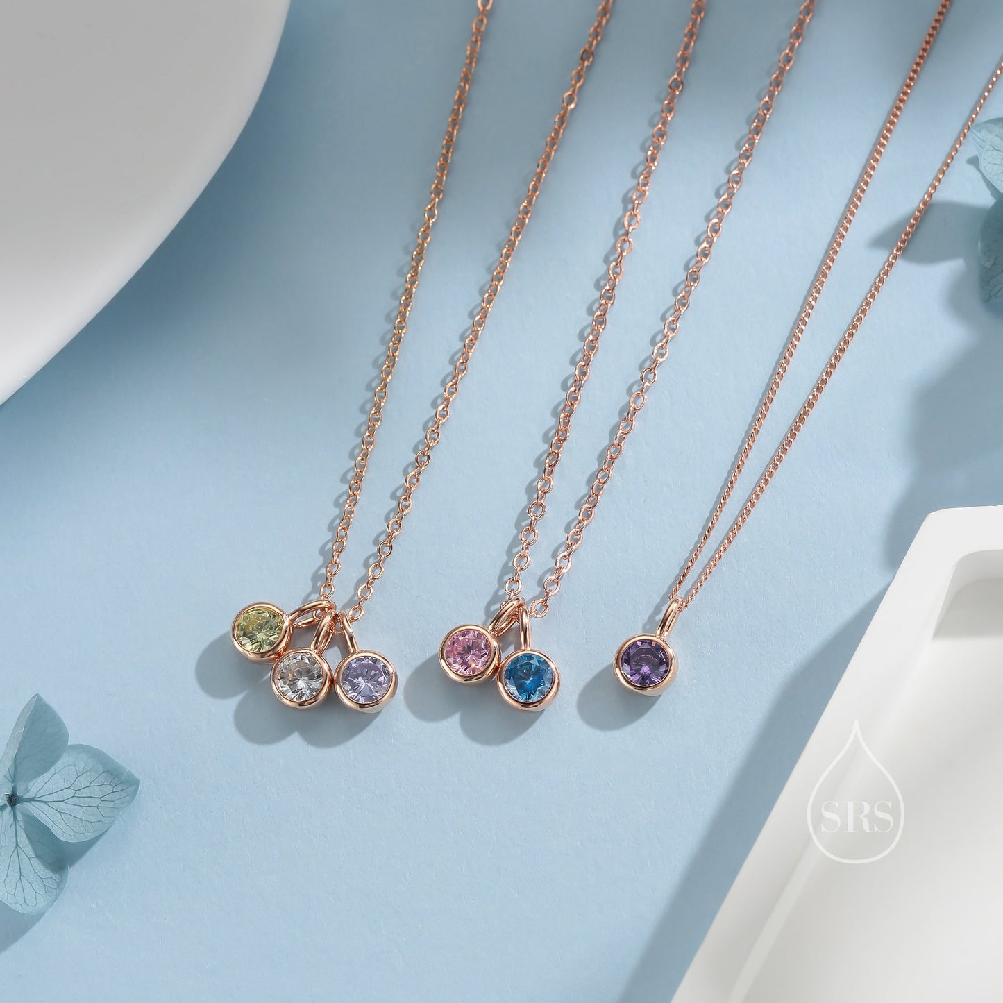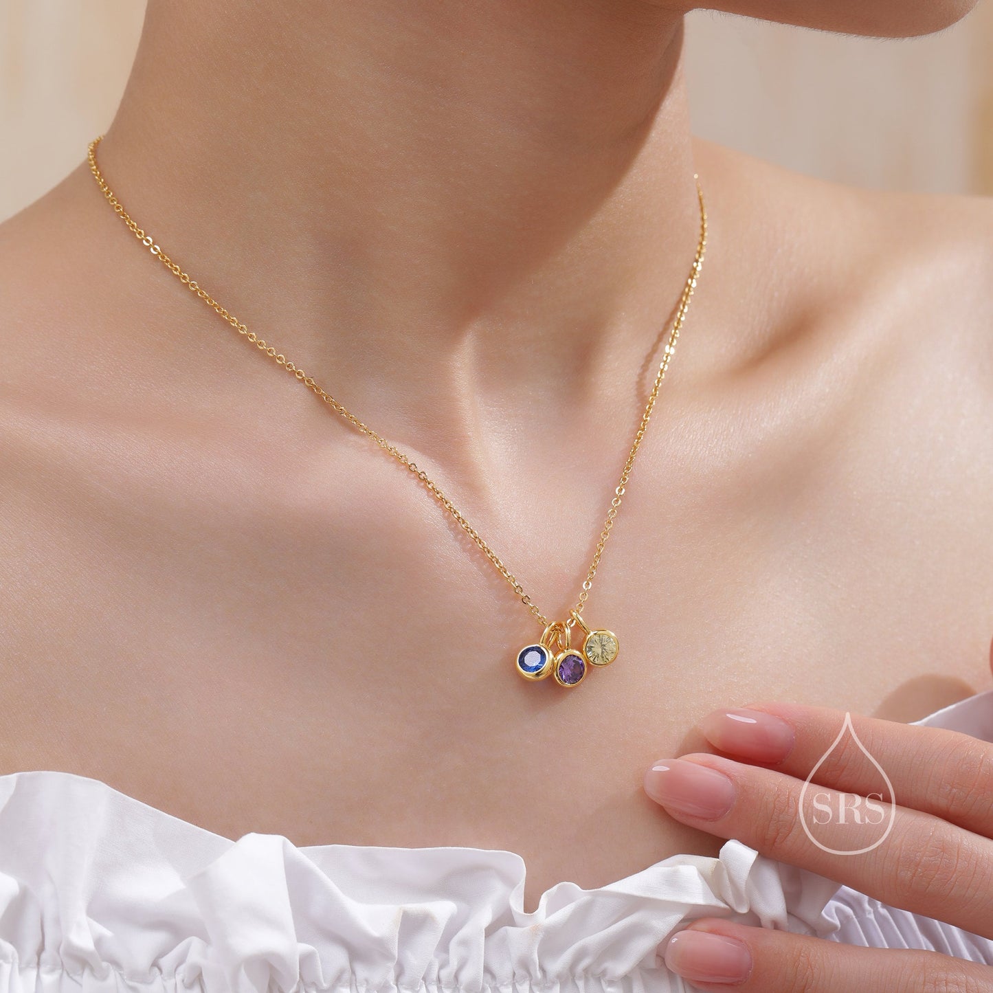 Sterling Silver Family Birthstone Charms, Birthstone Silver Charms, Round CZ Birthstone Charms for Necklaces