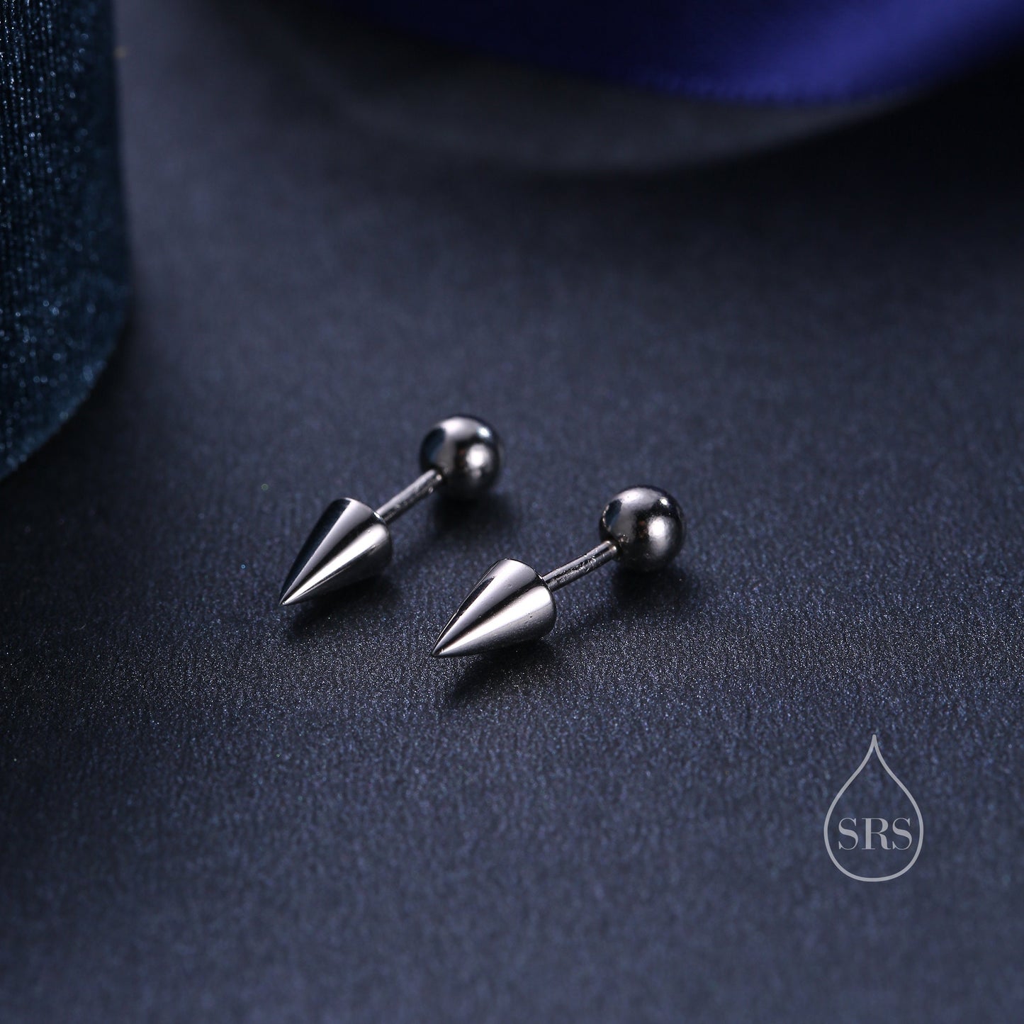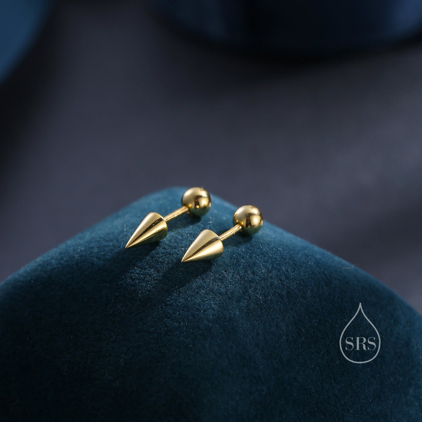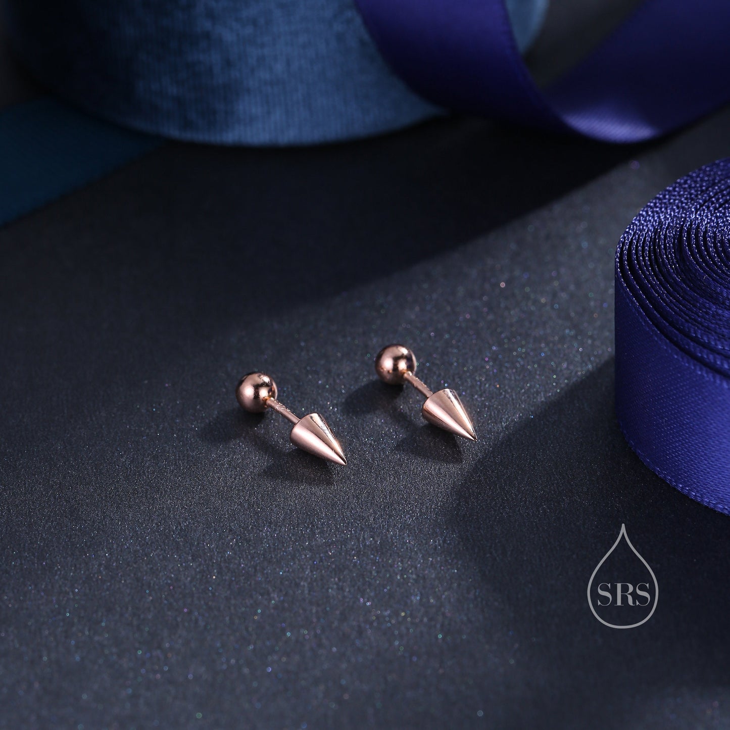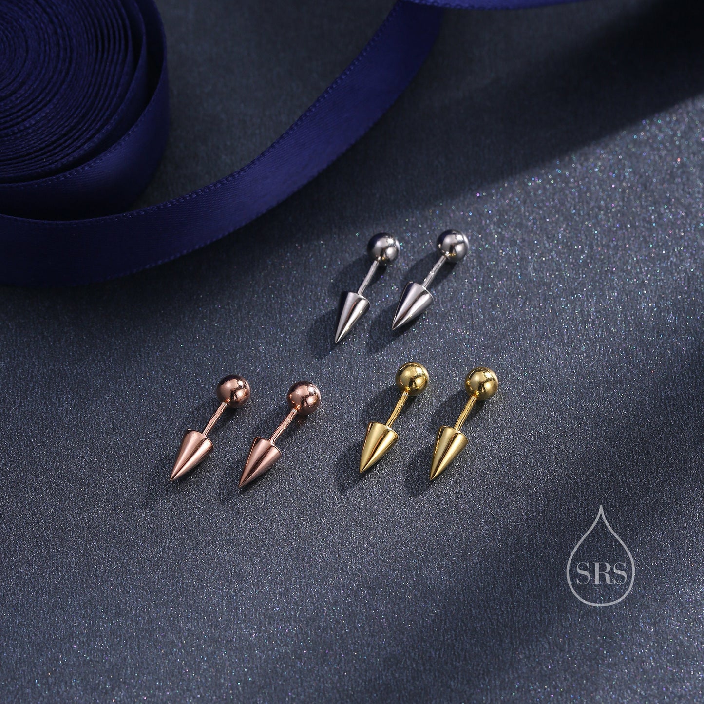 Spike Screw Back Earrings in Sterling Silver, Spike Barbell Earrings, Silver or Gold or Rose Gold, Spike Screwback Earrings