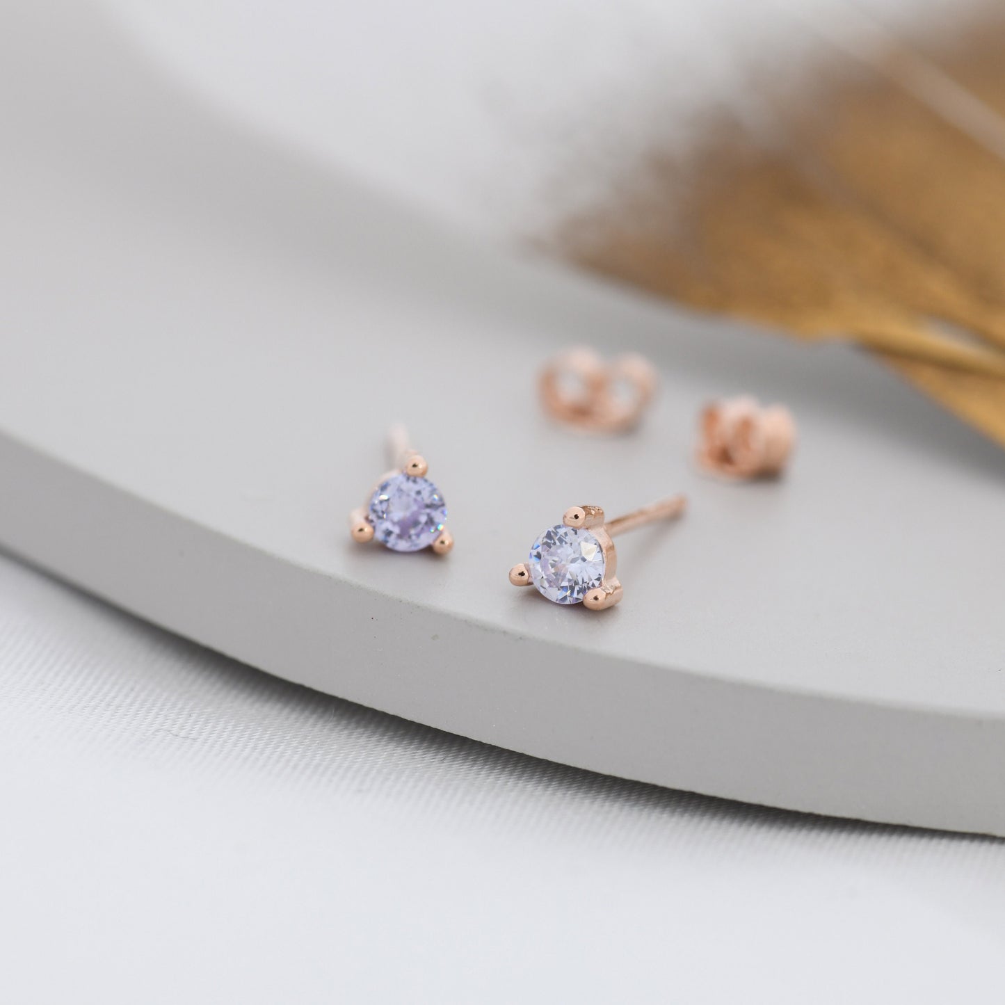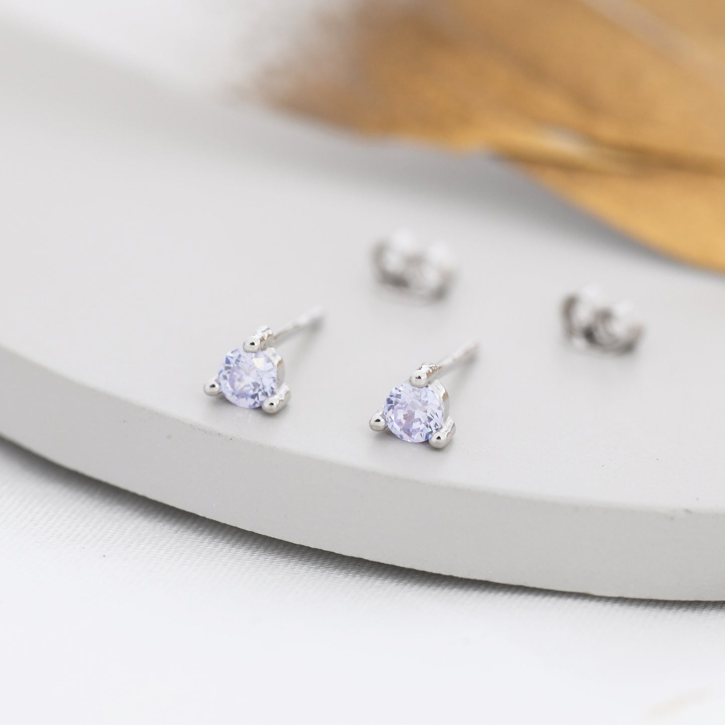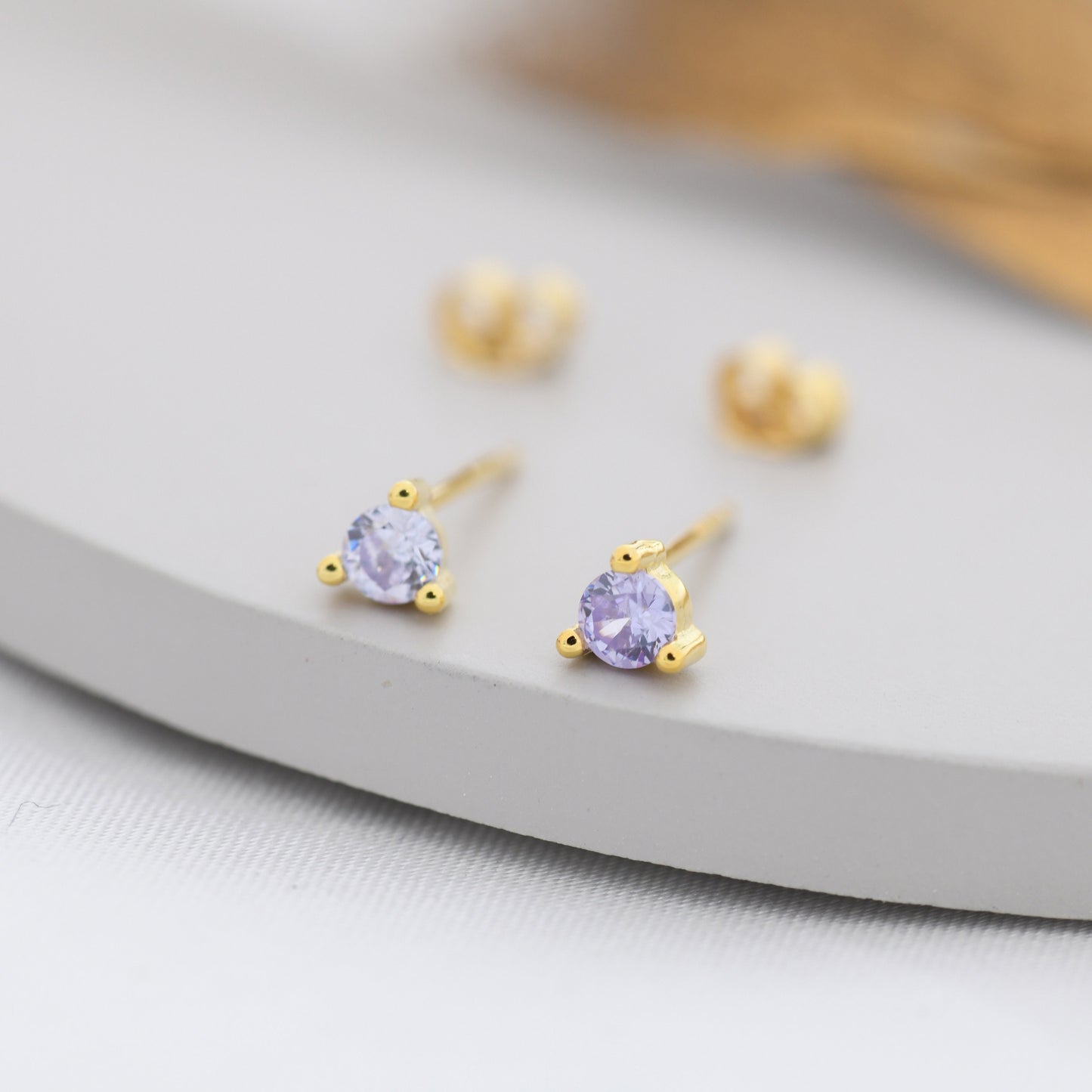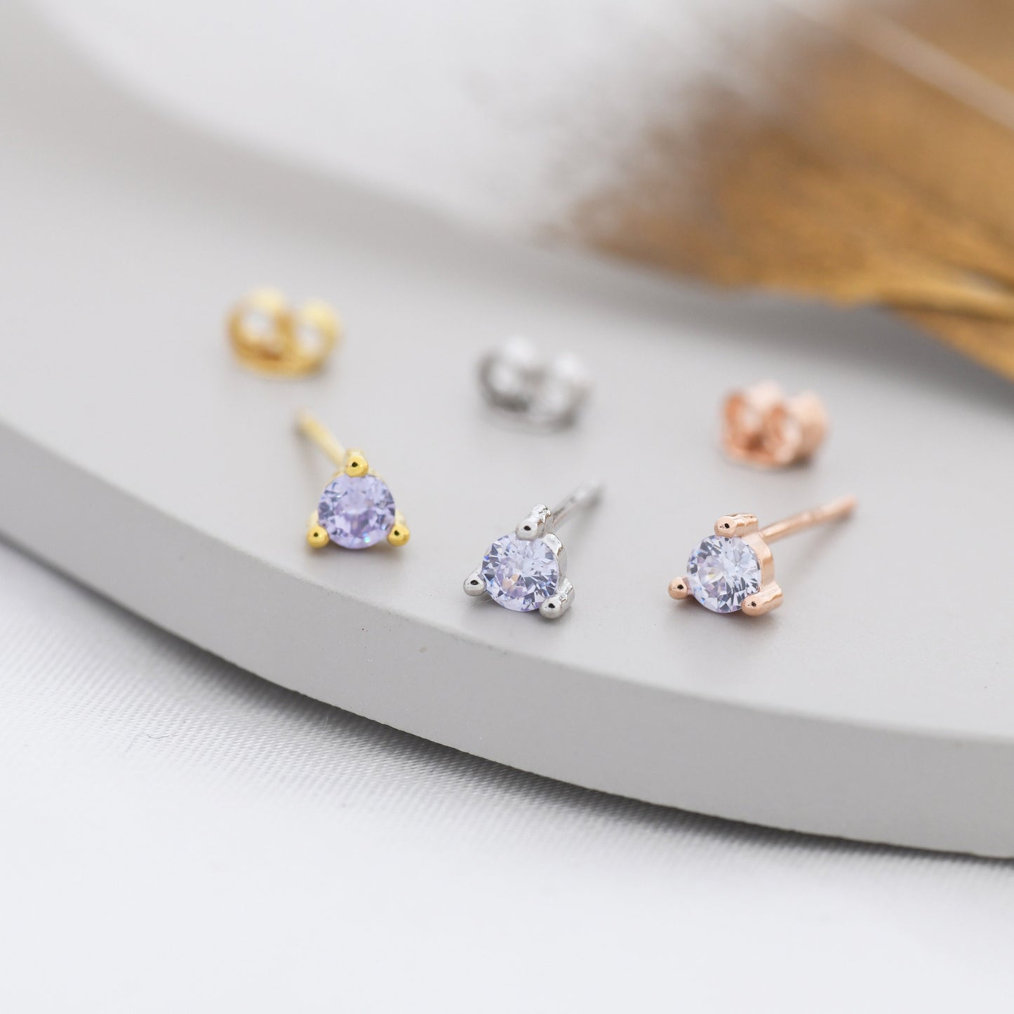 Sterling Silver Alexandrite Purple Blue CZ Stud Earrings, 3mm June Birthstone CZ Earrings, Three Prong, Silver, Gold or Rose Gold