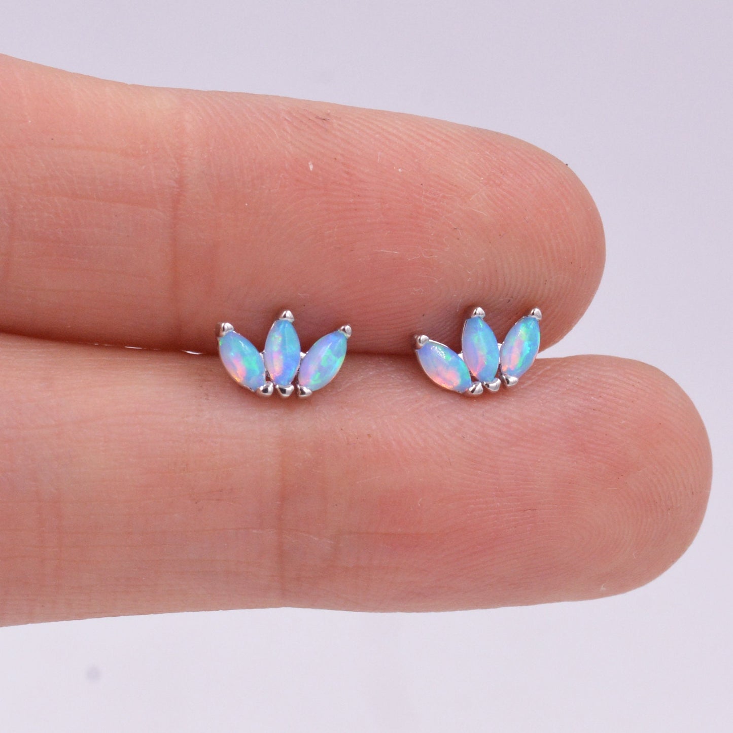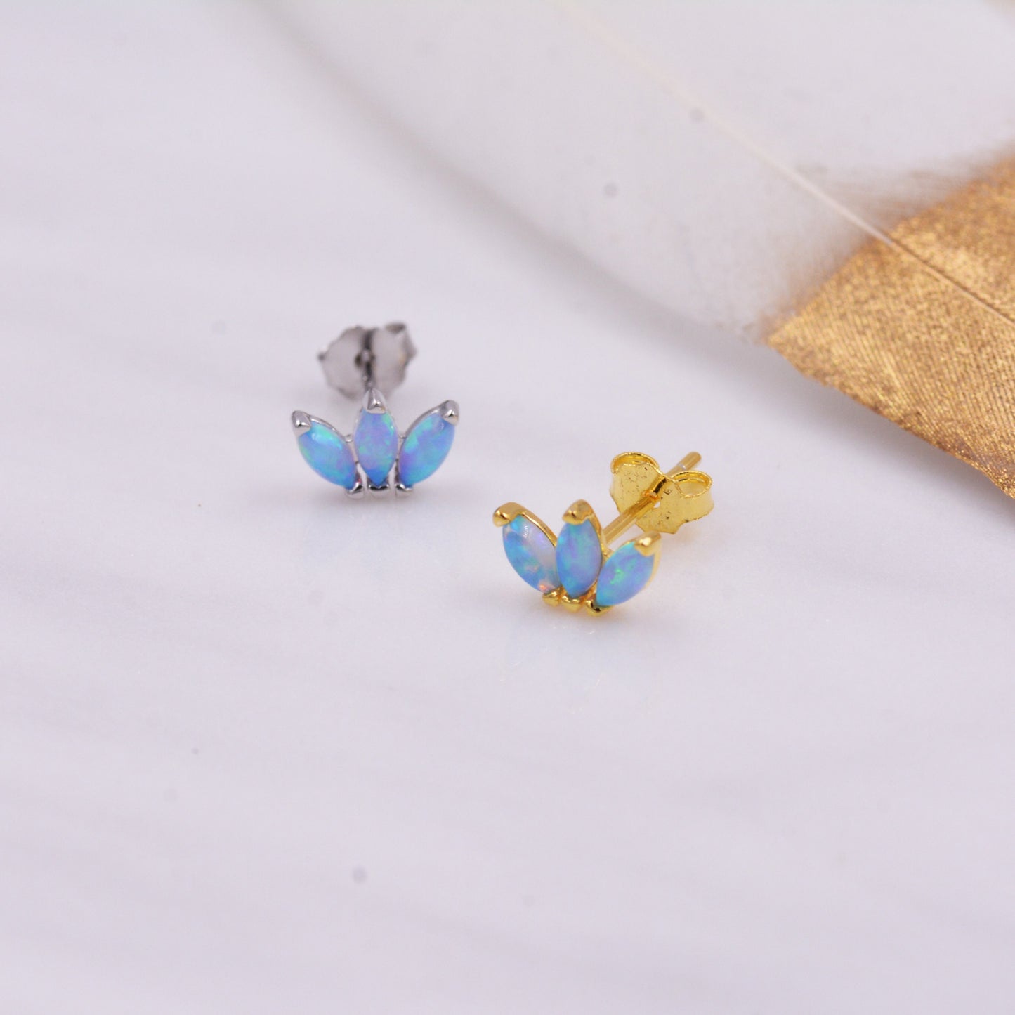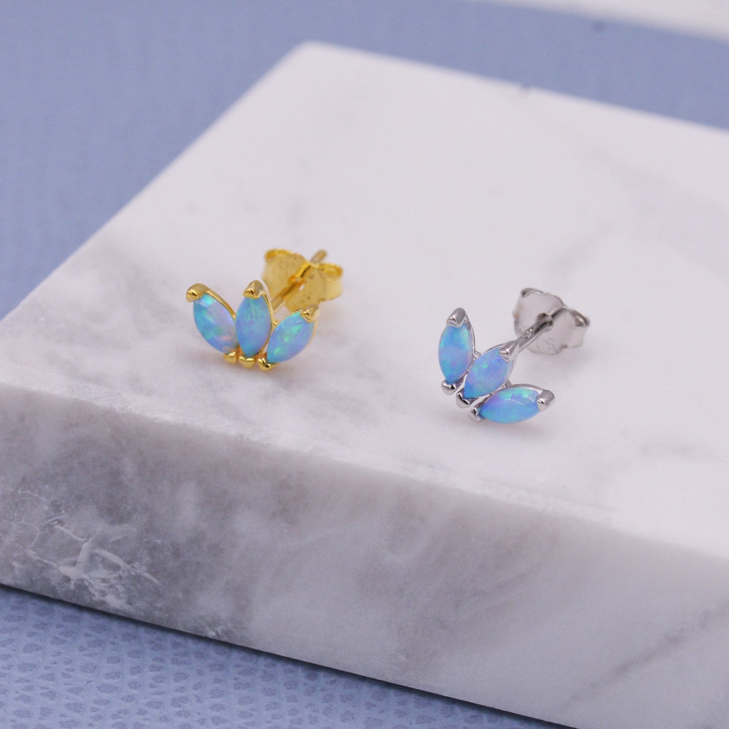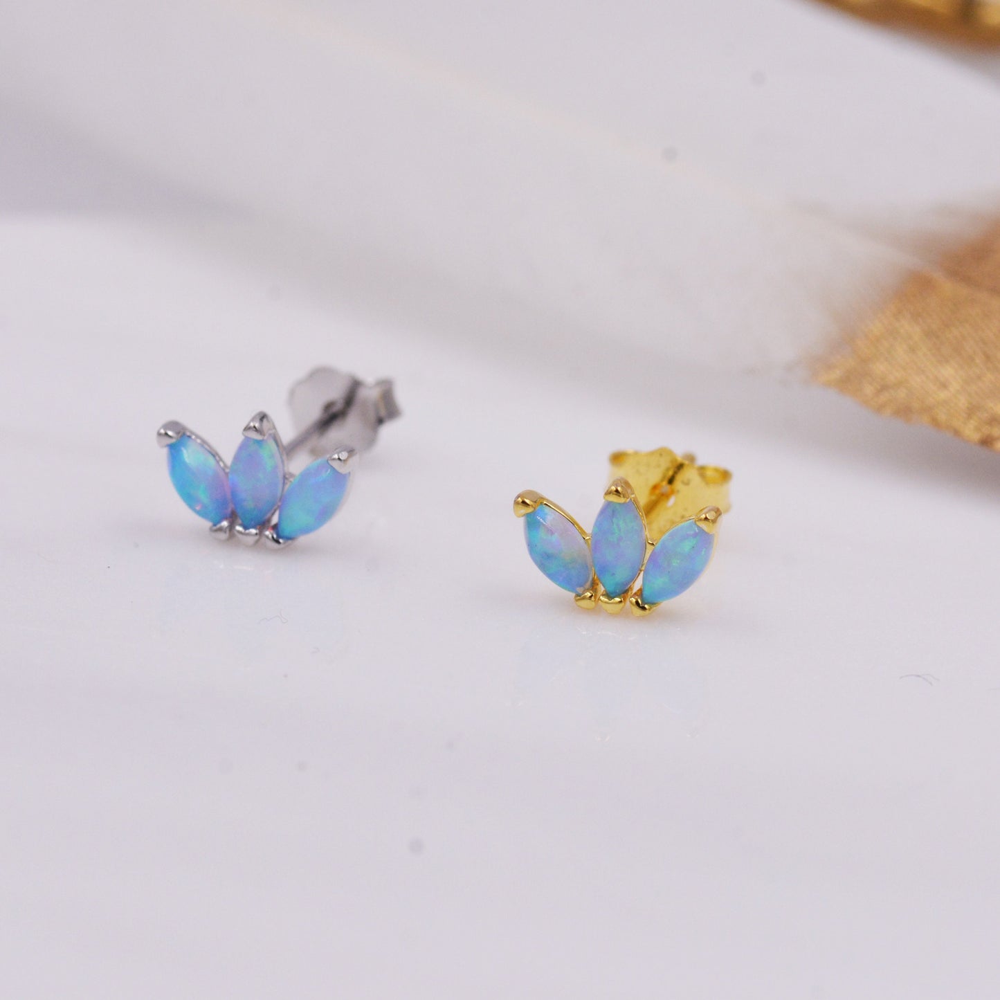 Sterling Silver Blue Opal Marquise Cluster Stud Earrings, Marquise Fan Stud, Opal Crown Stud, Gold or Silver, Minimalist Geometric Design