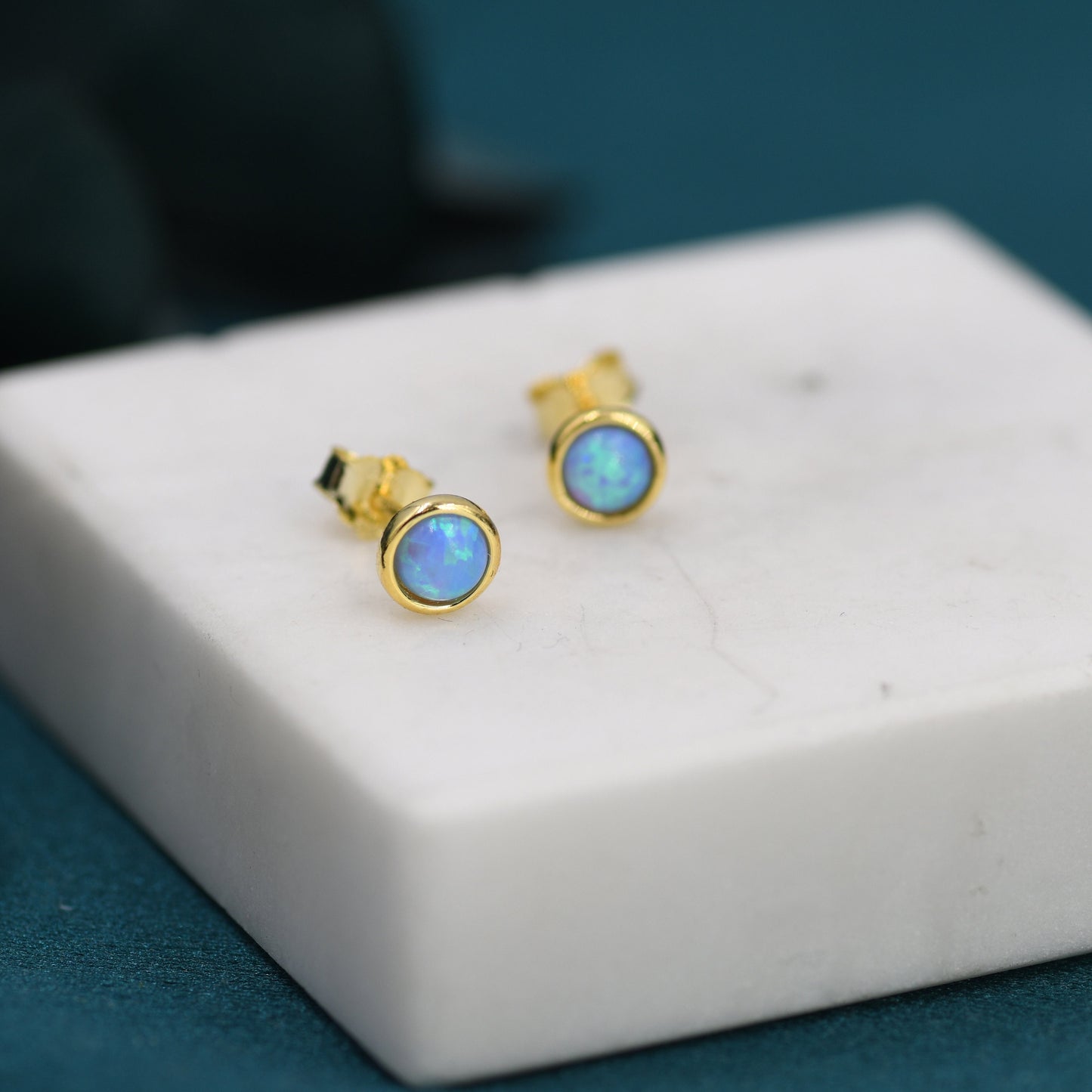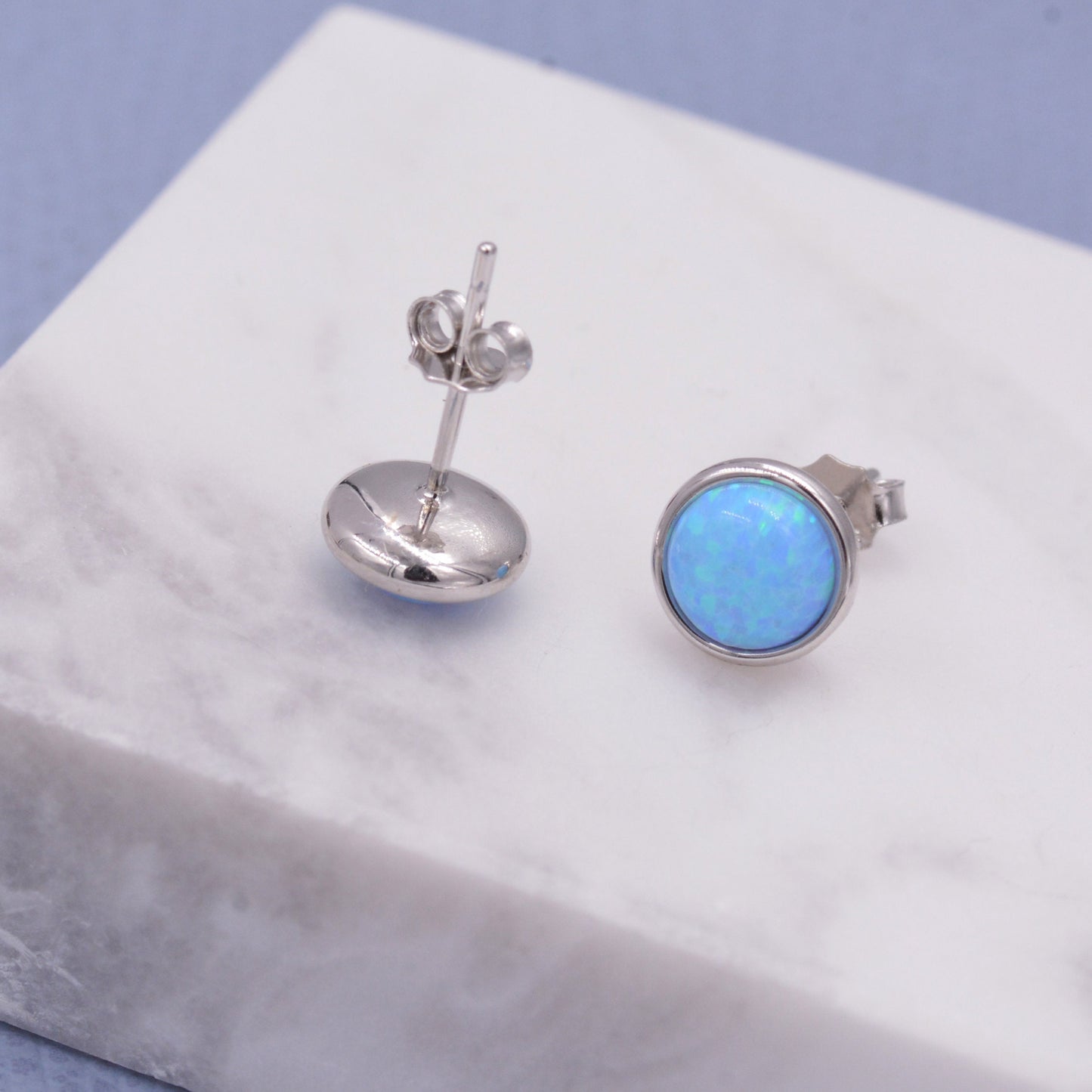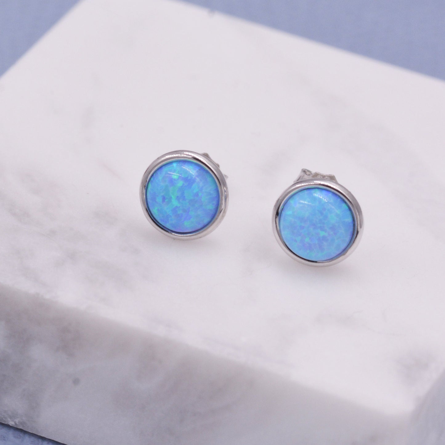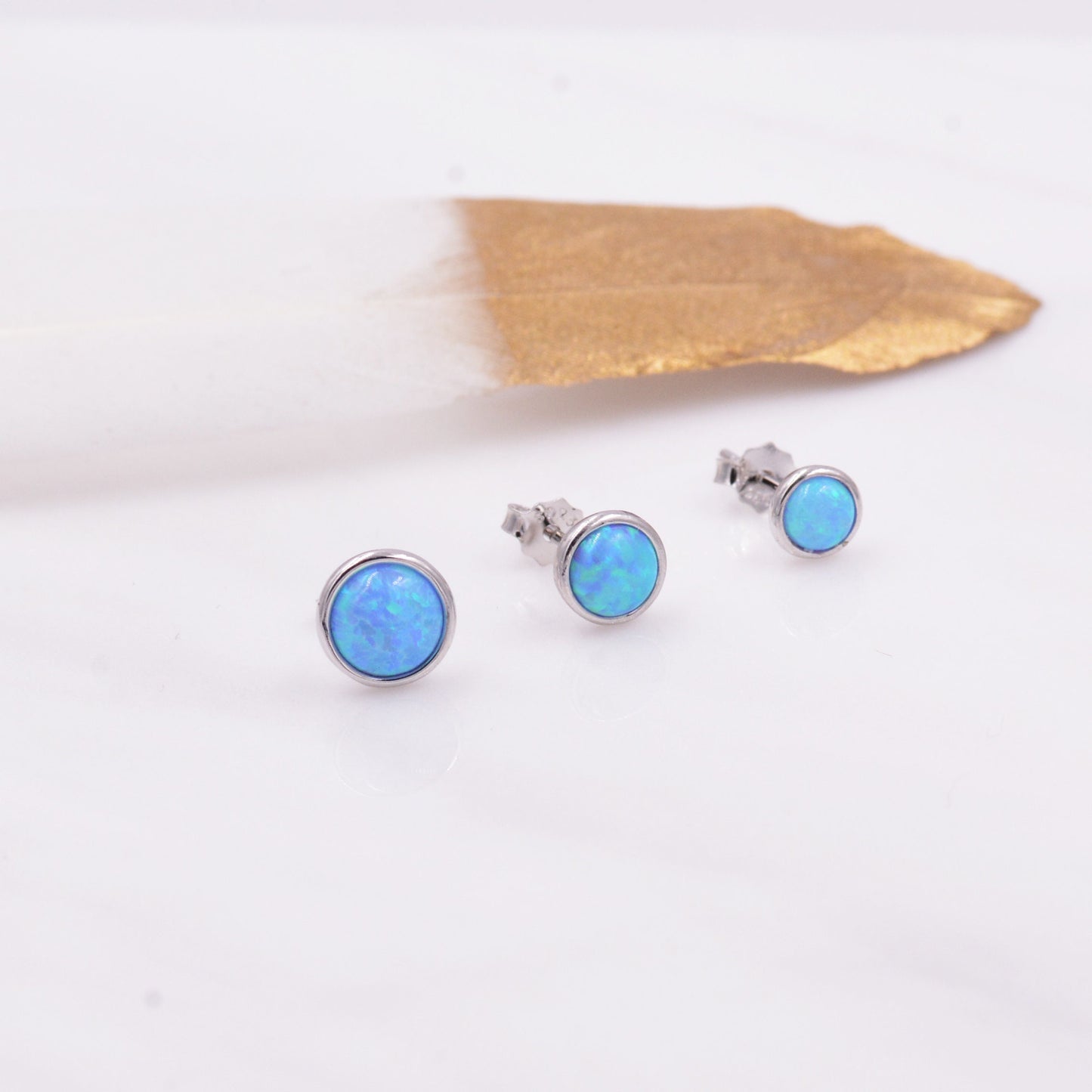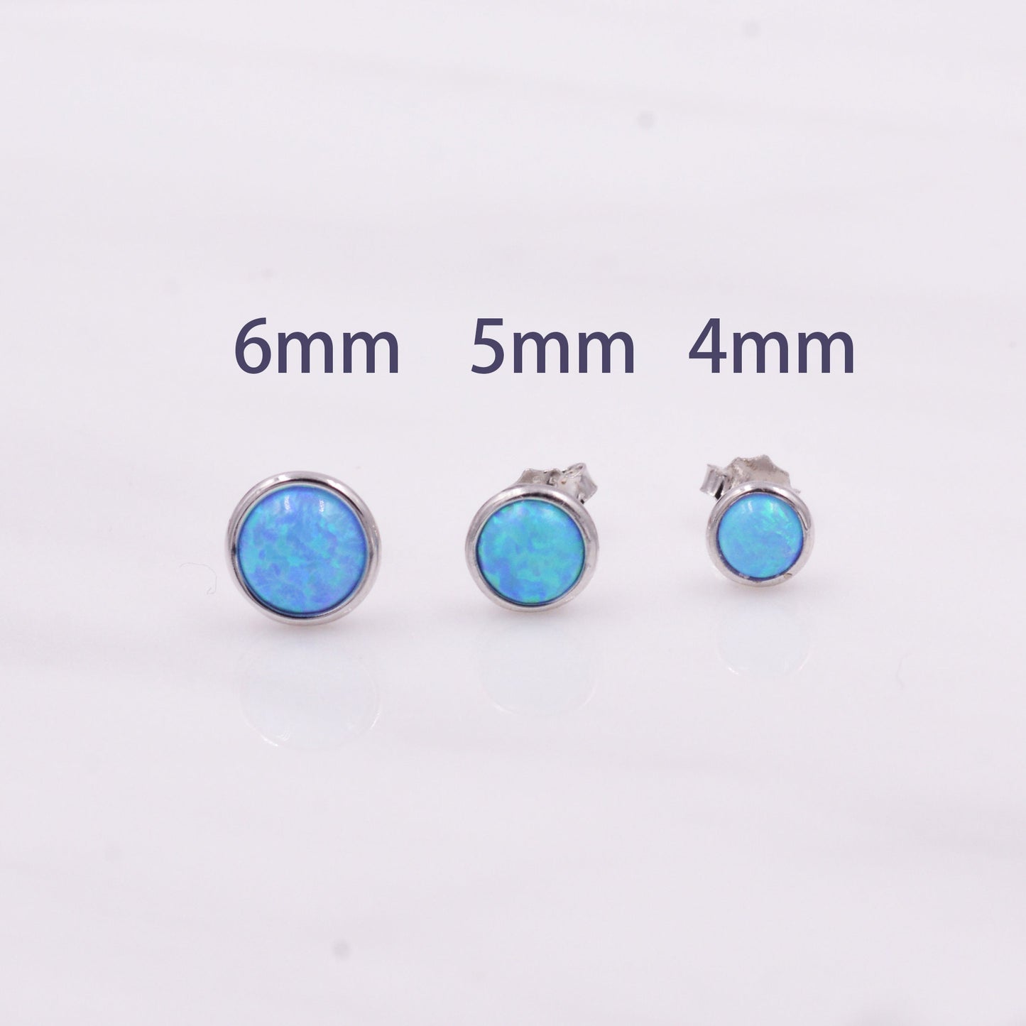 Sterling Silver Blue Opal Stone Crystal Stud Earrings. 4mm, 5mm and 6mm, Gold or Silver, Round Minimalist Opal Earings