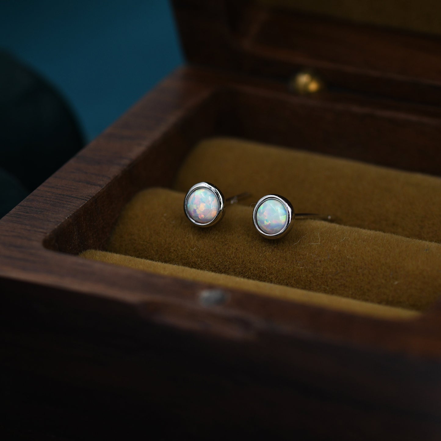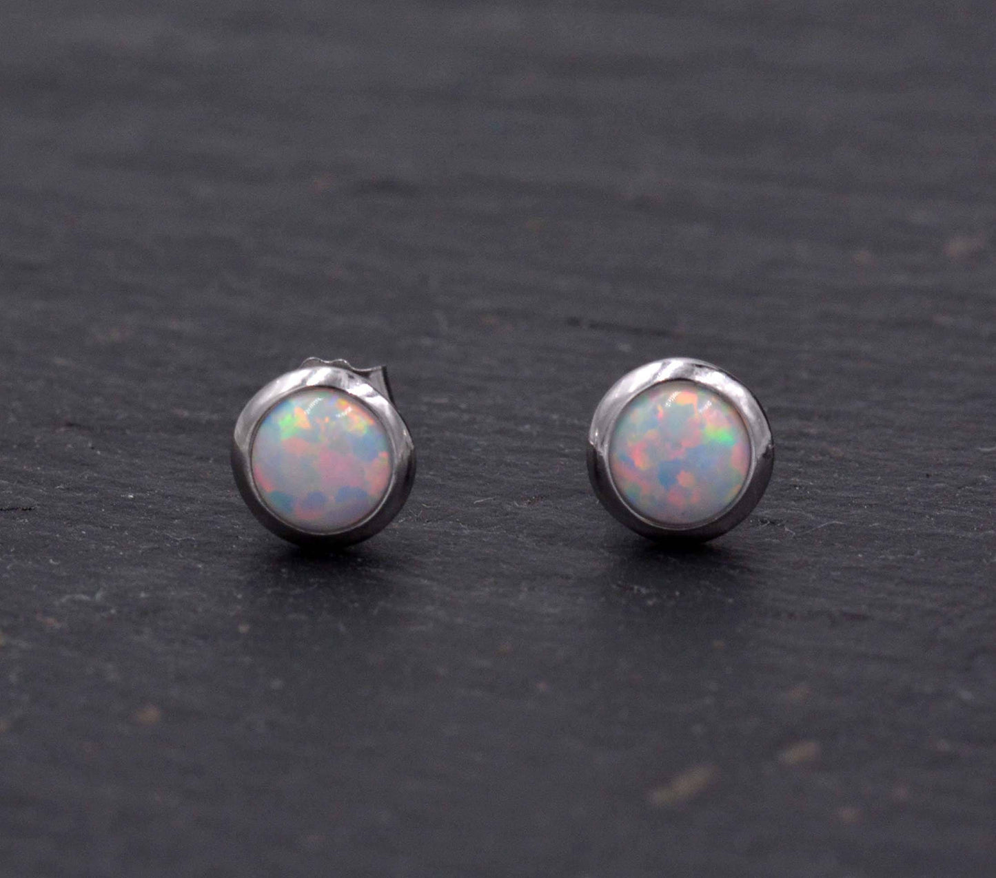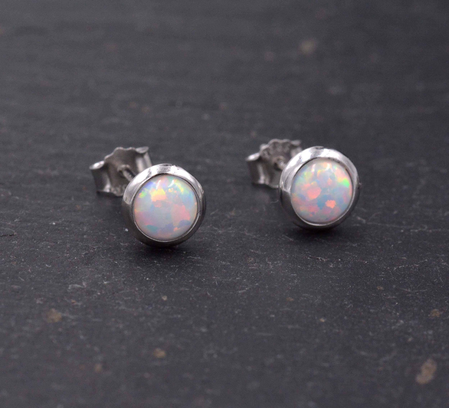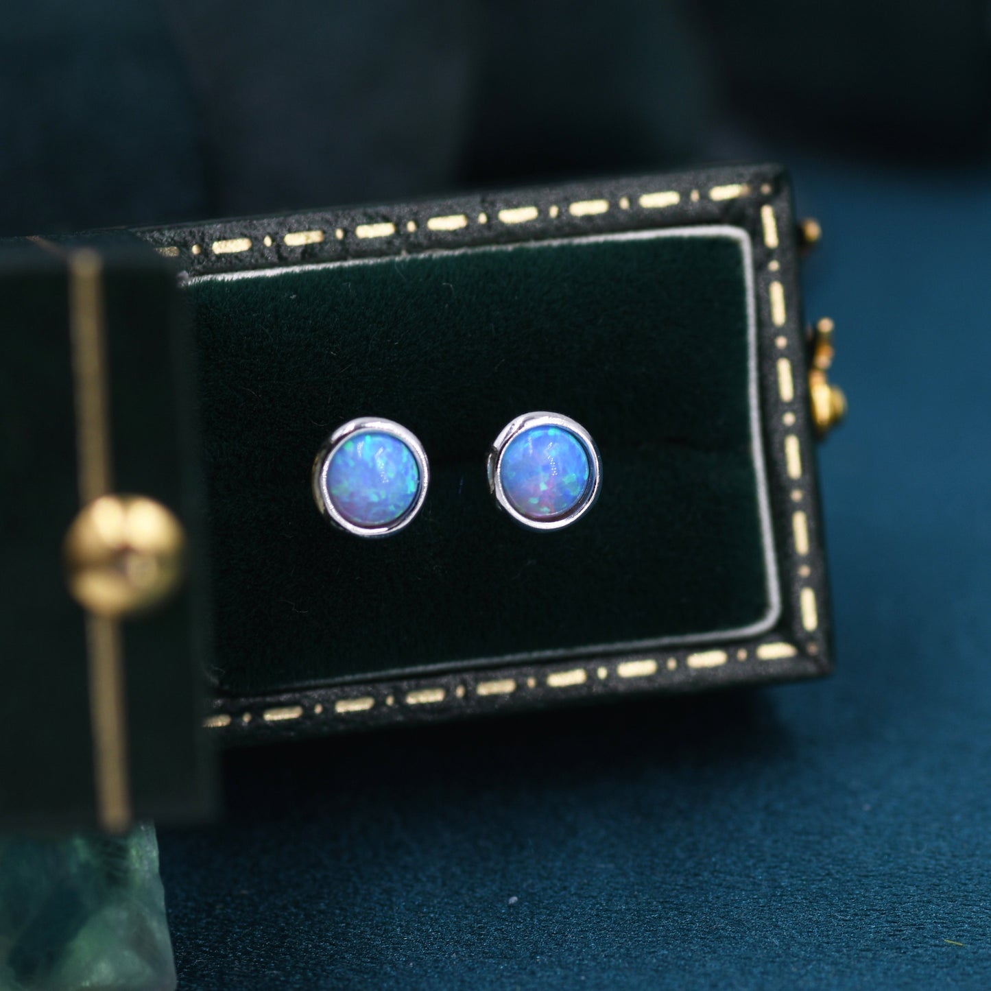 Sterling Silver Blue Opal White Opal Stone Crystal Stud Earrings. Round Minimalist Dot Geometric Design. bridesmaid jewellery.