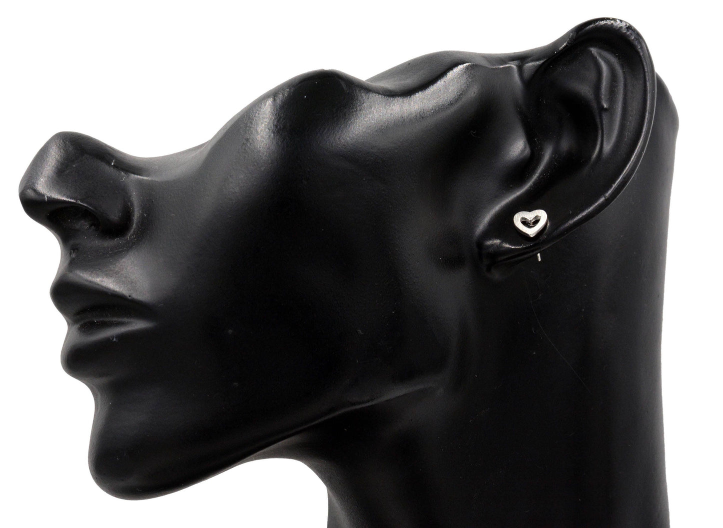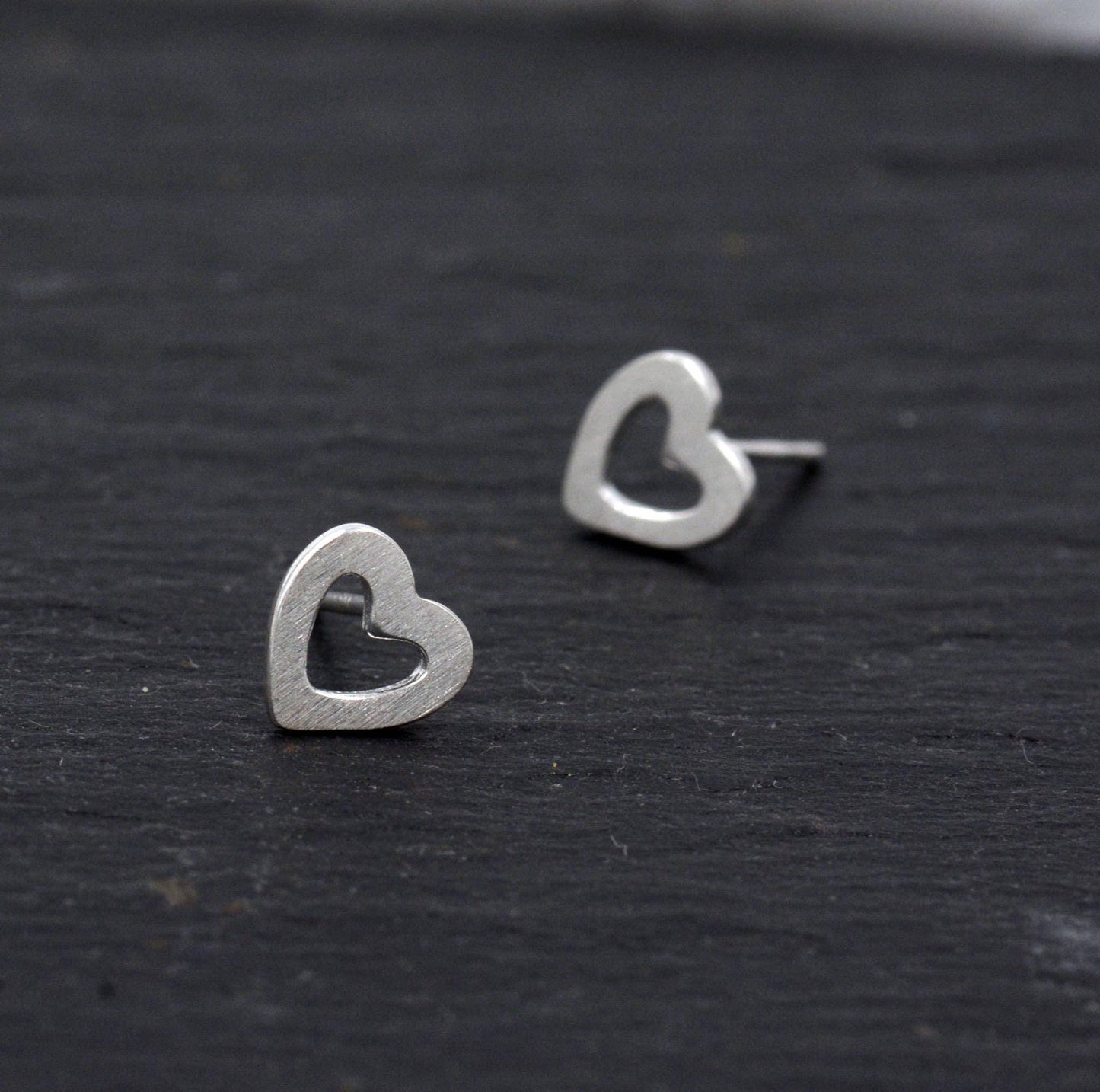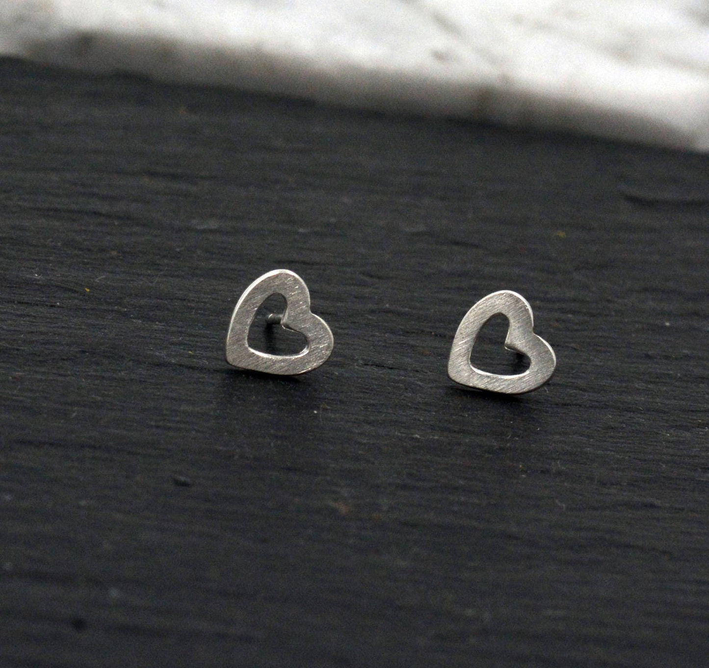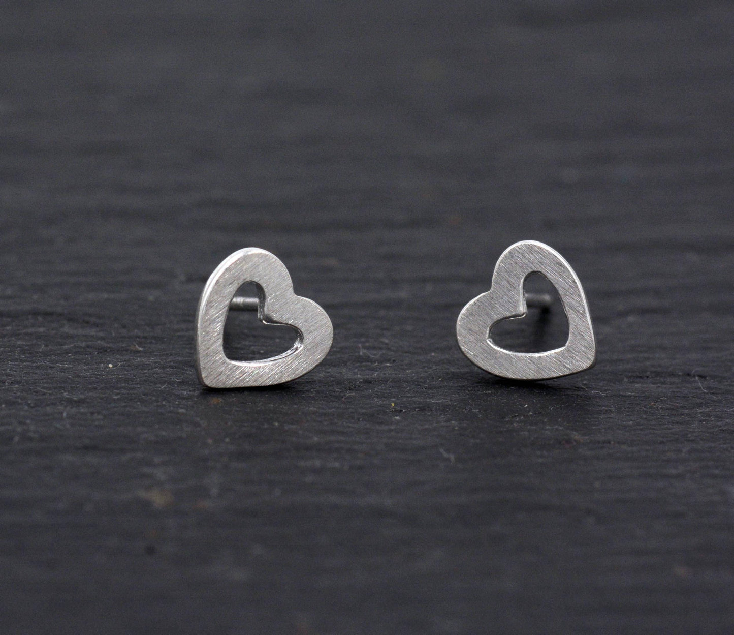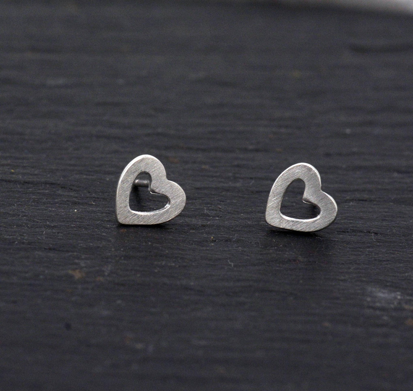 Sterling Silver Cute Little Open Heart Stud Earrings , Textured Finish, Simple Minimalist Design.