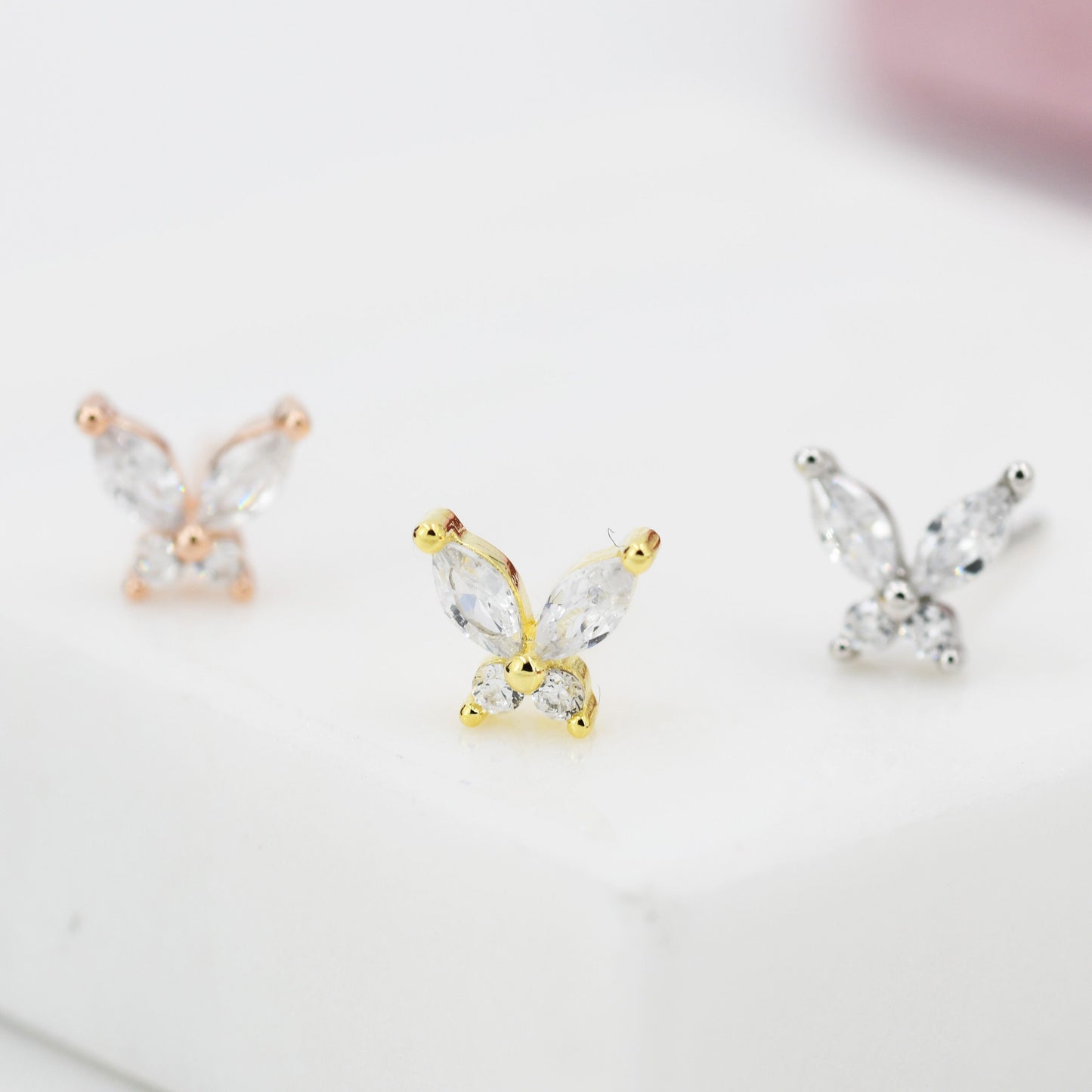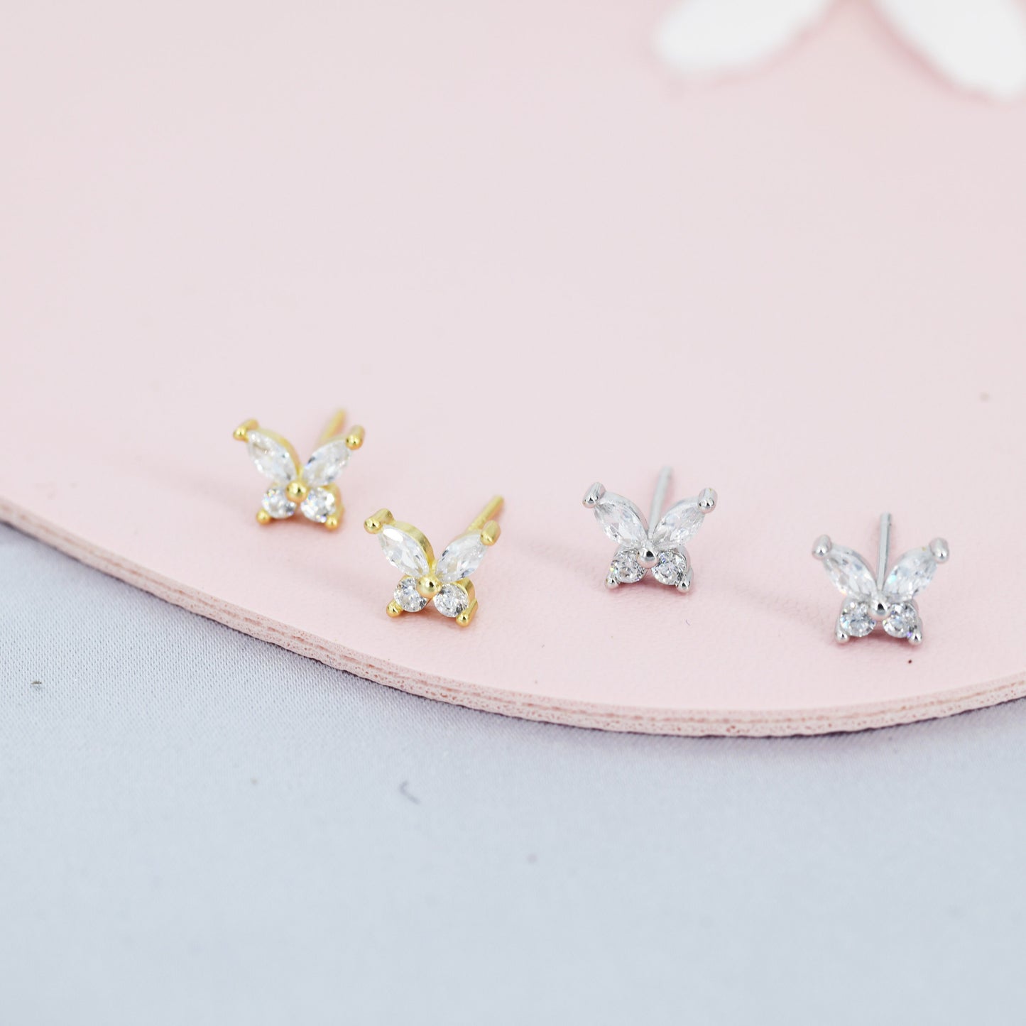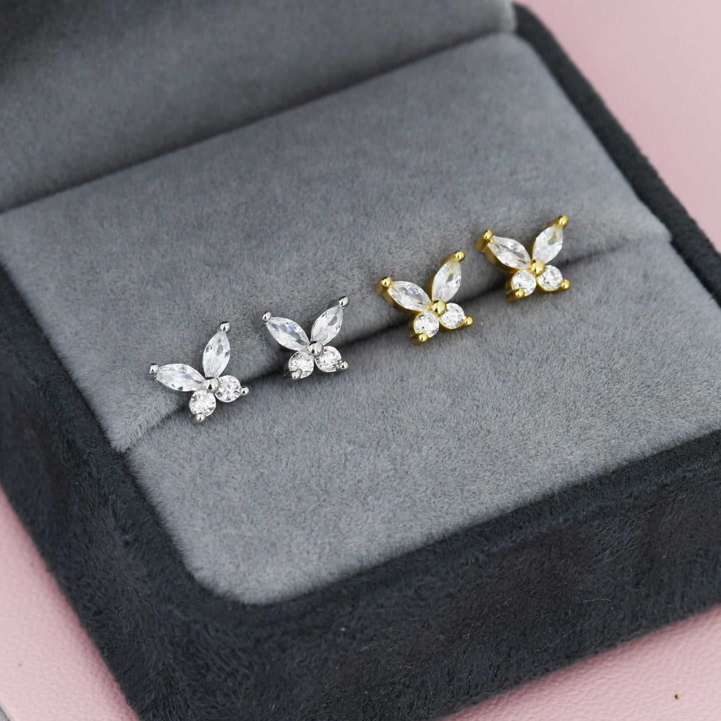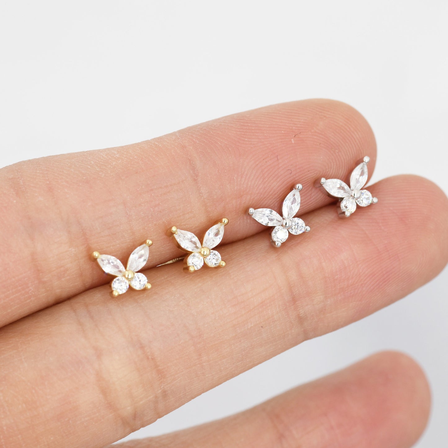 Sterling Silver CZ Butterfly Stud Earrings, Gold or Silver or Rose Gold, Marquise CZ Earrings, Stacking Earrings