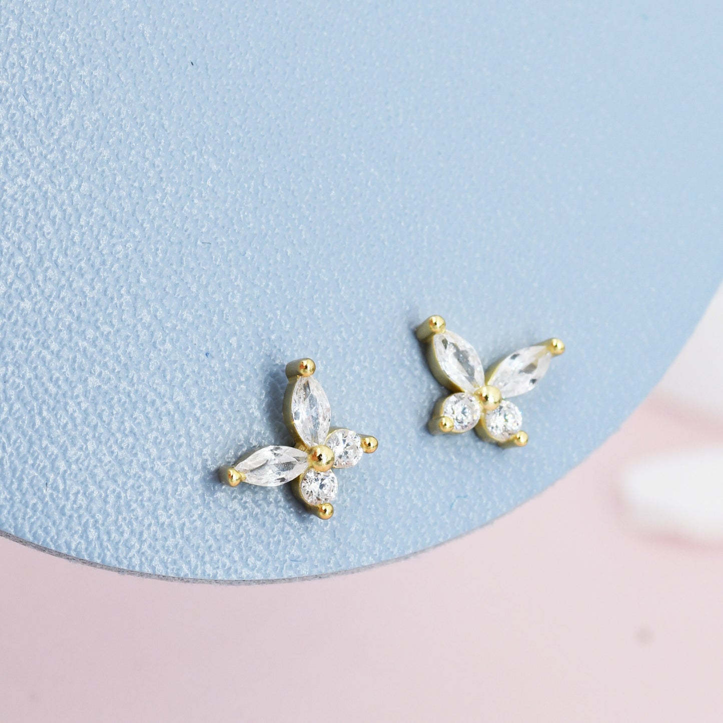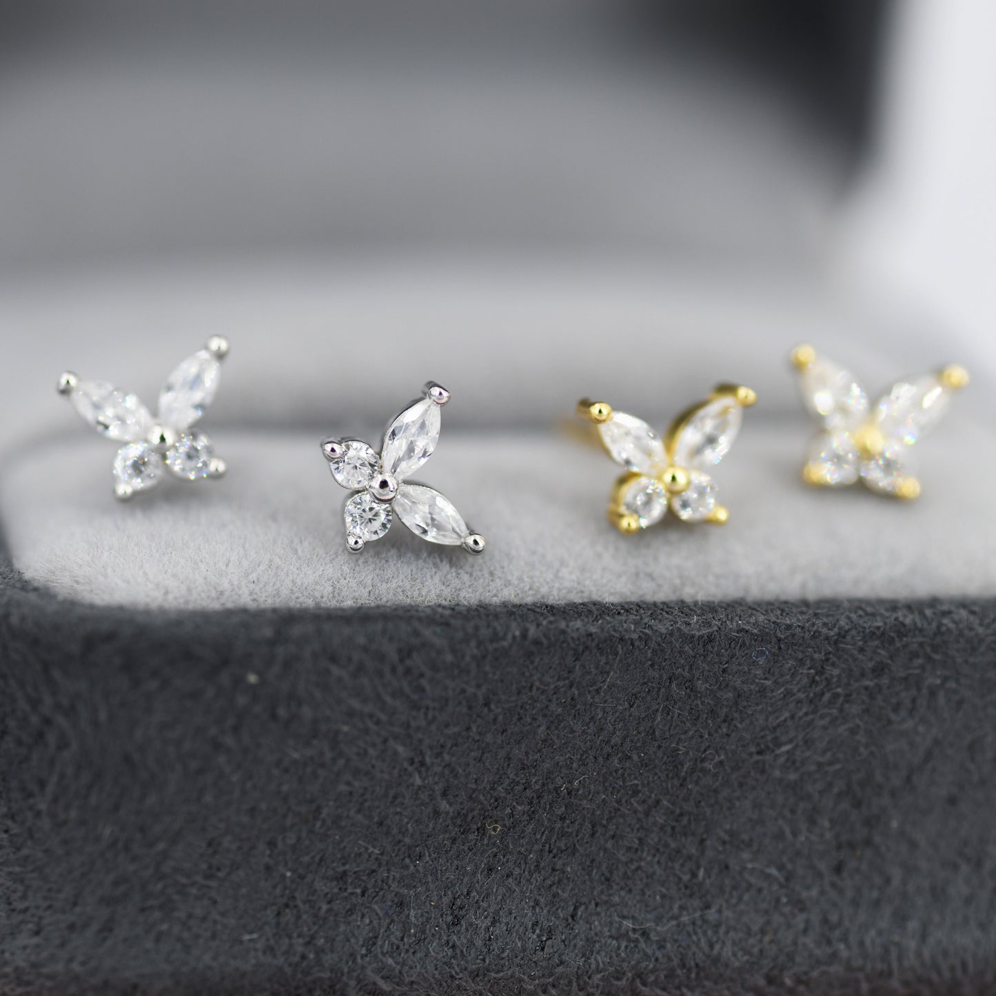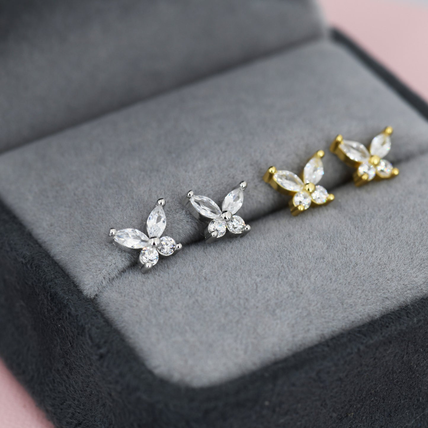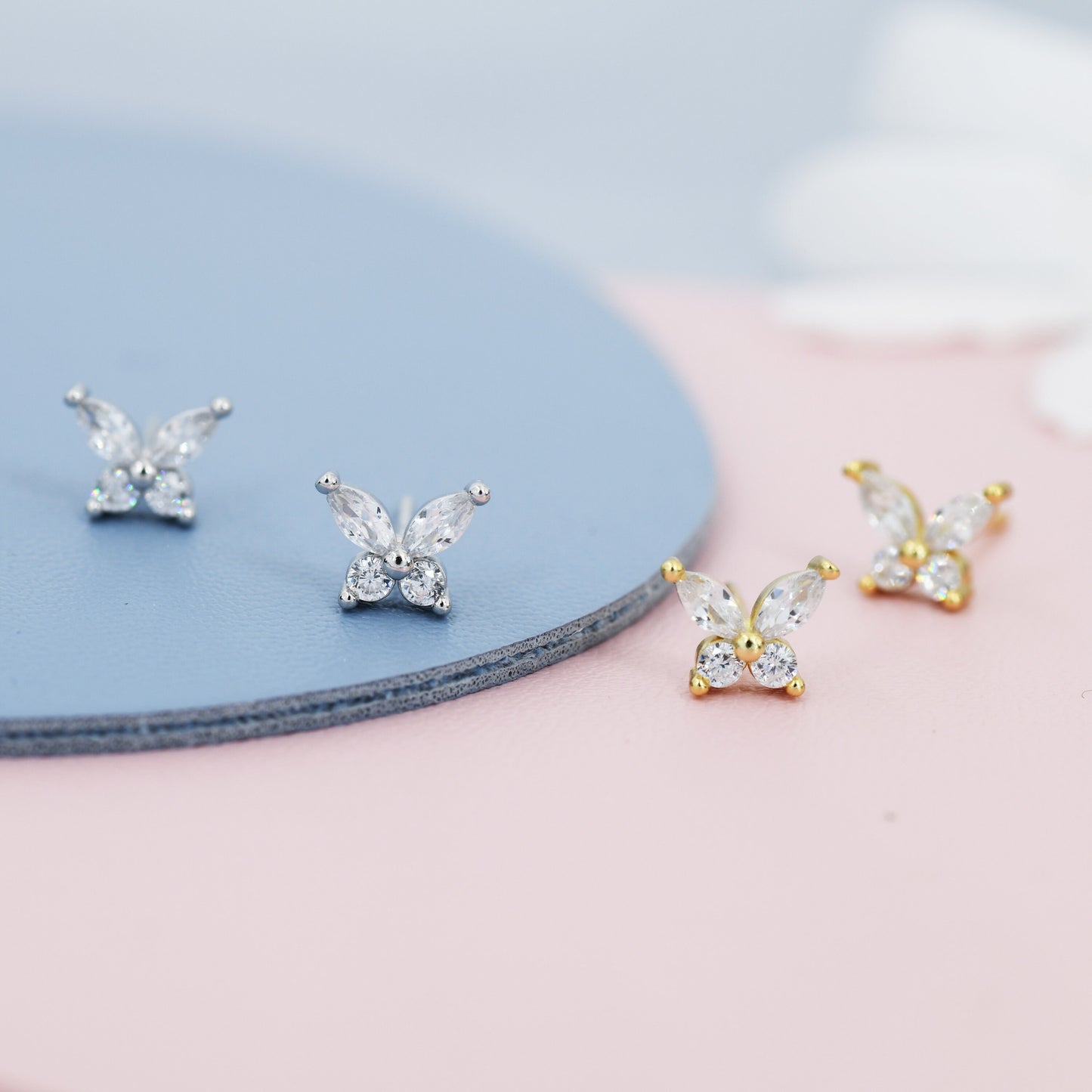 Sterling Silver CZ Butterfly Stud Earrings, Gold or Silver or Rose Gold, Marquise CZ Earrings, Stacking Earrings