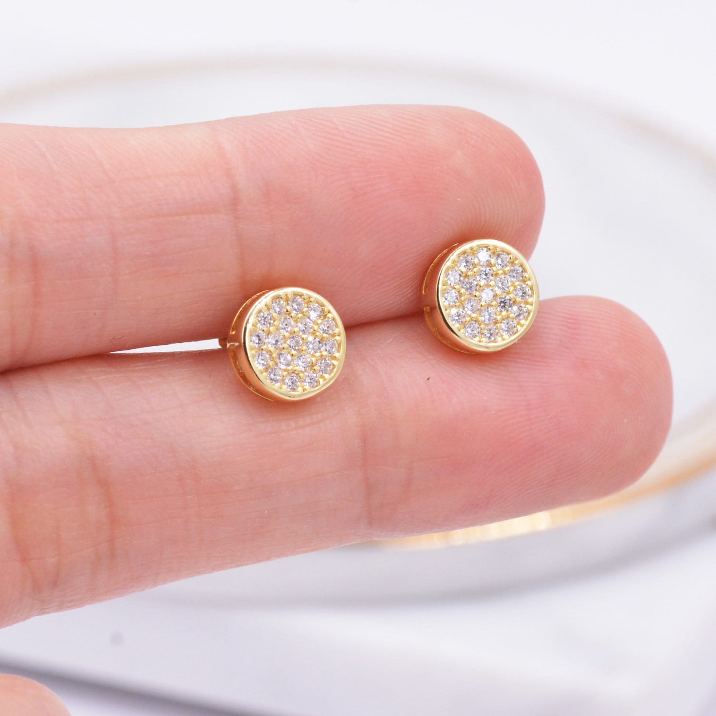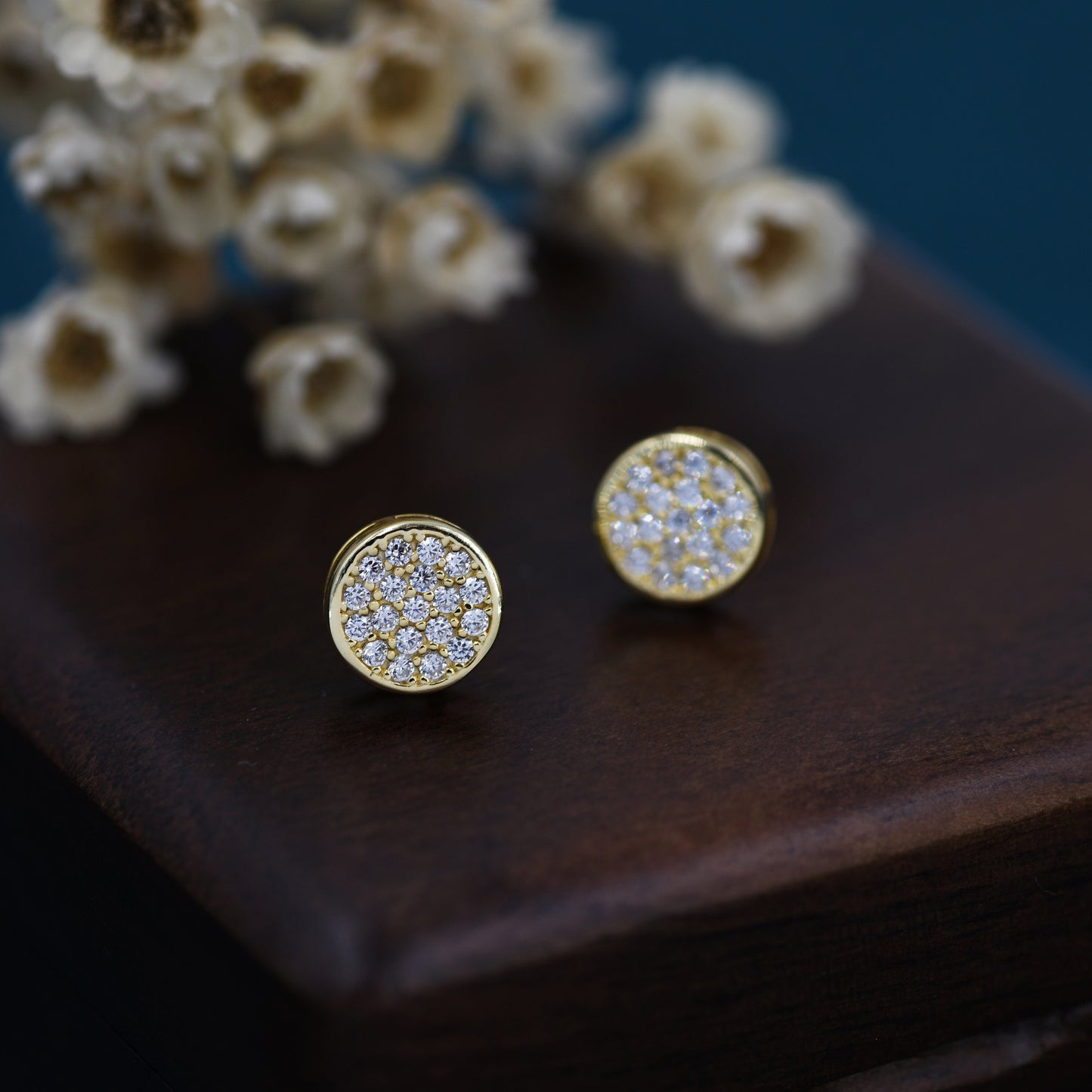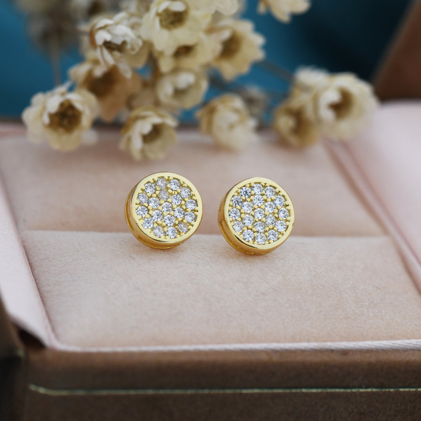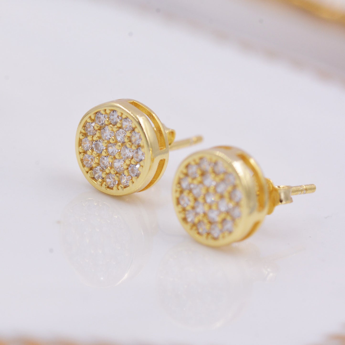 Sterling Silver CZ Crystal Encrusted Disk Stud Earrings, Simple and Elegant.