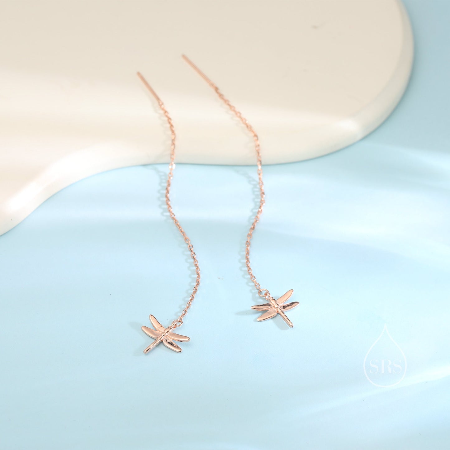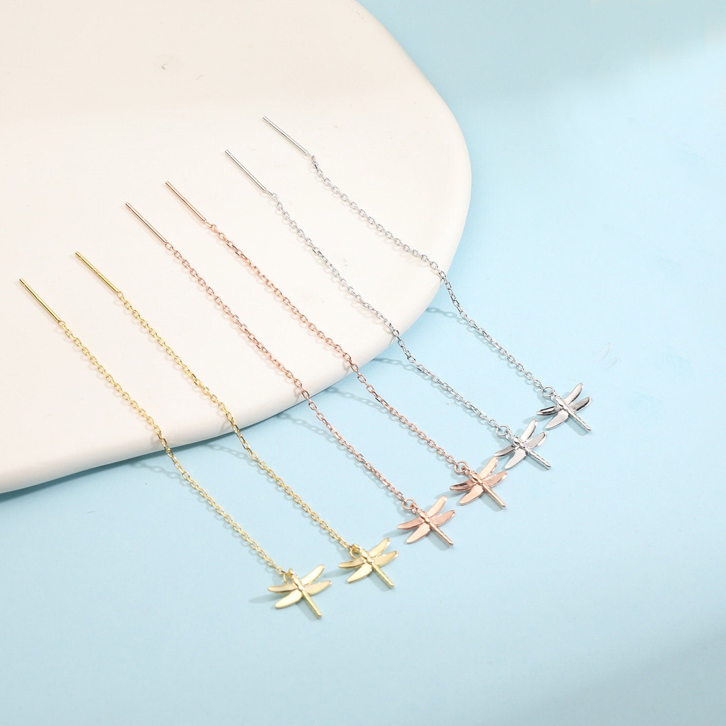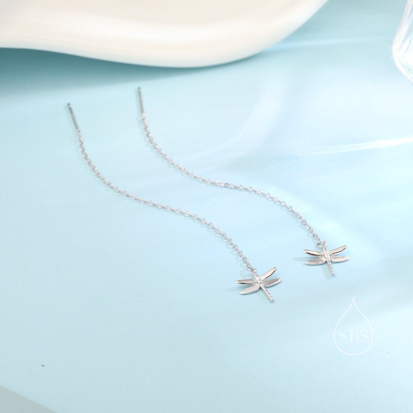 Sterling Silver Dragonfly Long Ear Threaders, Dragonfly Threader Earrings, Dainty Dangle Earrings