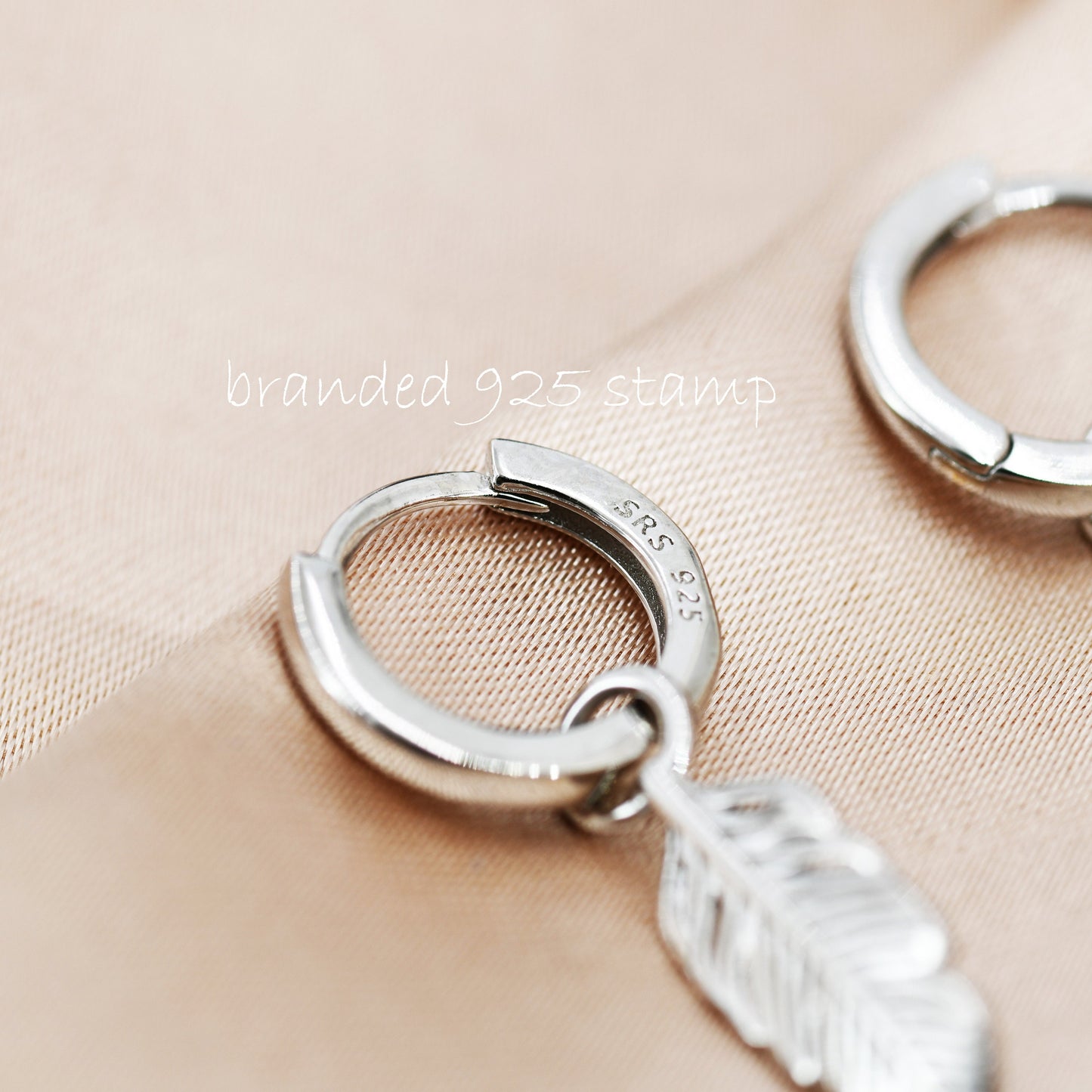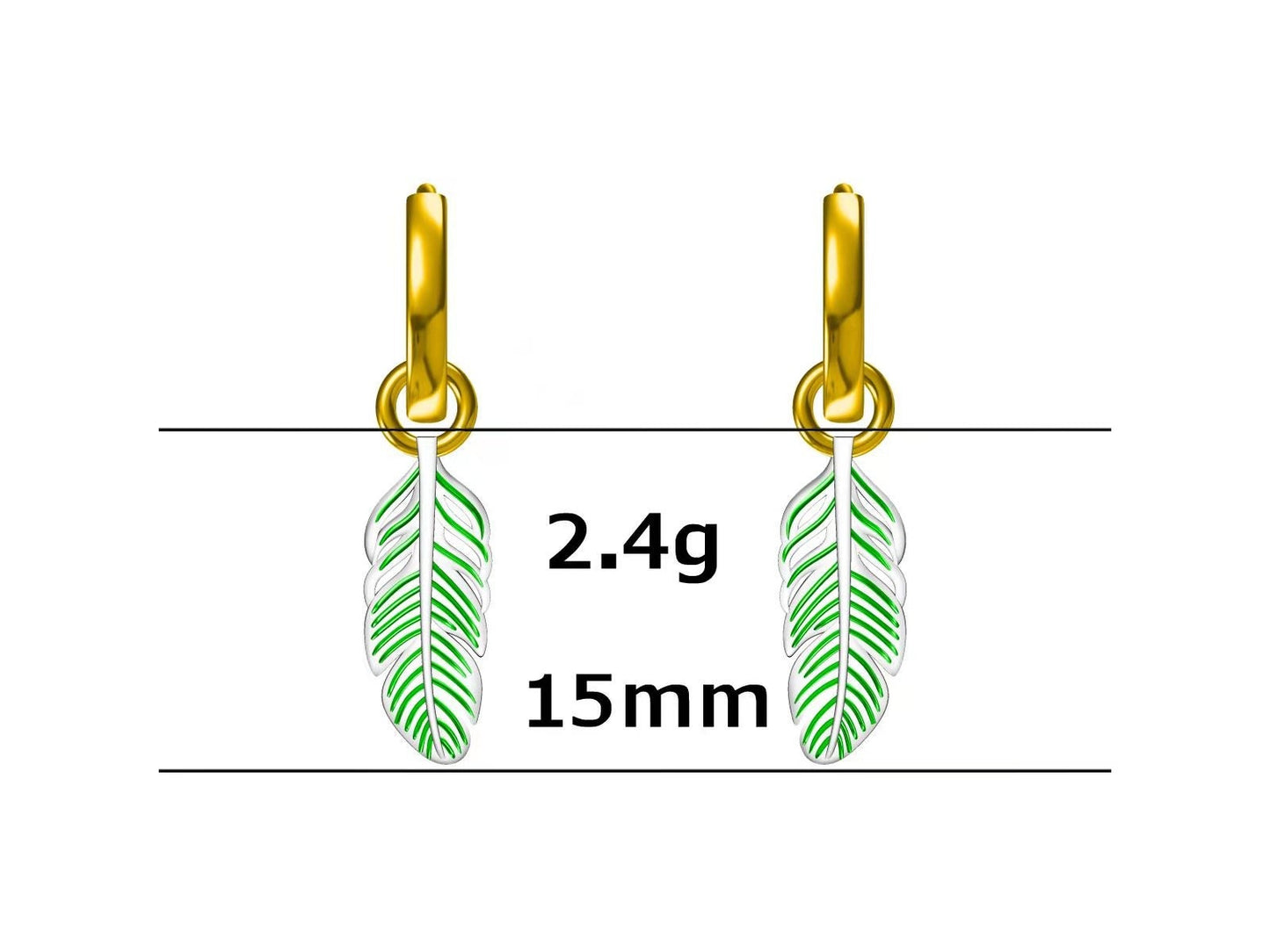 Dimensions : Feather charm measures 7 x 15 mm. Hoops measure 8.5mm.