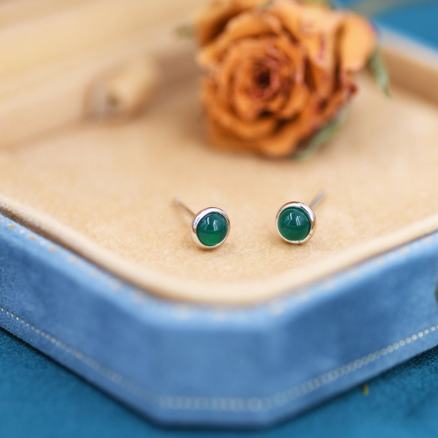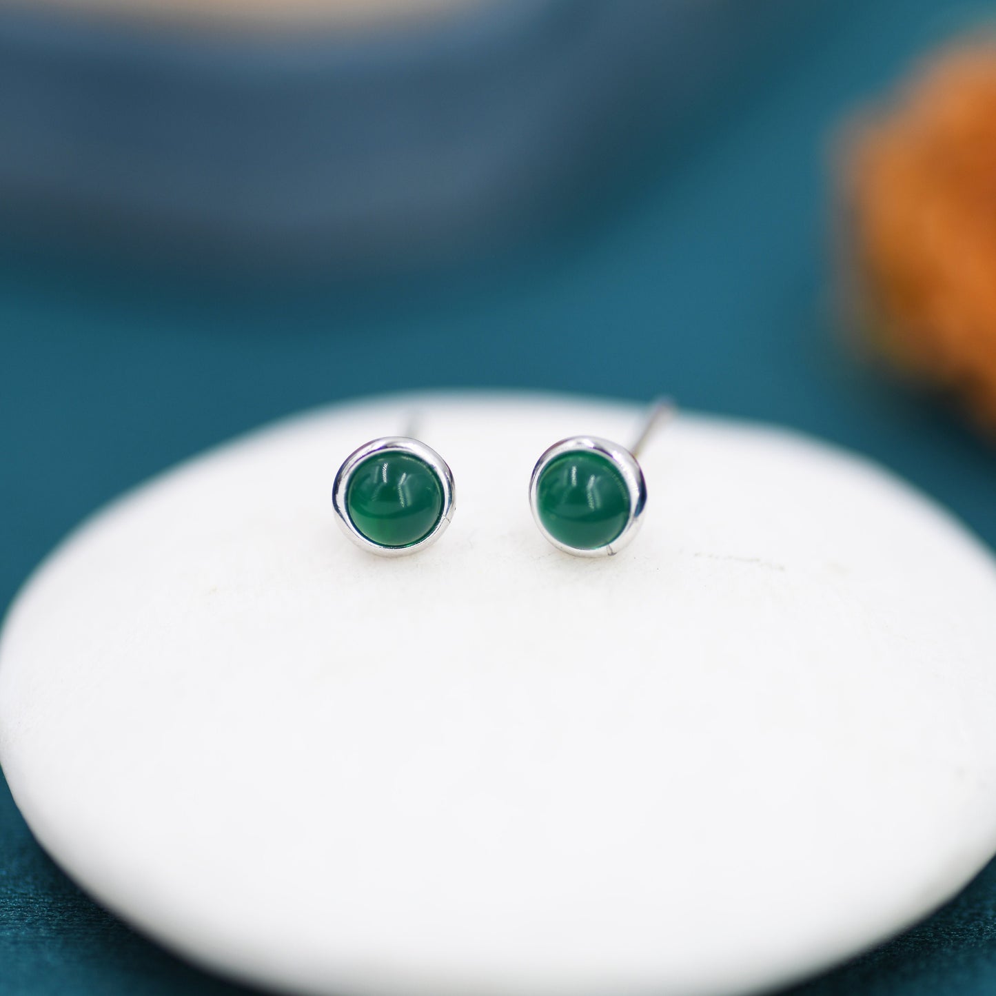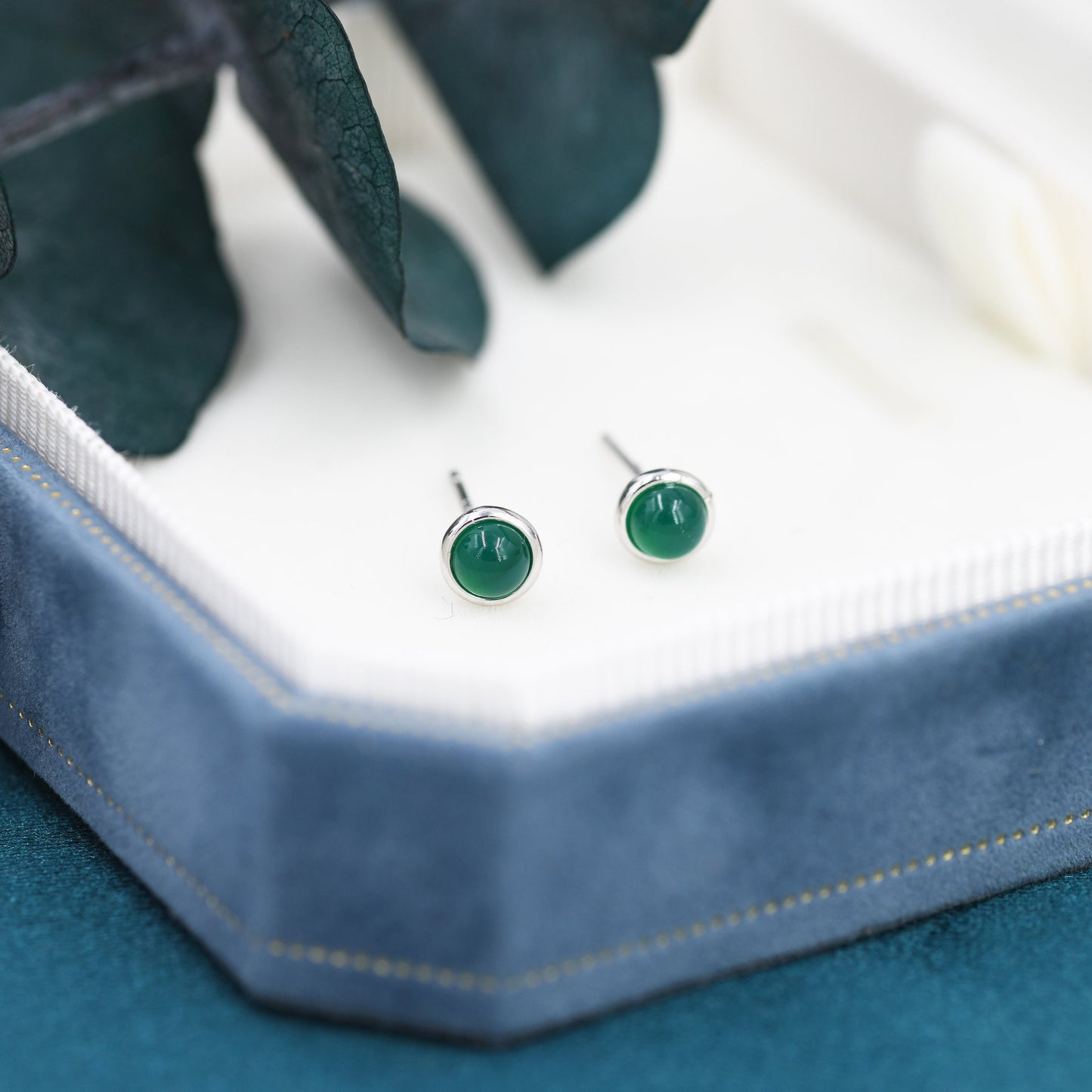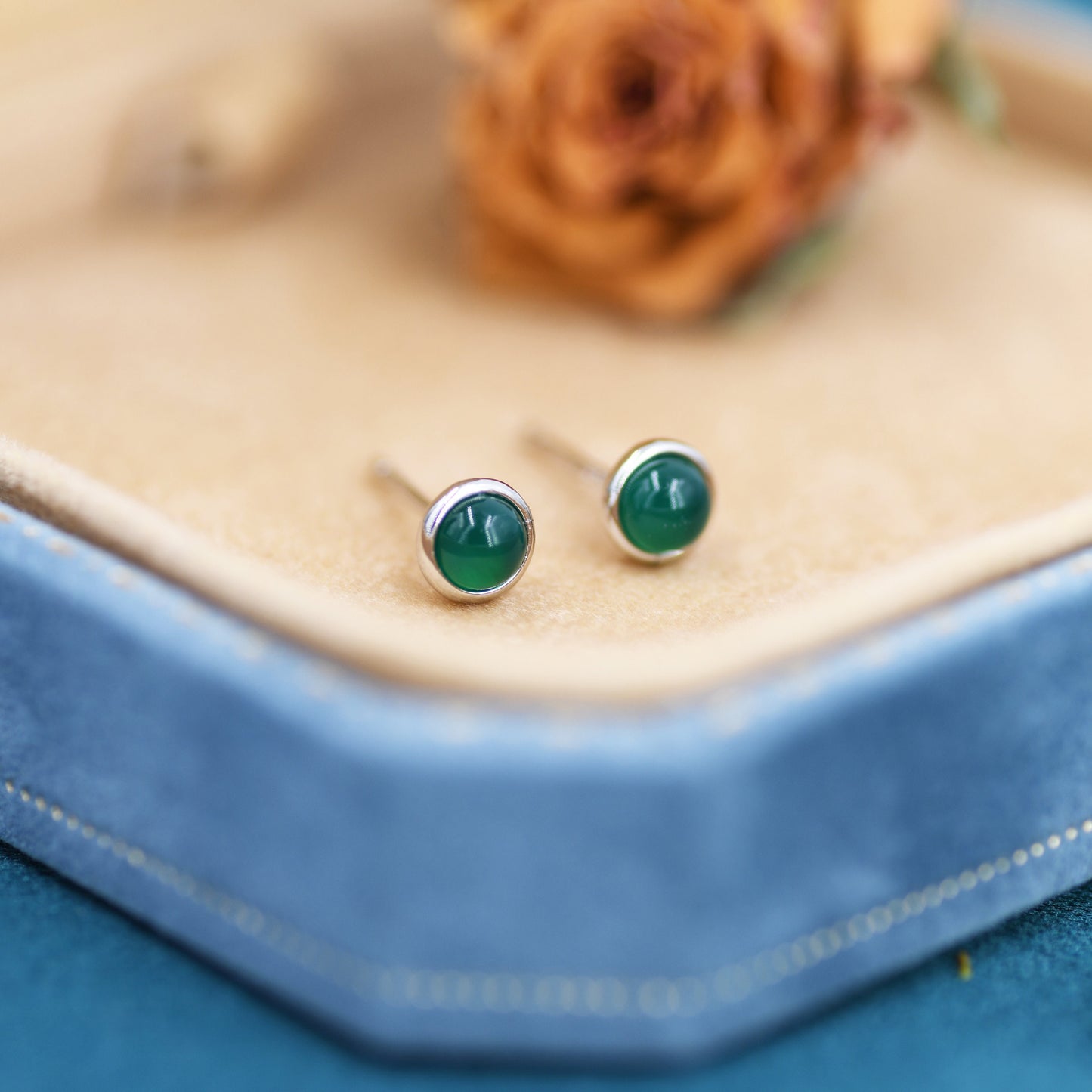 Sterling Silver Green Onyx Stud Earrings, 4mm Bezel Set, Genuine Onyx Gemstone Stud, Minimalist Style