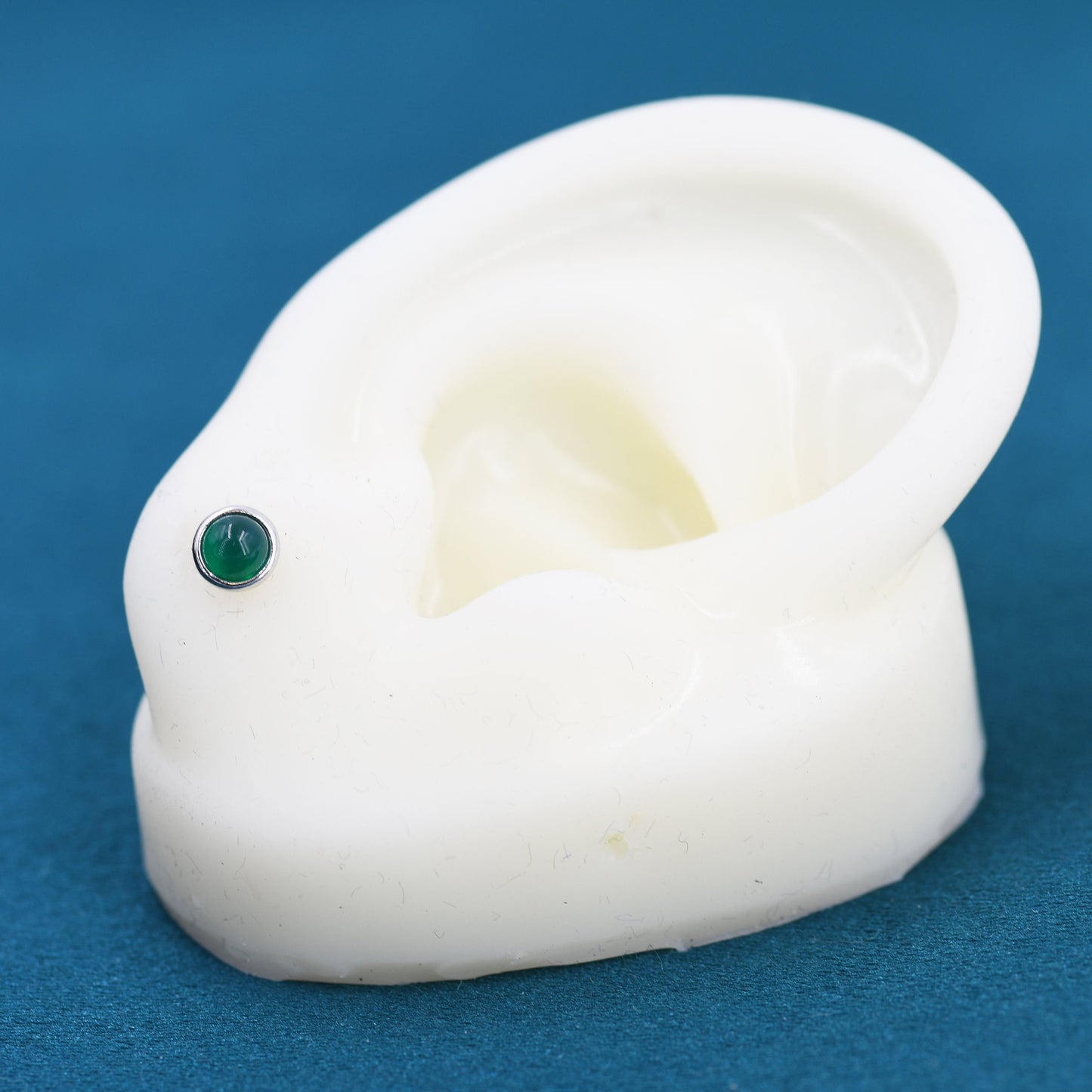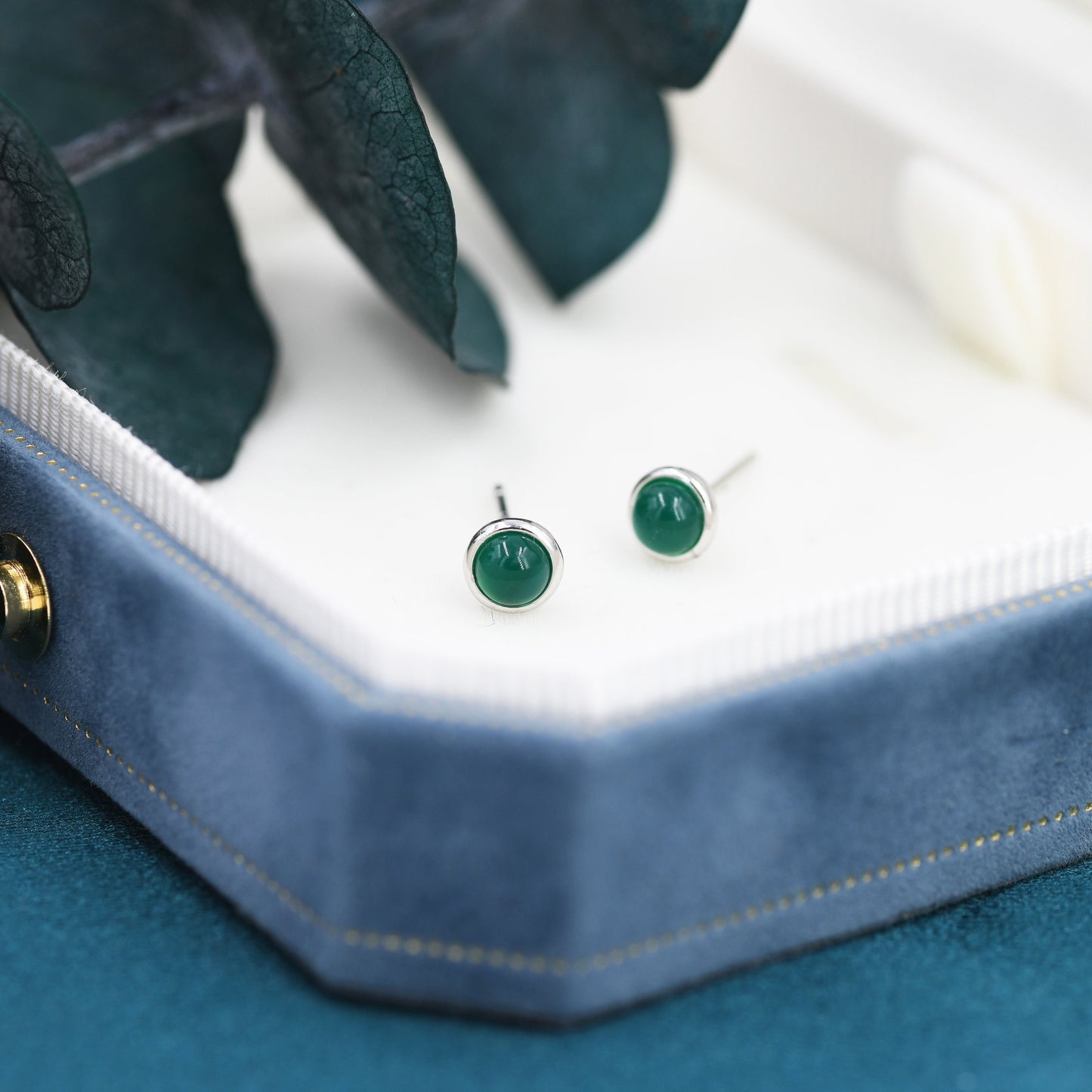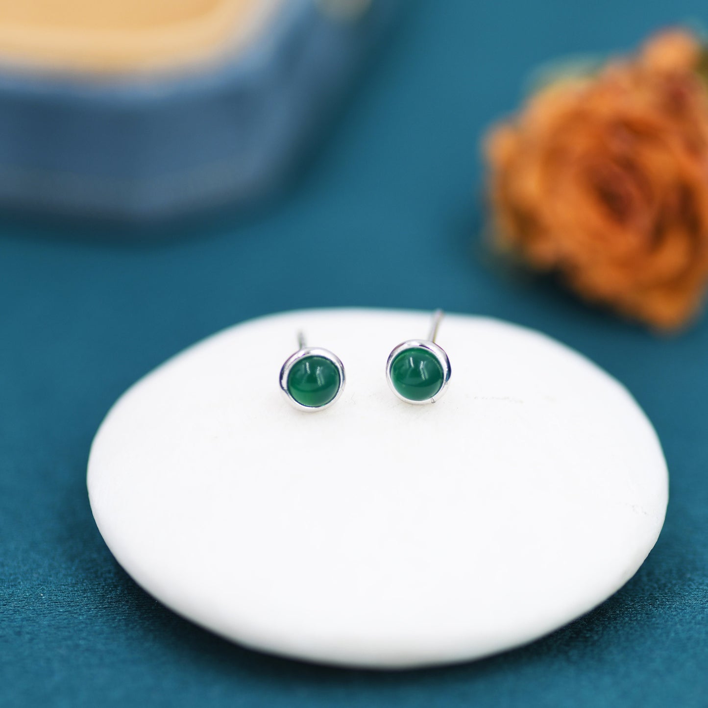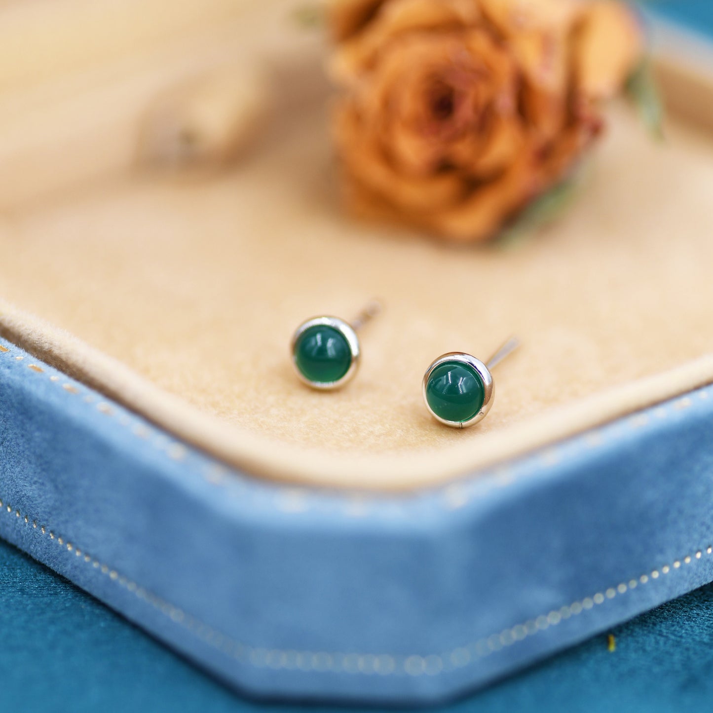 Sterling Silver Green Onyx Stud Earrings, 4mm Bezel Set, Genuine Onyx Gemstone Stud, Minimalist Style