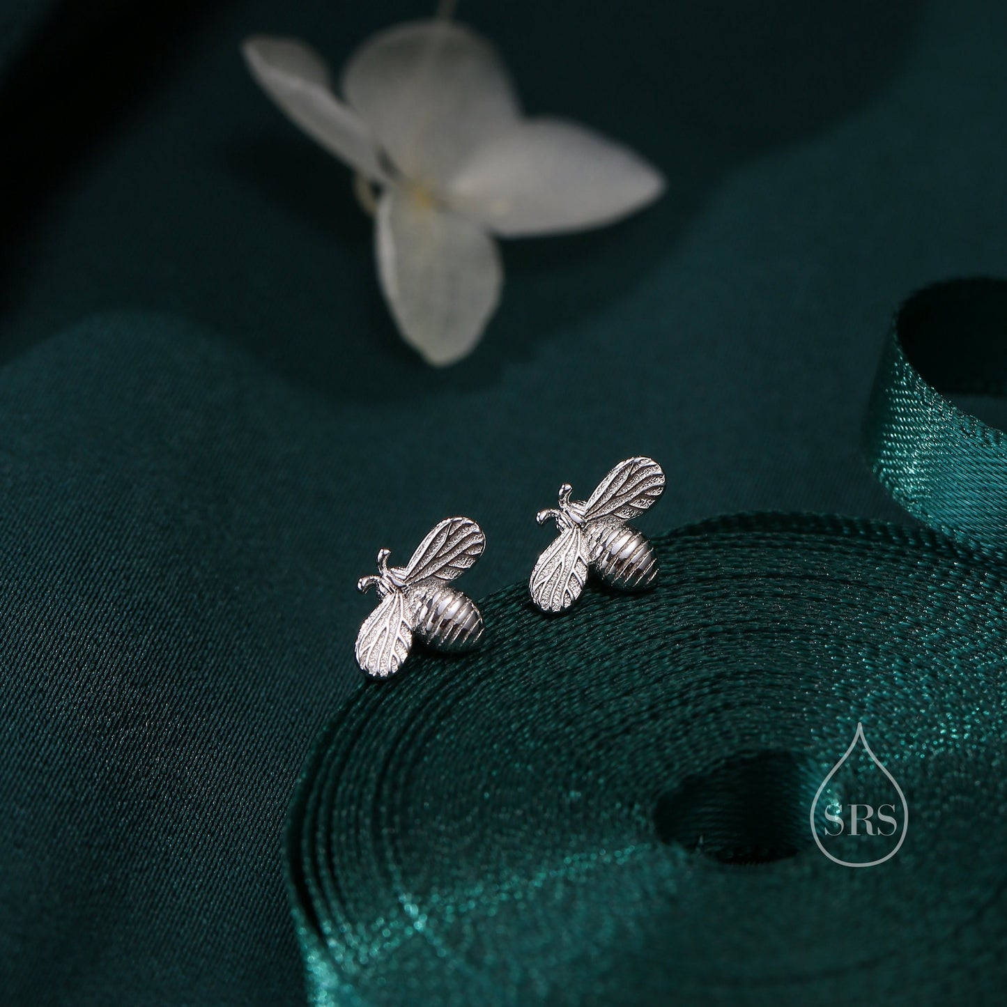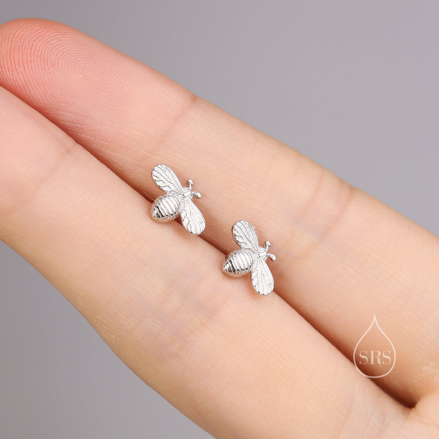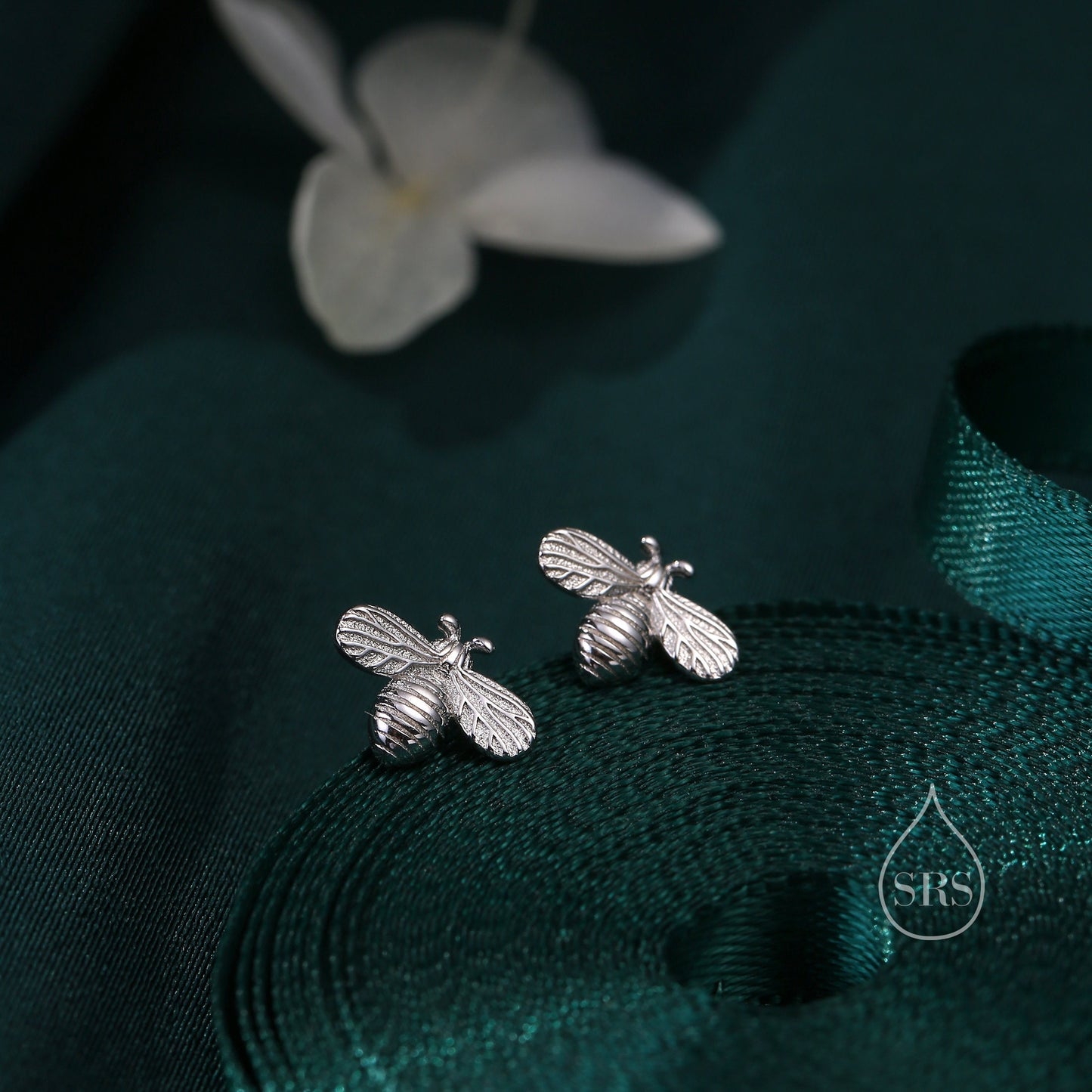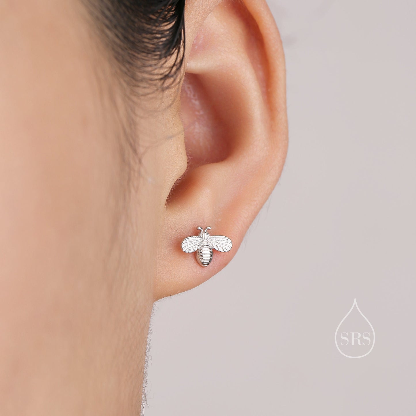 Sterling Silver Honey Bee Stud Earrings, Silver or Gold, Bee Earrings, Honey Bee Earrings
